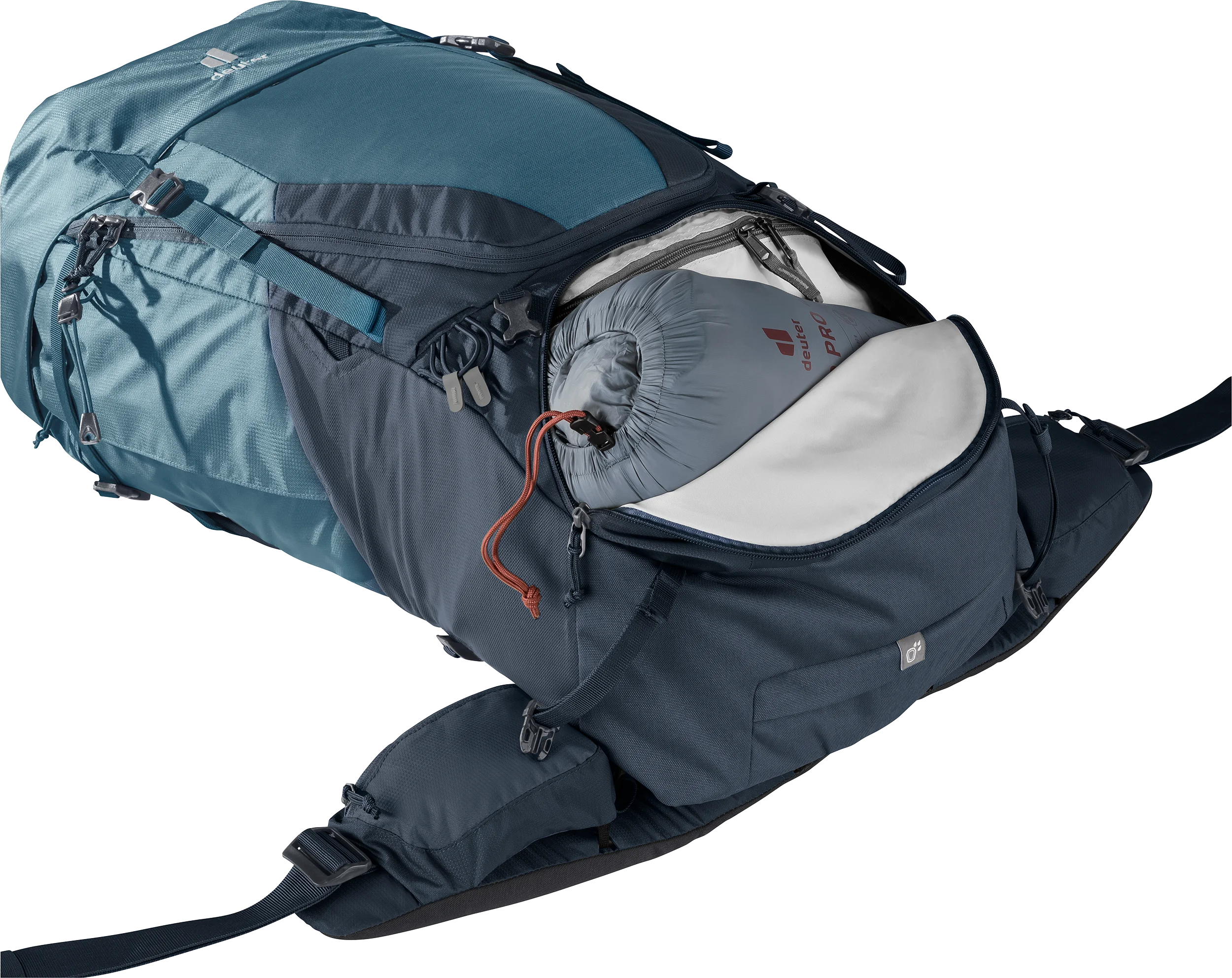 ¿El senderismo de larga distancia es lo tuyo? Entonces el Futura Air Trek, que ofrece el máximo confort en viajes largos, es su compañero ideal. El sistema VariSlide permite un ajuste infinito a cualquier tamaño de cuerpo. Las aletas móviles VariFlex ECL de cadera con inserciones acolchadas ergonómicas aseguran un ajuste cómodo. El sistema de espalda de malla Aircomfort Sensic proporciona una ventilación óptima. Para ofrecerle el máximo espacio y posibilidades de organización de sus pertenencias, hay un bolsillo lateral y un bolsillo en la solapa de altura ajustable (+10 L) además del gran acceso frontal.