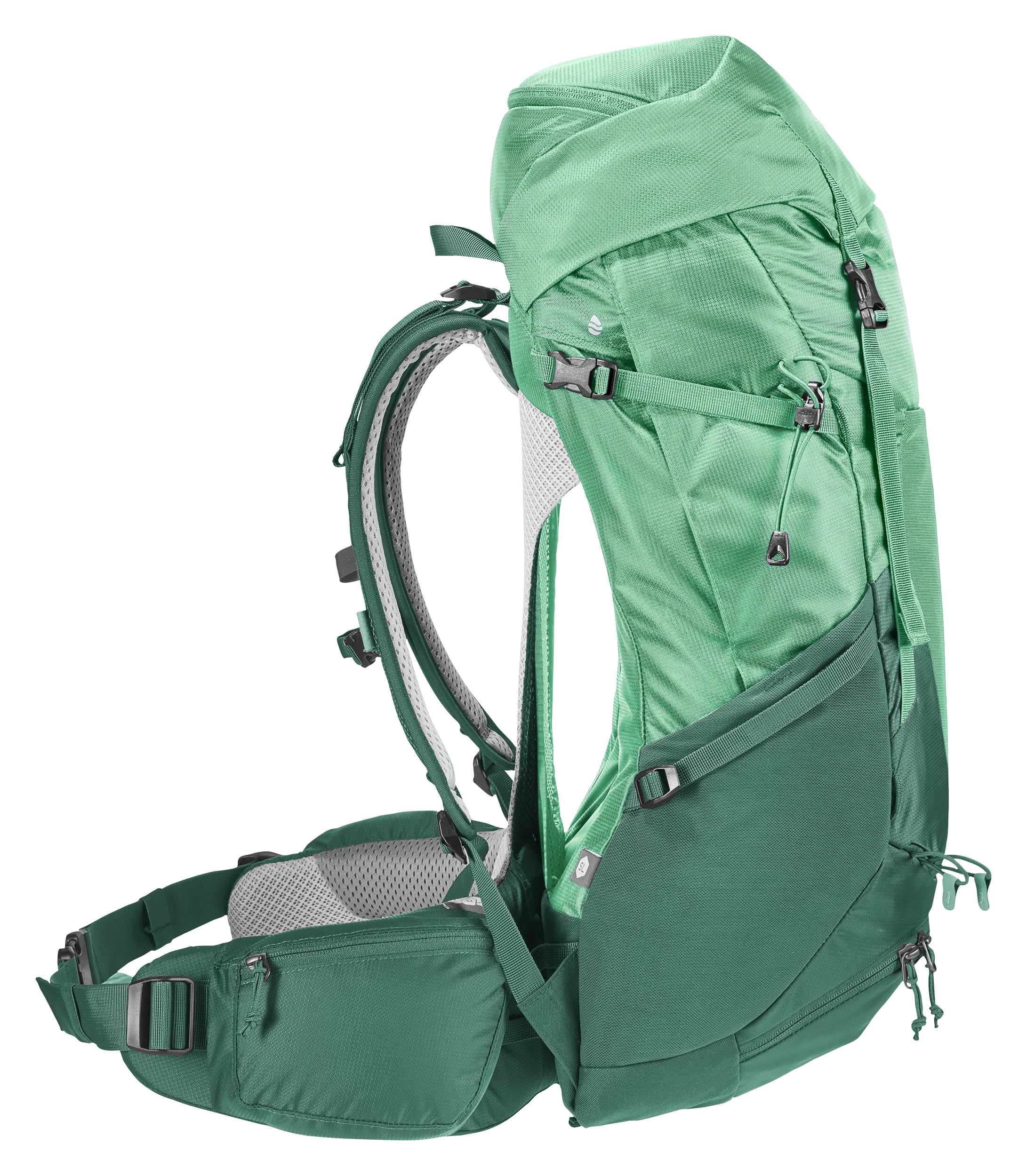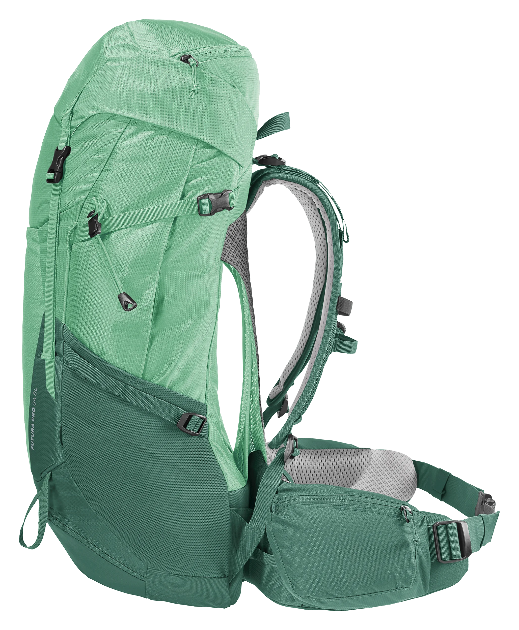 El Futura Pro SL está diseñado para adaptarse a la anatomía femenina y ha sido desarrollado para excursiones de varios días donde la comodidad no debe faltar. Por lo tanto, la mochila está equipada con el ergonómico sistema de espalda de malla Aircomfort Sensic Pro. Esto garantiza la máxima ventilación de la espalda gracias a la innovadora malla. Además, las aletas móviles de cadera VariFlex ECL con elementos acolchados ergonómicos permiten un transporte con ahorro de energía. Gracias a la clara división de los compartimentos, las cosas se pueden guardar fácil y ordenadamente en el compartimento superior, los bolsillos laterales, el compartimento inferior separado y el espacioso compartimento principal.