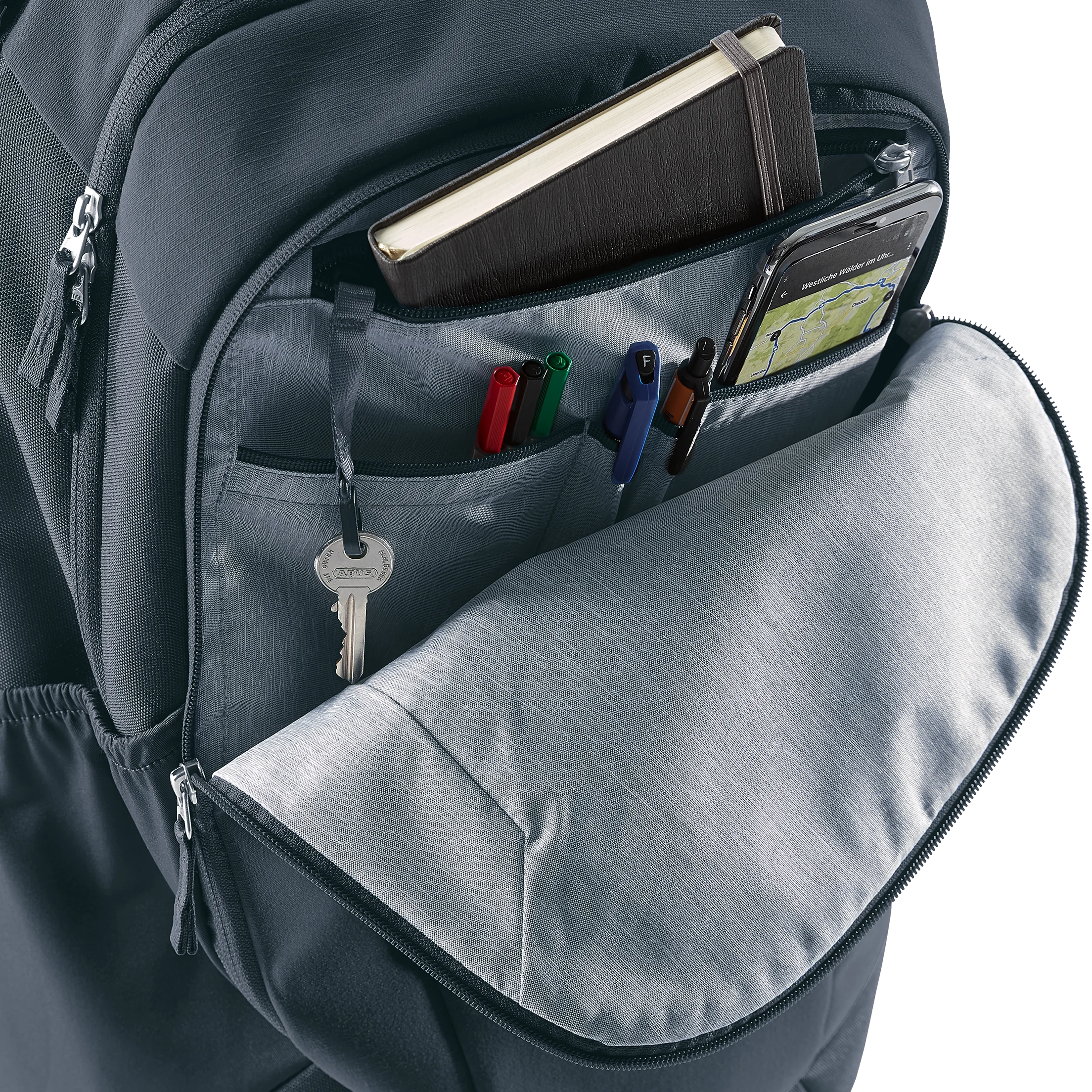 - Compartimento organizativo para bolígrafos, ordenador portátil, cuaderno de notas, etc.