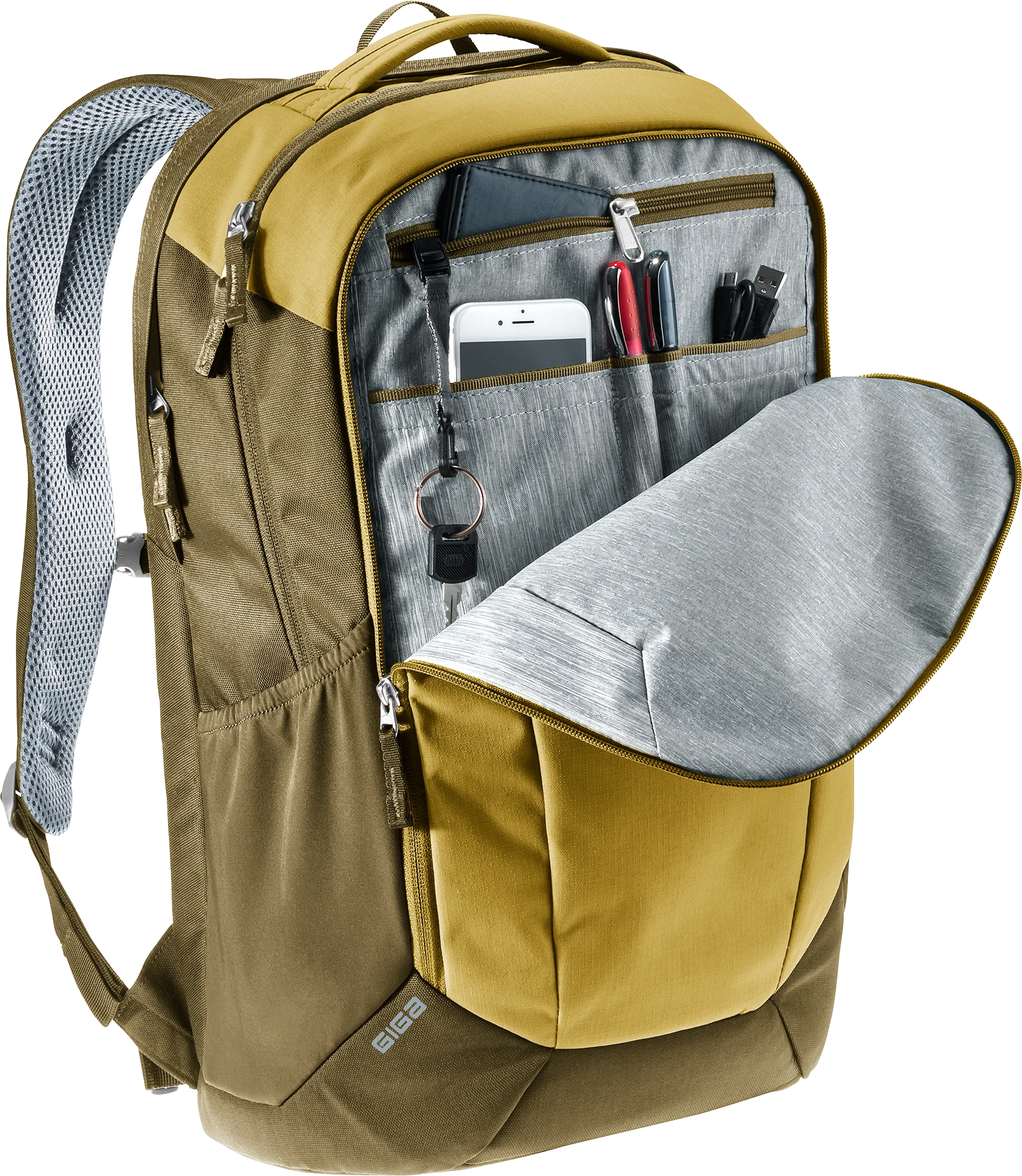 Las personas que desean que el orden esté presente en sus trayectos diarios confían en el práctico sistema de organización de la gama Giga. El sistema Airstripes de la parte posterior se ha perfeccionado y proporciona la ventilación necesaria para la espalda. No te hará sudar, incluso en los días más estresantes en la oficina, la facultad o la escuela.