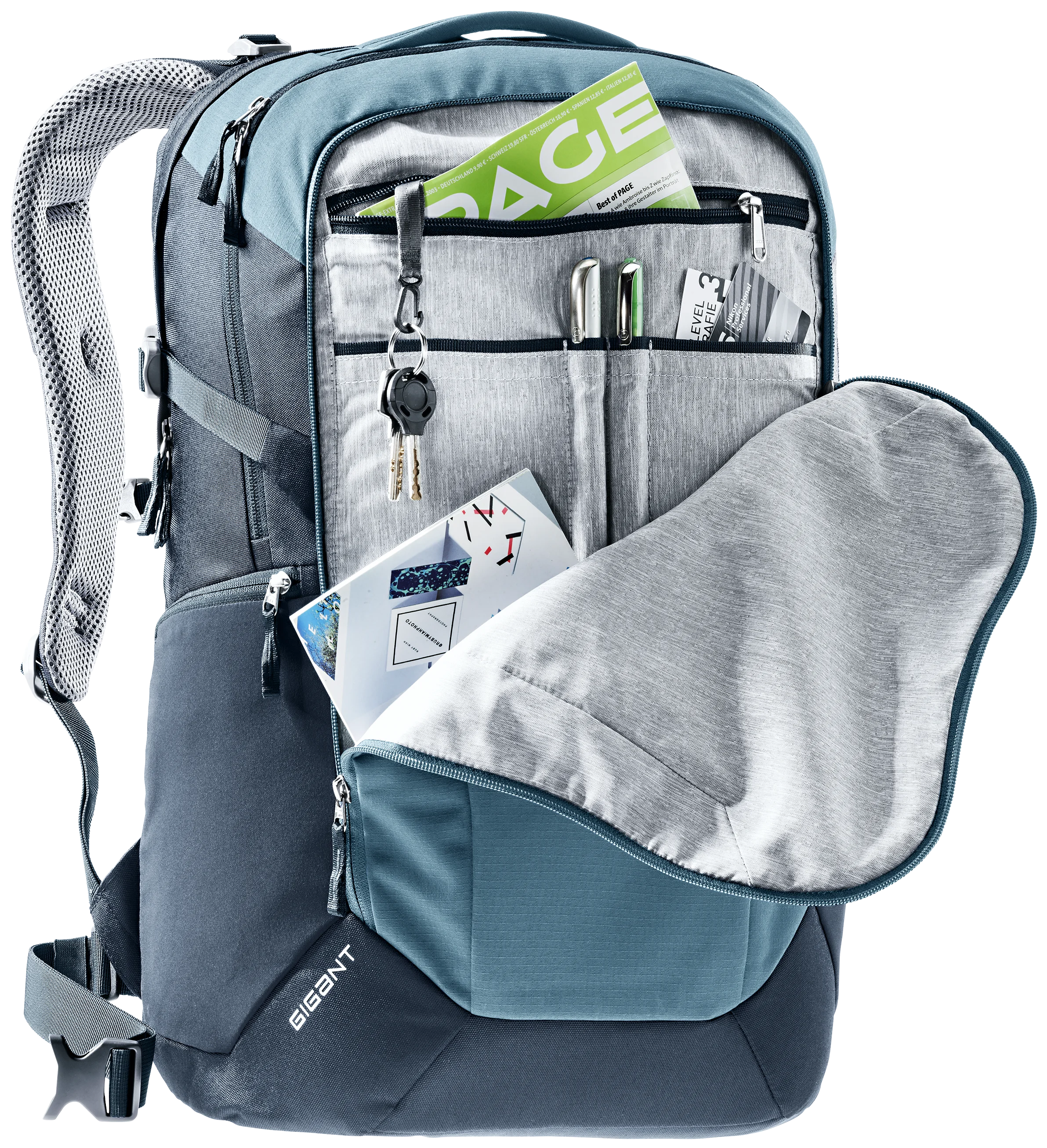 Los viajeros urbanos que quieren estar bien organizados en la vida diaria confían más en el sistema de organización práctica de la serie Giga. El sistema revisado de pistas de aterrizaje de la espalda proporciona la ventilación necesaria para la espalda. Así que nunca sudas, ni siquiera en los días estresantes de la oficina, la universidad o la escuela. El Gigante ofrece mucho espacio para los que llevan un poco más de espacio. Incluso los portátiles de 17 pulgadas encuentran su lugar aquí.