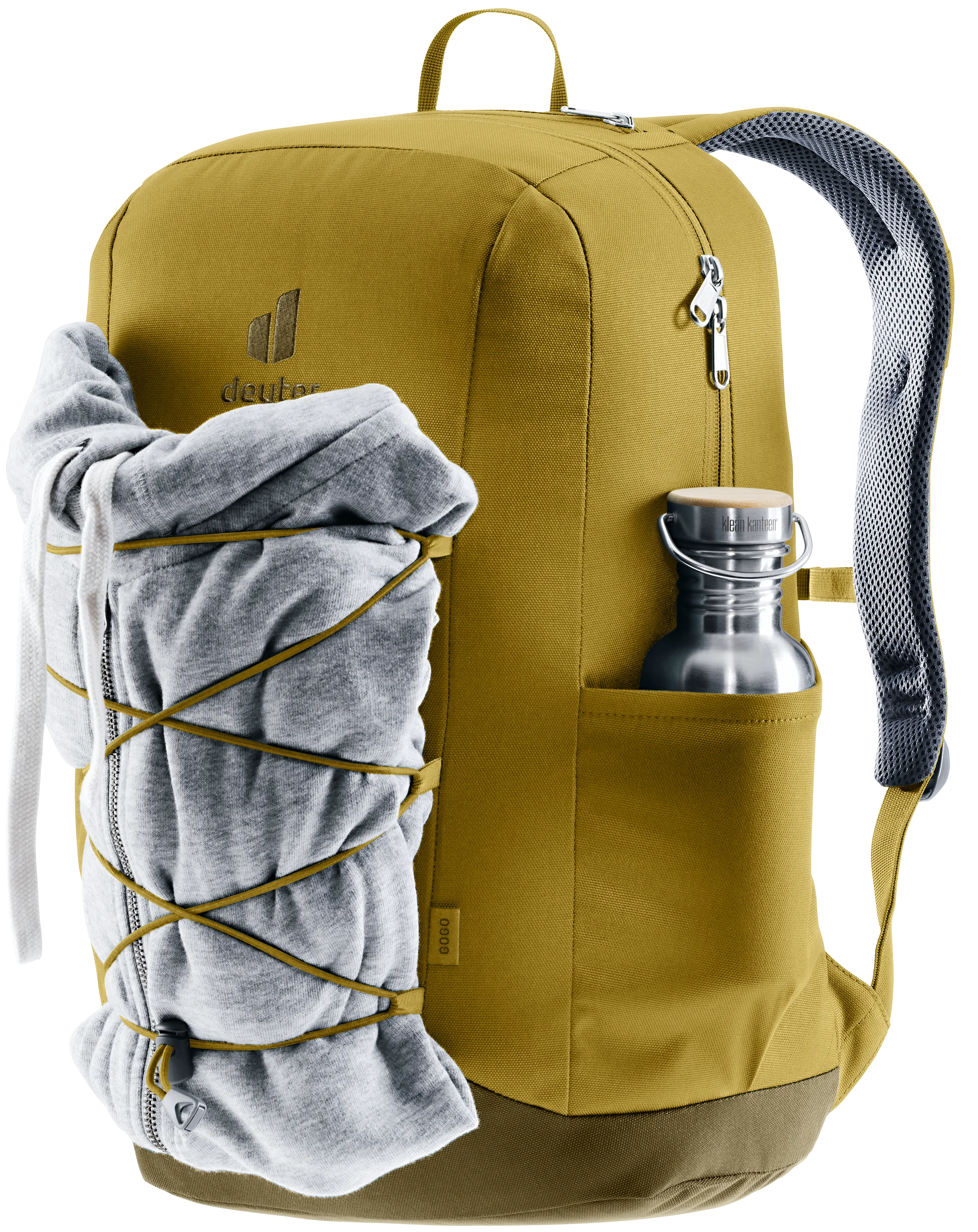 La mochila deportiva con cómodo sistema de espalda Airstripes garantiza una circulación óptima del aire gracias a un soporte lumbar bajo y a los tirantes ergonómicos. Una cremallera arqueada permite acceder rápidamente al compartimento principal, mientras que los bolsillos con cremallera, los compartimentos para objetos de valor y documentos, los bolsillos laterales elásticos y el cordón de ajuste mantienen todo ordenado. Además, gracias a un material principal fabricado con materiales 100% reciclados y componentes 100% respetuosos con el medio ambiente y que ahorran recursos, el producto bluesign® cuenta con la certificación Green Button y es climáticamente neutro.