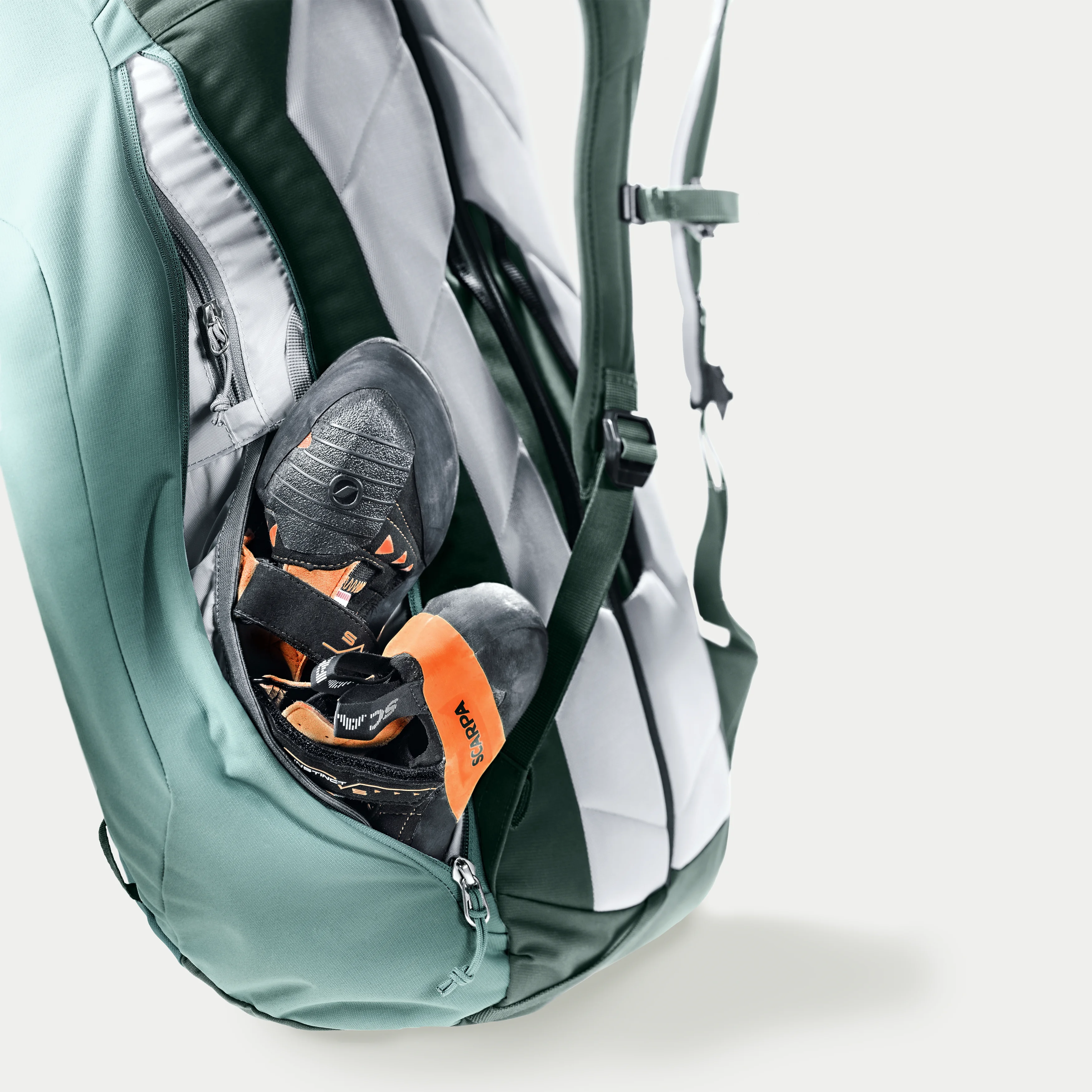 Este modelo también está disponible en versión SL. El largo de espalda de la versión SL está diseñado especialmente para mujeres: por norma general, la espalda de la mujer es más corta que la del hombre. Es por eso que el sistema de carga del modelo SL es algo más corto que el de las mochilas convencionales. Además, el sistema de transporte se ha adaptado especialmente a la anatomía de la mujer. Más información sobre nuestros ajustes.