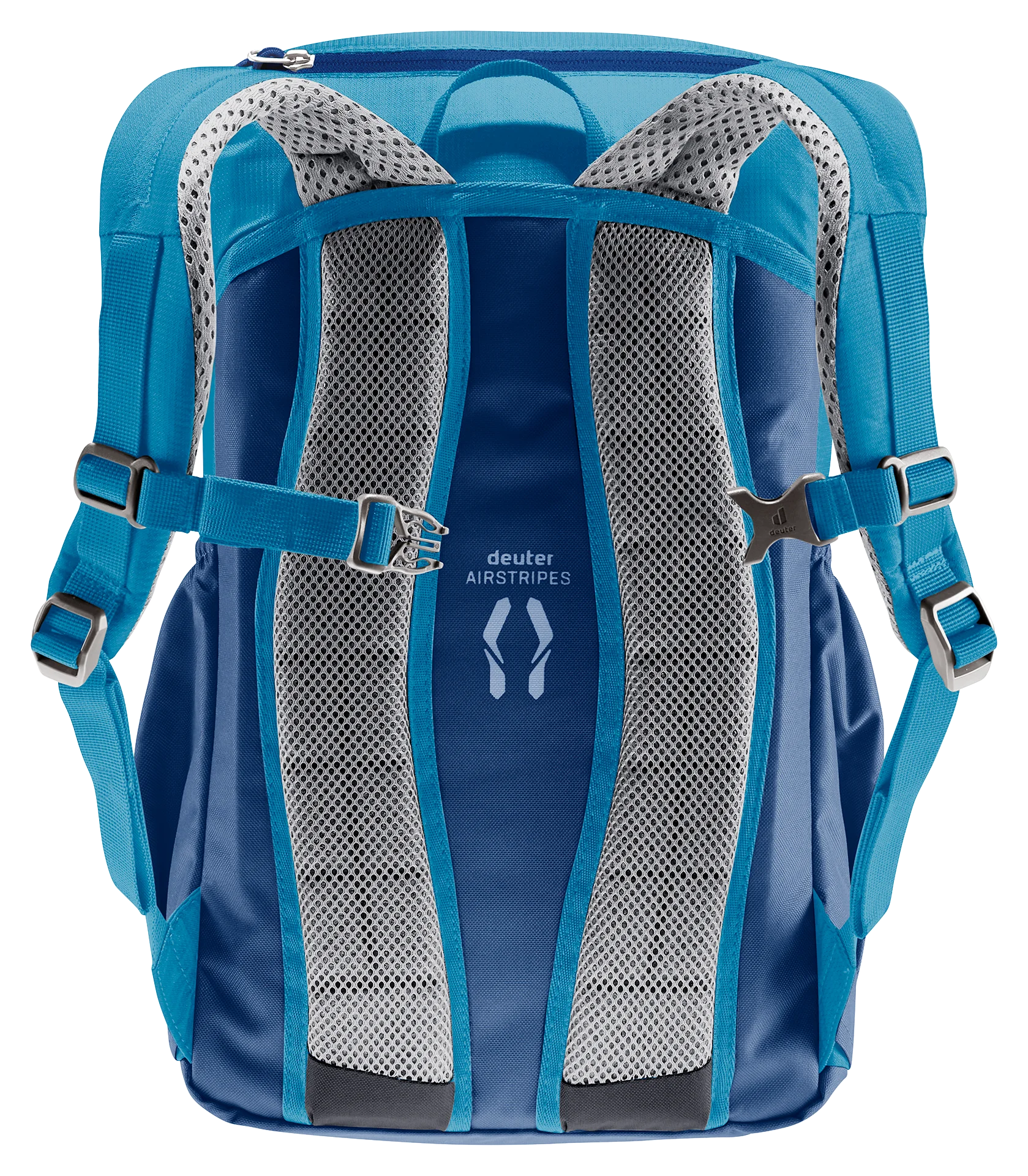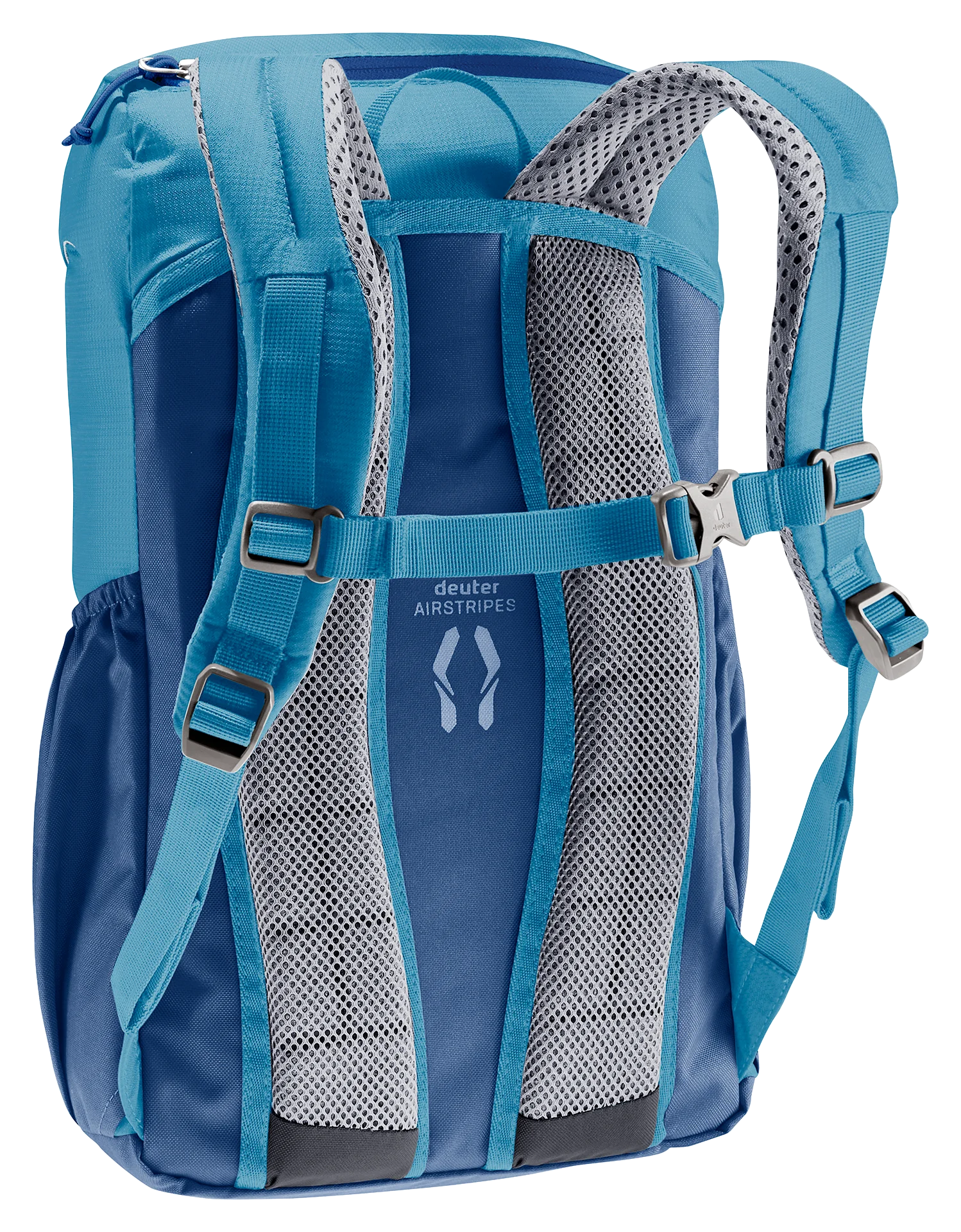 En la Junior, el probado sistema de respaldo Airstripes garantiza una buena ventilación. Las correas de los hombros en forma de S con acabados de bordes suaves aportan comodidad de uso y la correa del pecho mantiene la mochila en su sitio, incluso cuando se mueve rápidamente. Además del amplio compartimento interior, el bolsillo frontal elástico y los dos bolsillos laterales ofrecen espacio adicional para el equipo. El material extra robusto, reciclado y sin PFC, fabricado a partir de trece botellas de PET de 0,5 litros, hace que el producto bluesign® certificado con el Botón Verde sea un compañero práctico en las expediciones por la naturaleza.