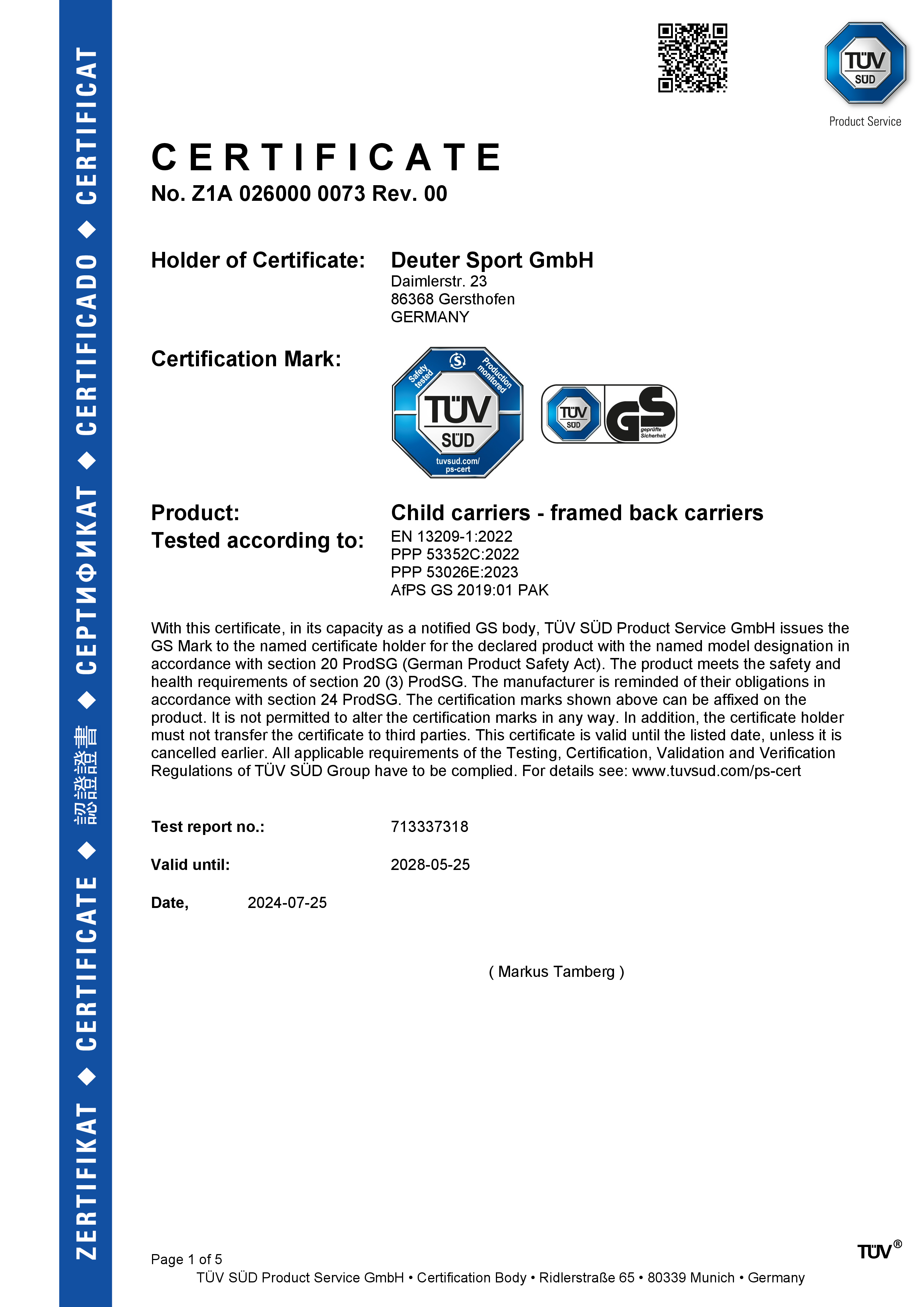 Con certificación TÜV/GS