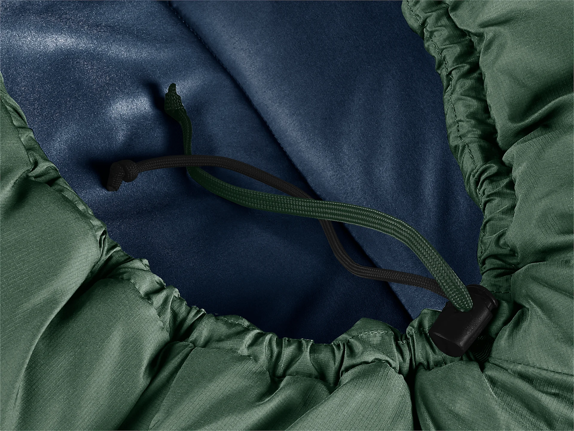 El relleno de fibra hueca de gran capacidad y el suave tejido del forro, fabricado con una mezcla de algodón, crean un agradable ambiente para dormir dentro del saco. Al ser un saco de dormir rectangular, también ofrece más espacio para moverse.