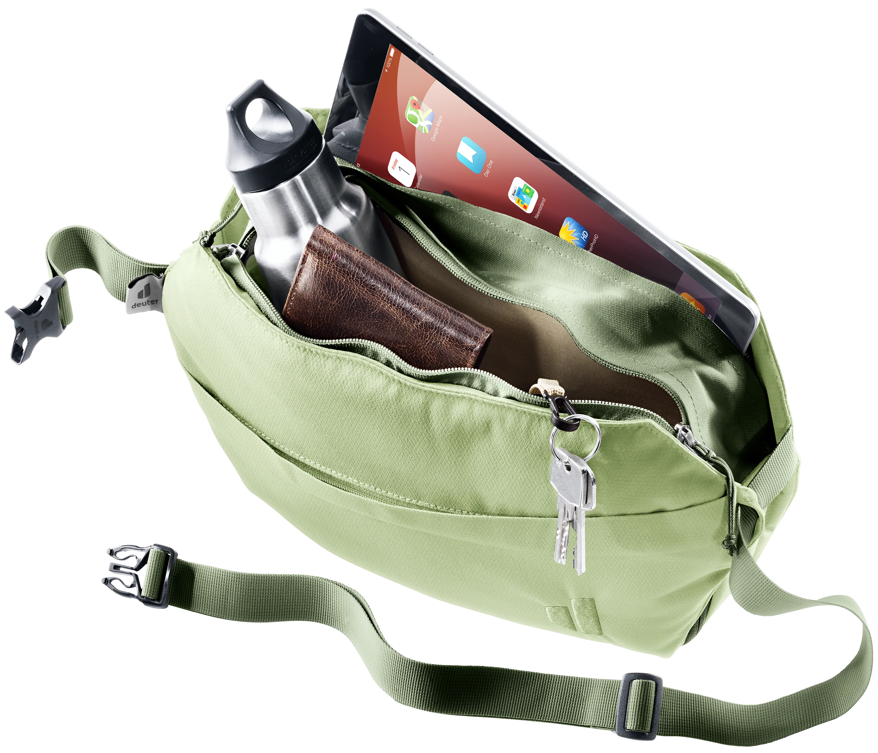 La bolsa cruzada puede ganar rápidamente un litro más de volumen para acomodar una tableta en su propia funda acolchada.