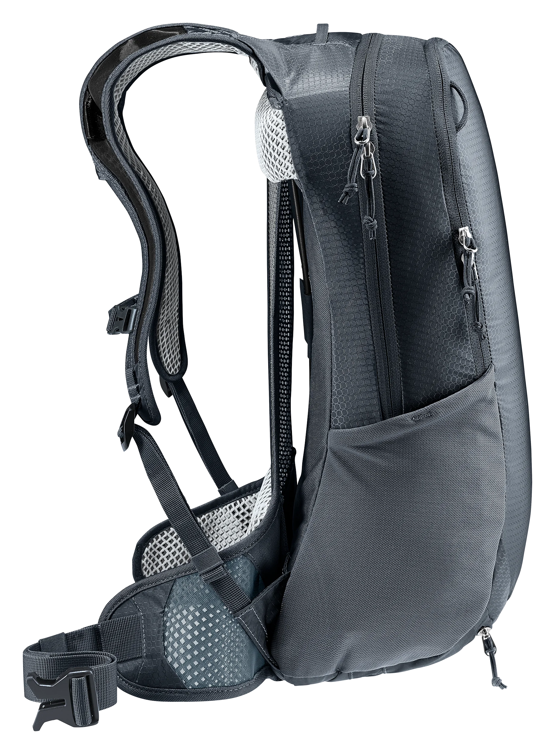 Mochila de ciclismo ultraligera a la vez que duradera con una estupenda relación peso-comodidad. El sistema dorsal Aircomfort deuter, diseñado específicamente para el ciclismo y provisto de un panel de malla para la espalda dividido por la mitad, consigue un menor contacto de la mochila con la espalda a la vez que deja más espacio para arquear la columna vertebral al pedalear. Las aletas lumbares de malla, los tirantes perforados y el acolchado de la espalda garantizan el máximo flujo de aire y un ajuste sólido y cómodo. Esta mochila de ciclismo de montaña, sin nada de PFAS, utiliza un tejido 100 % reciclado aprobado por bluesign® y componentes elaborados mediante prácticas de fabricación eficientes con los recursos y respetuosas con el medio ambiente.