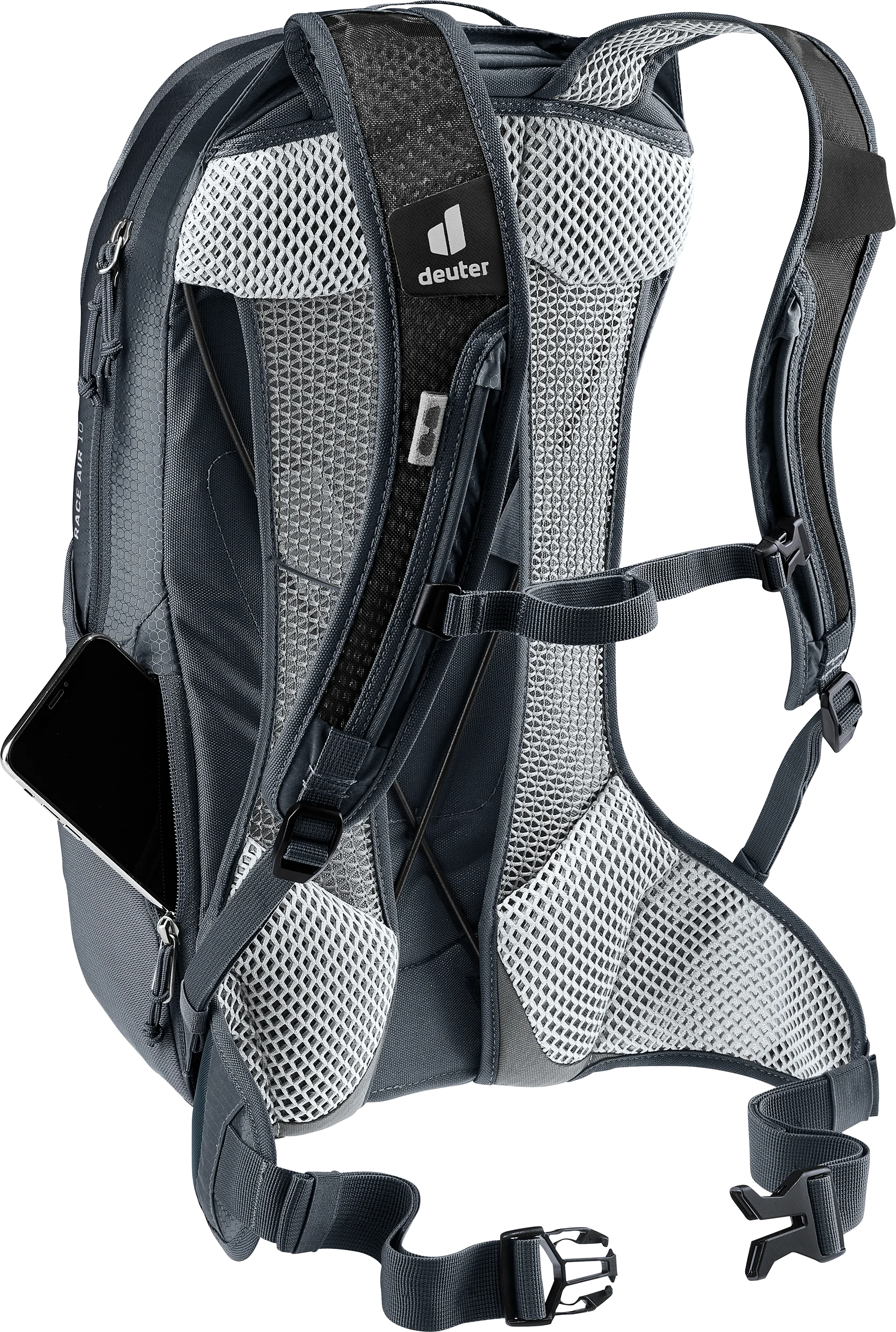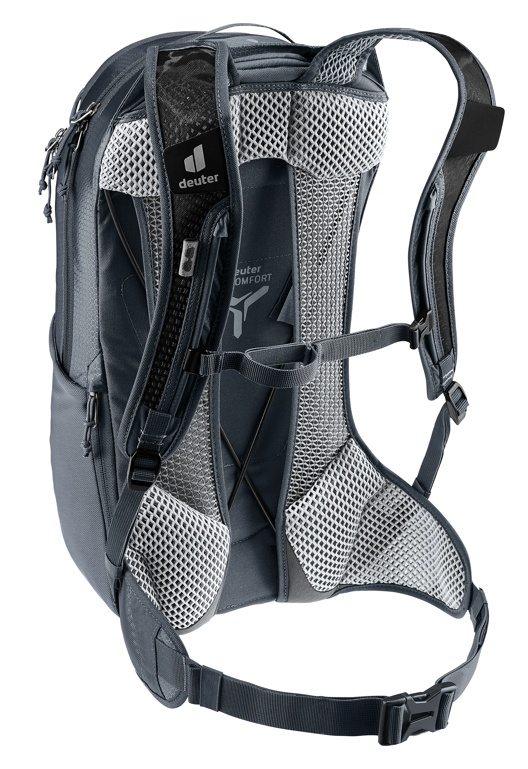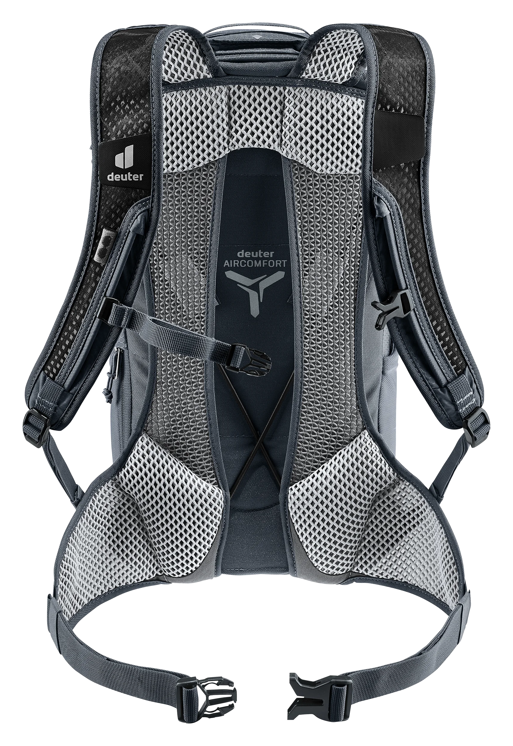 El sistema de espalda Aircomfort, de eficacia probada, ha sido diseñado específicamente para el ciclismo. Un panel de malla en la espalda dividido por la mitad significa que una parte aún menor de la mochila está en contacto directo con la espalda. También deja más espacio para una columna vertebral redondeada en posición de conducción. Las aletas de malla para las caderas, las correas de los hombros perforadas y el acolchado de la espalda garantizan el máximo flujo de aire, incluso en recorridos sudorosos.