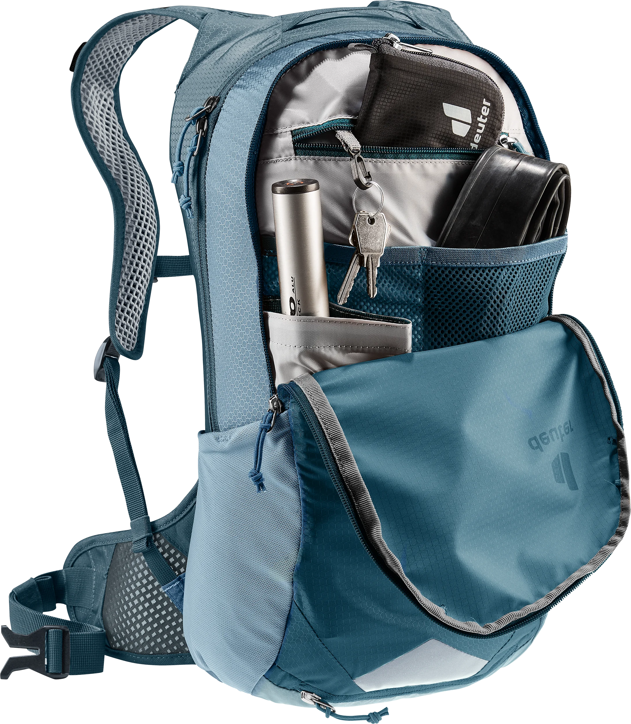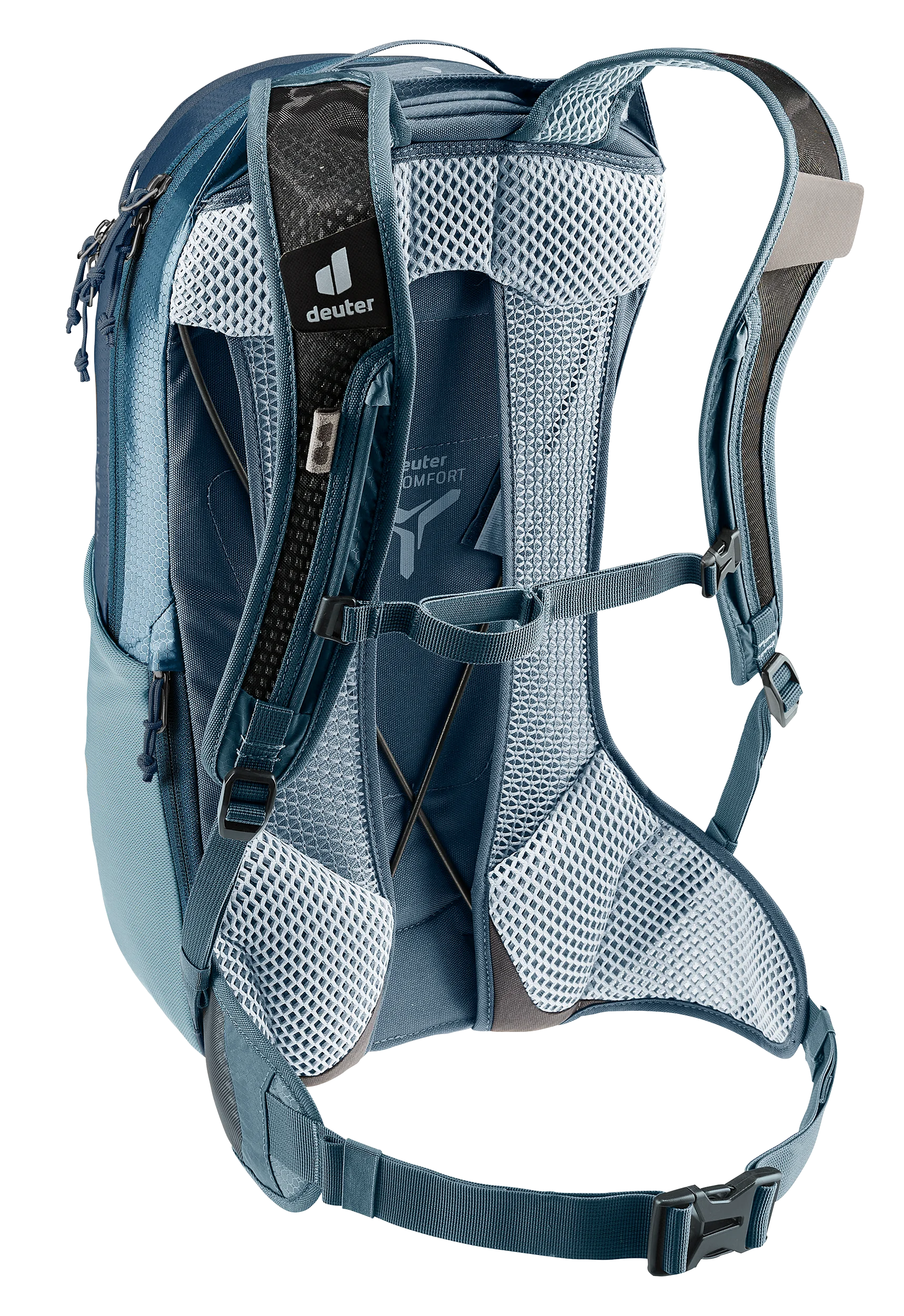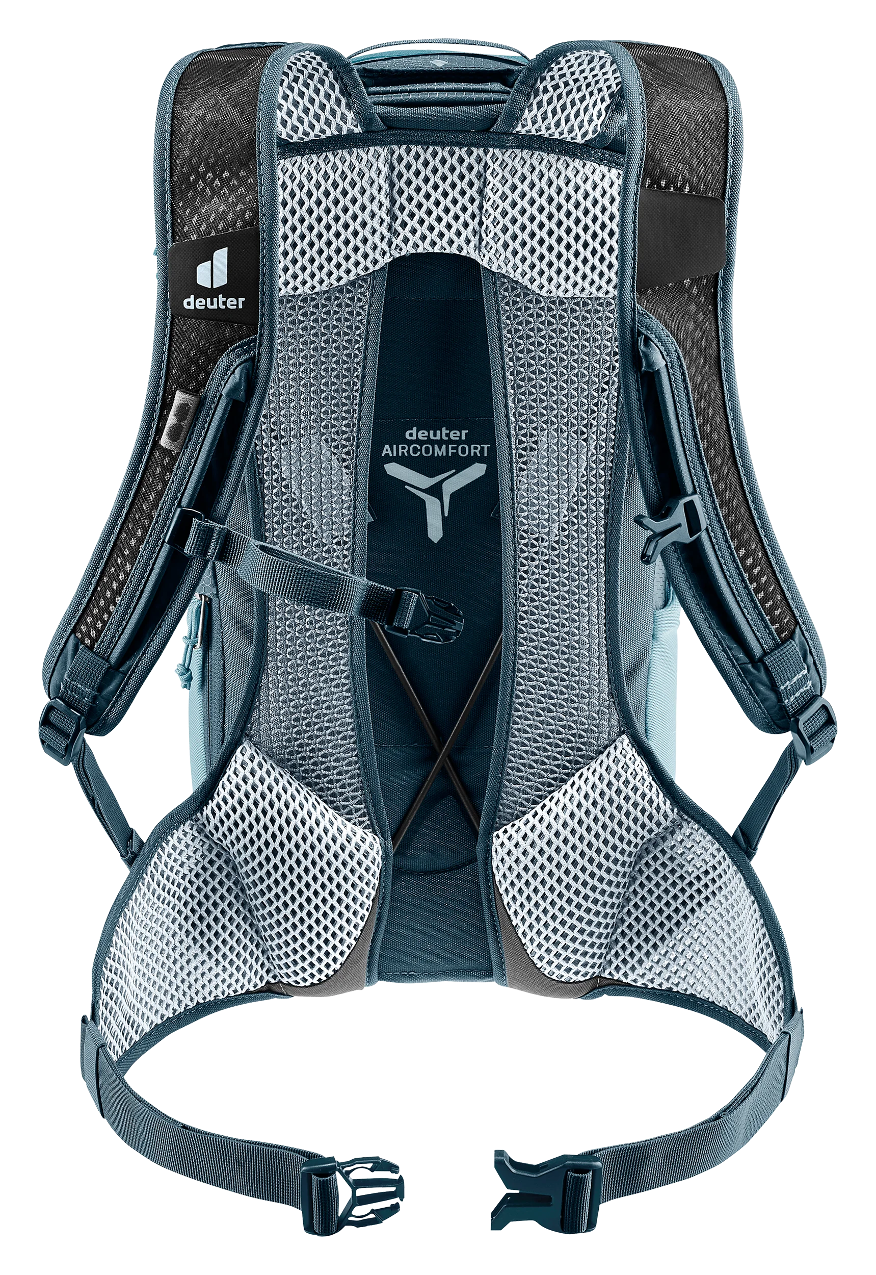 Mochila de ciclismo ultraligera a la vez que duradera con una estupenda relación peso-comodidad. El sistema dorsal Aircomfort deuter, diseñado específicamente para el ciclismo y provisto de un panel de malla para la espalda dividido por la mitad, consigue un menor contacto de la mochila con la espalda a la vez que deja más espacio para arquear la columna vertebral al pedalear. Las aletas lumbares de malla, los tirantes perforados y el acolchado de la espalda garantizan el máximo flujo de aire y un ajuste sólido y cómodo. Esta mochila de ciclismo de montaña, sin nada de PFAS, utiliza un tejido 100 % reciclado aprobado por bluesign® y componentes elaborados mediante prácticas de fabricación eficientes con los recursos y respetuosas con el medio ambiente.
