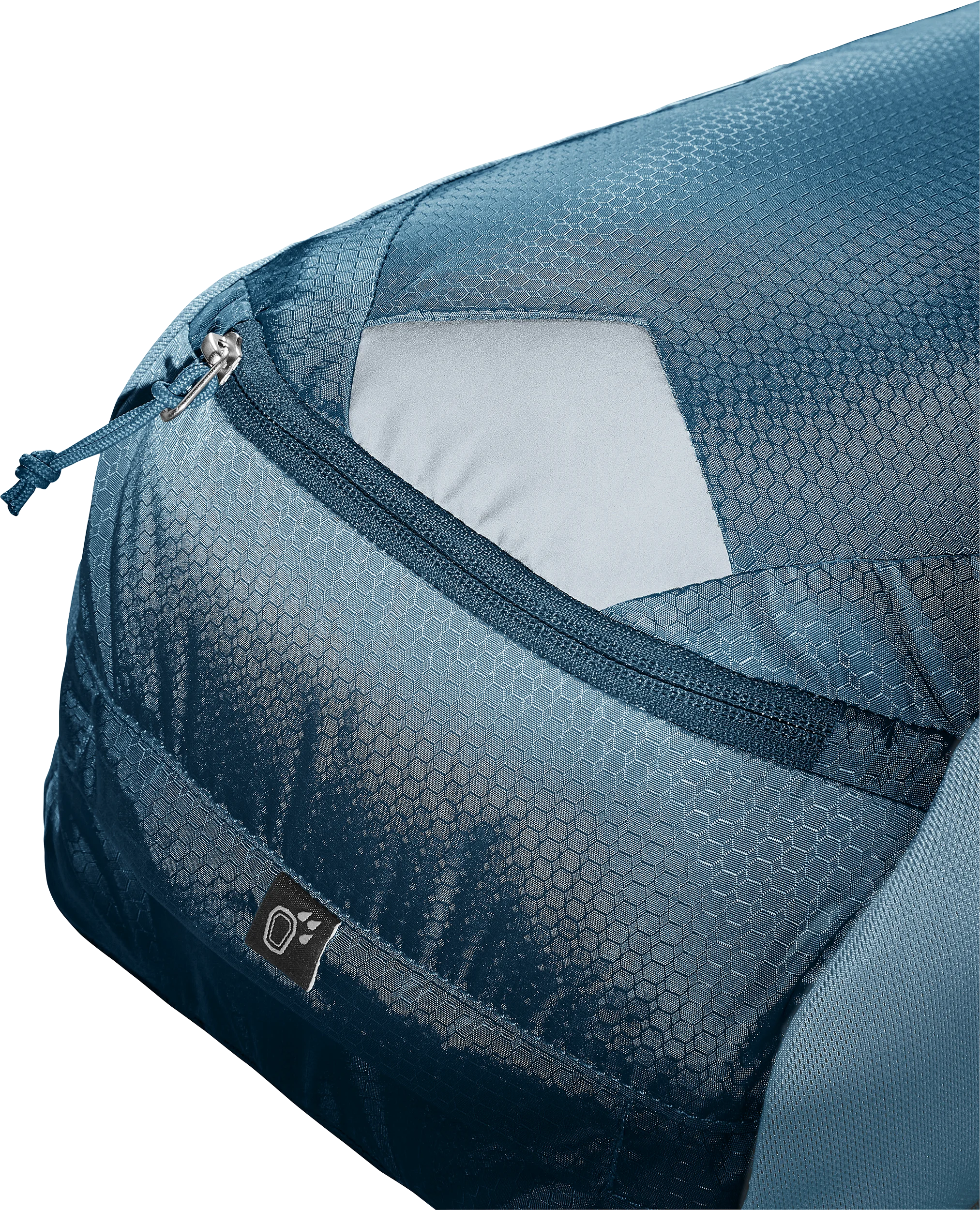En su lugar, deuter utiliza ahora la impregnación DWR (Repelencia Duradera al Agua), que es inocua para la salud y respetuosa con el medio ambiente.