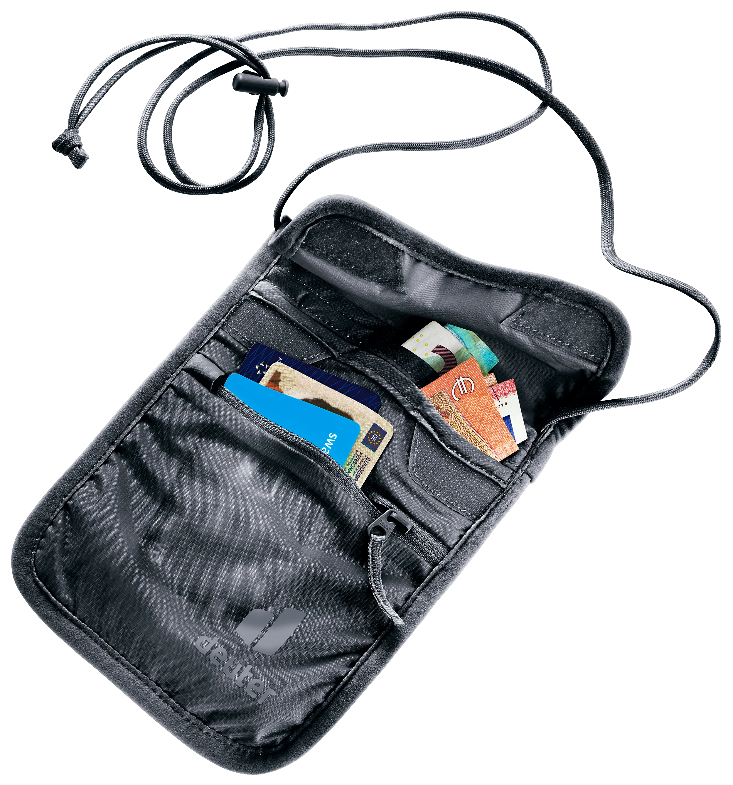 La versión grande del bolso de viaje para el cuello es ligera, suave y cómoda. Se adapta perfectamente al cuerpo y es ideal para llevar con discreción y seguridad documentos de viaje, dinero y pasaporte en los dos bolsillos con cierre de cremallera.
