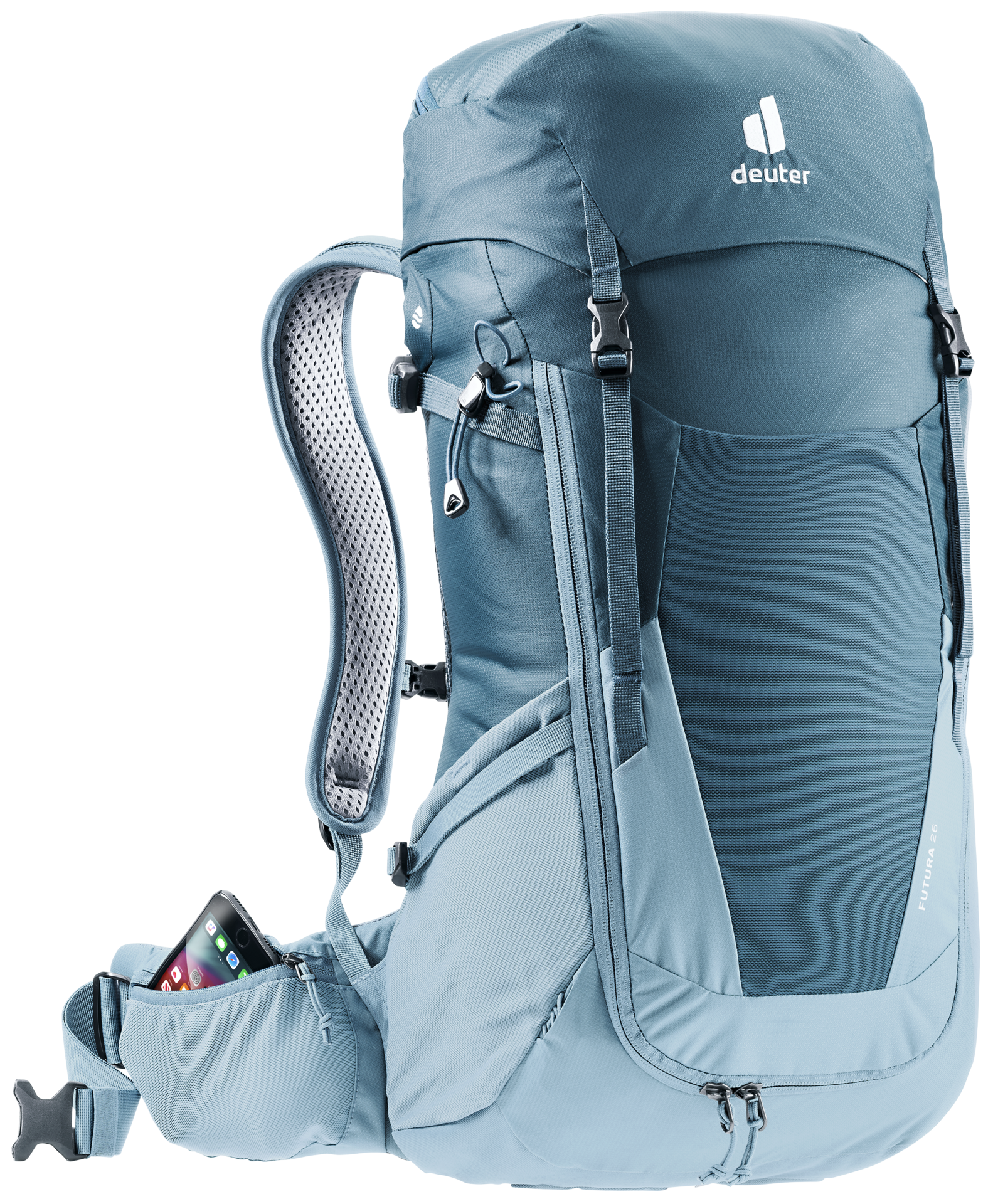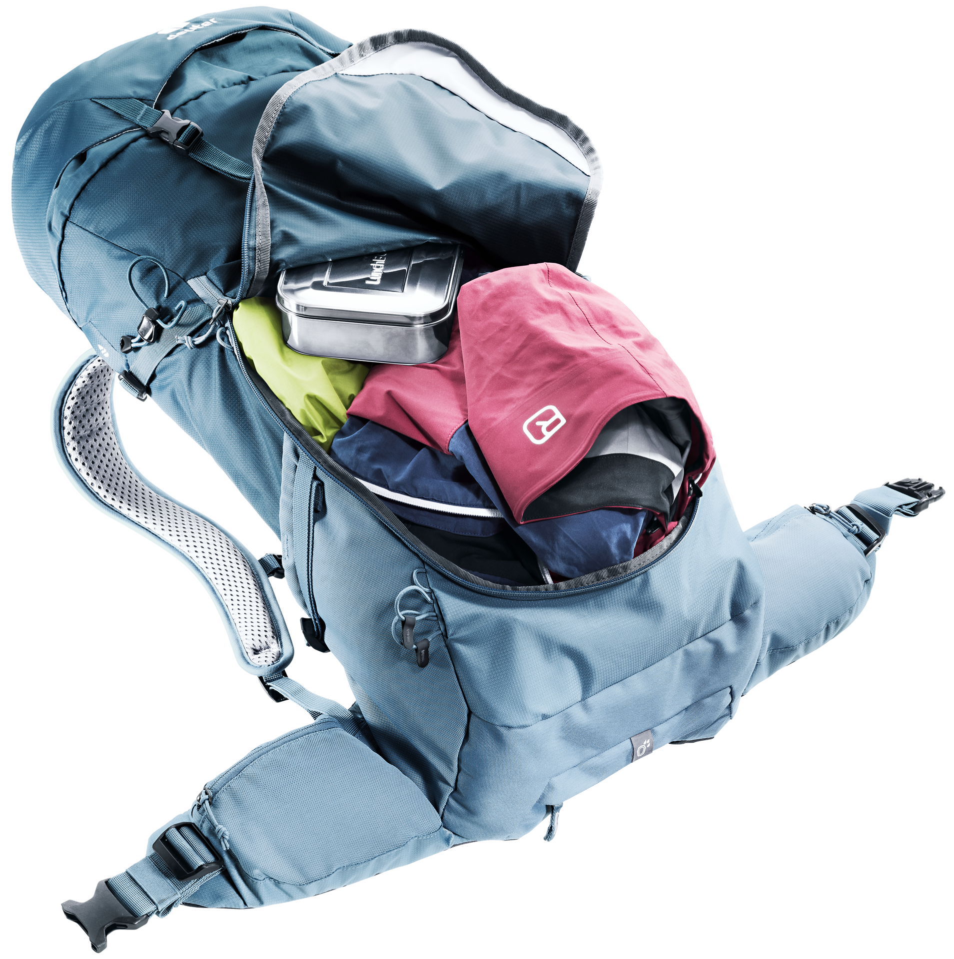 El Futura ha sido desarrollado para caminatas largas, de un día o de varios días donde se requiere comodidad y facilidad de manejo. La nueva malla del sistema de espalda Aircomfort asegura la máxima ventilación. Esto significa: hasta un 25% menos de transpiración y por lo tanto un mejor rendimiento. Las correas móviles ActiveFit para los hombros y las alas ergonómicas de la cadera (con ajuste de tracción hacia adelante) también garantizan una agradable comodidad de uso. Además, la gran abertura frontal permite un fácil acceso al contenido de la mochila y una buena visión general del contenido de la mochila.