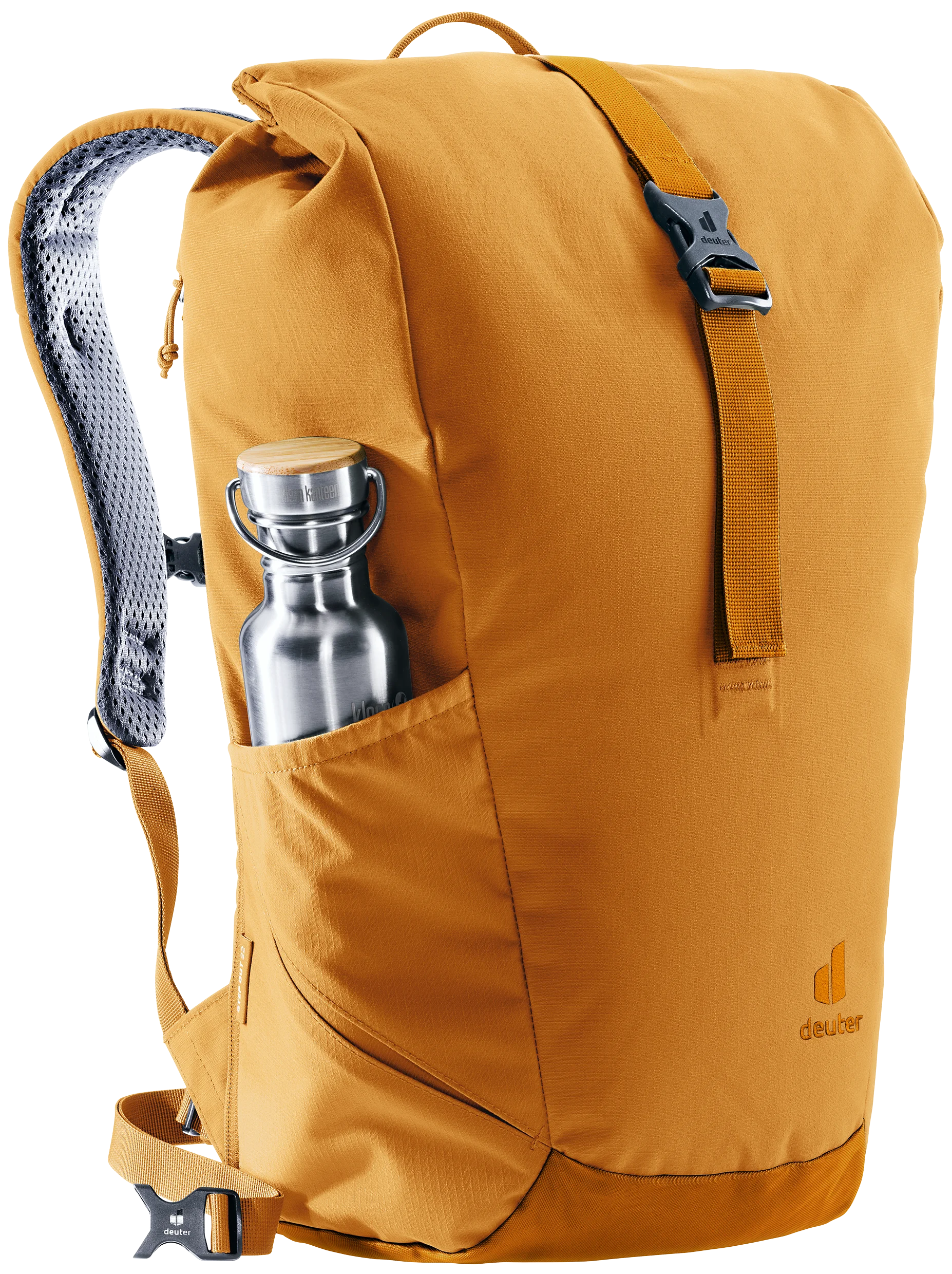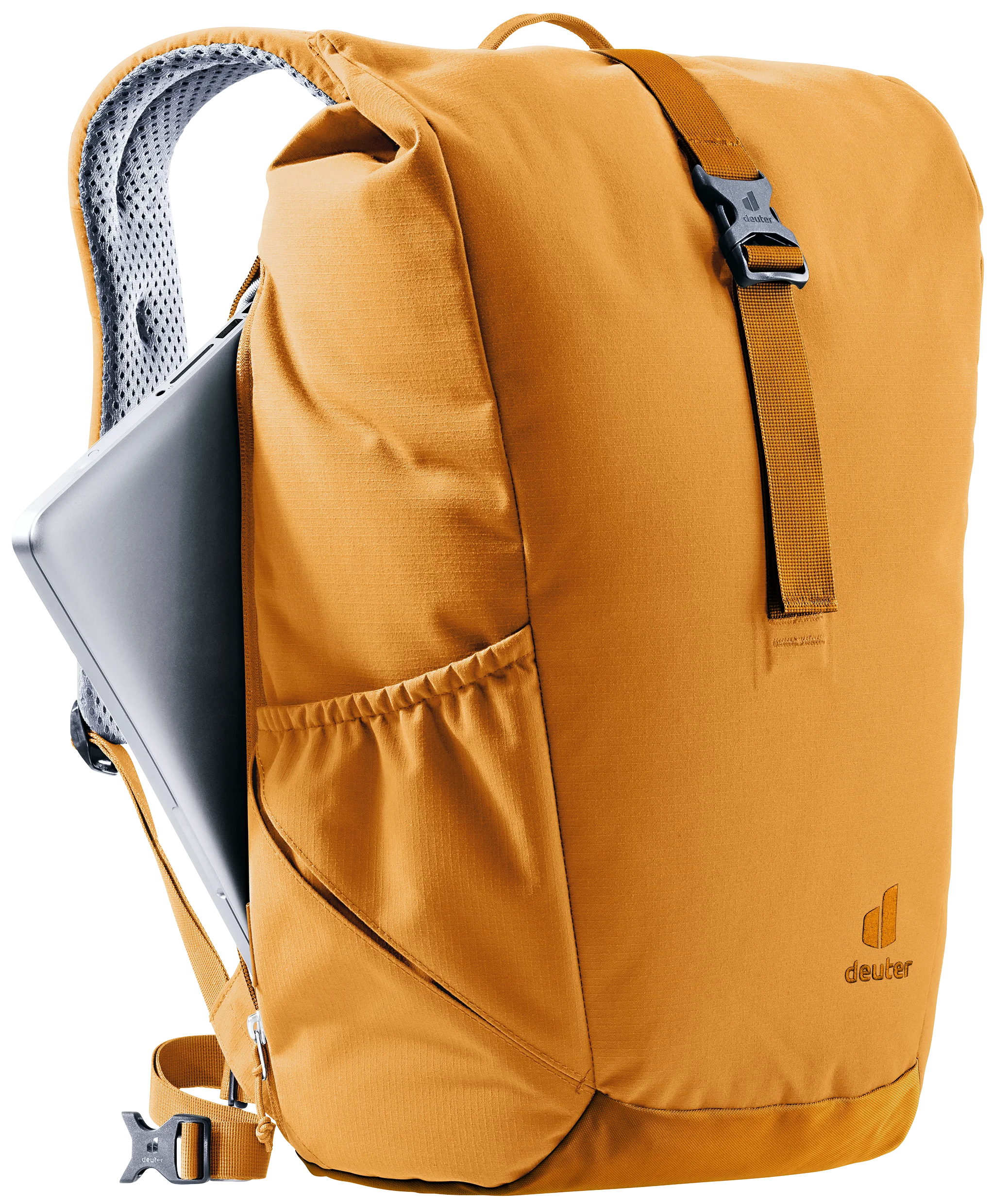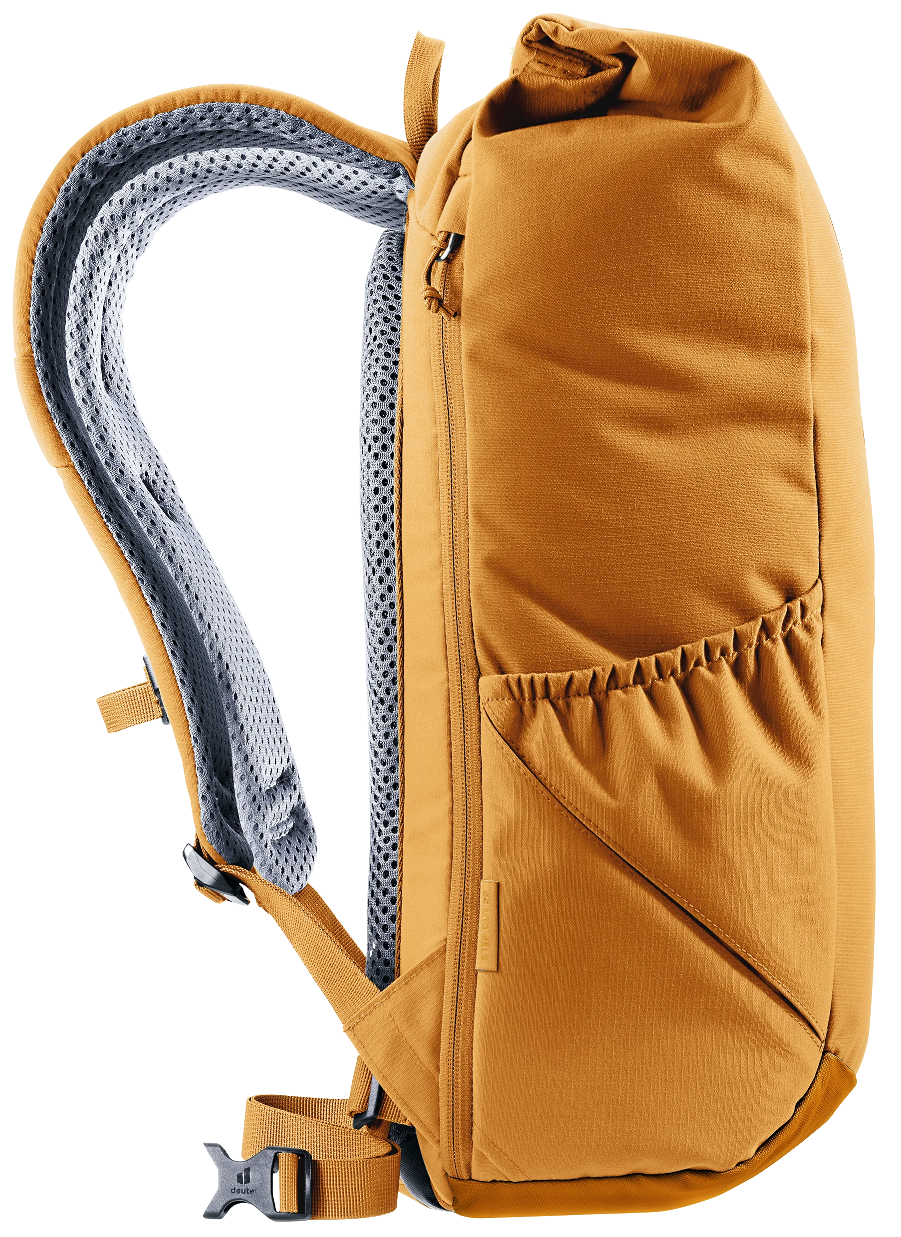 Gracias a los tirantes perforados y ergonómicos y al soporte lumbar del sistema de espalda Airstripes, el Stepout se caracteriza por una máxima circulación del aire y una gran comodidad de uso. La ampliación del volumen, el bolsillo lateral para el móvil y el bolsillo lateral elástico garantizan un acceso rápido a los objetos importantes. En el interior, los compartimentos para documentos y para el portátil, así como el portabotellas, ofrecen una buena organización. El tejido de este producto libre de PFC y con la certificación bluesign® Green Button está hecho de 26 botellas de PET de 0,5 litros recicladas y se fabrica según la norma bluesign®.