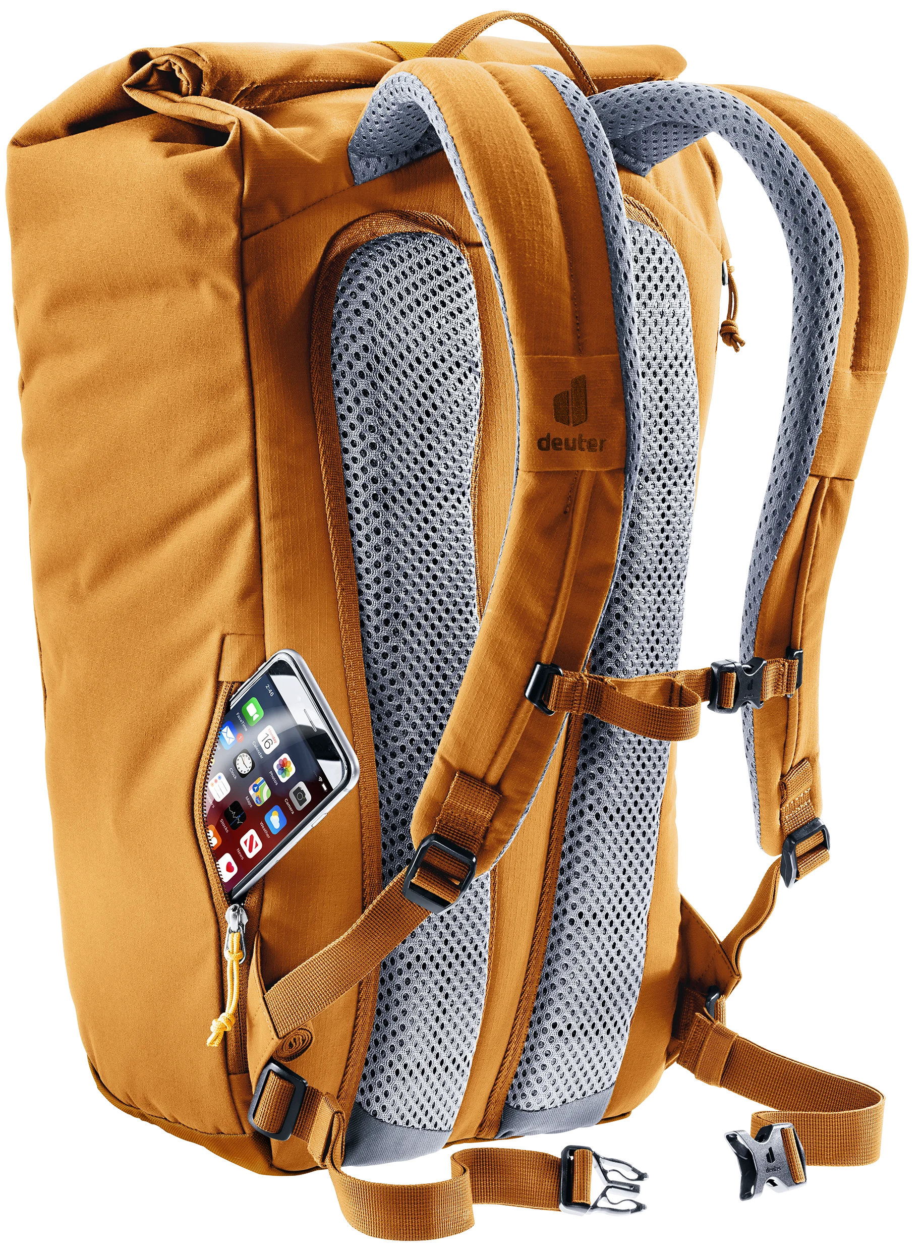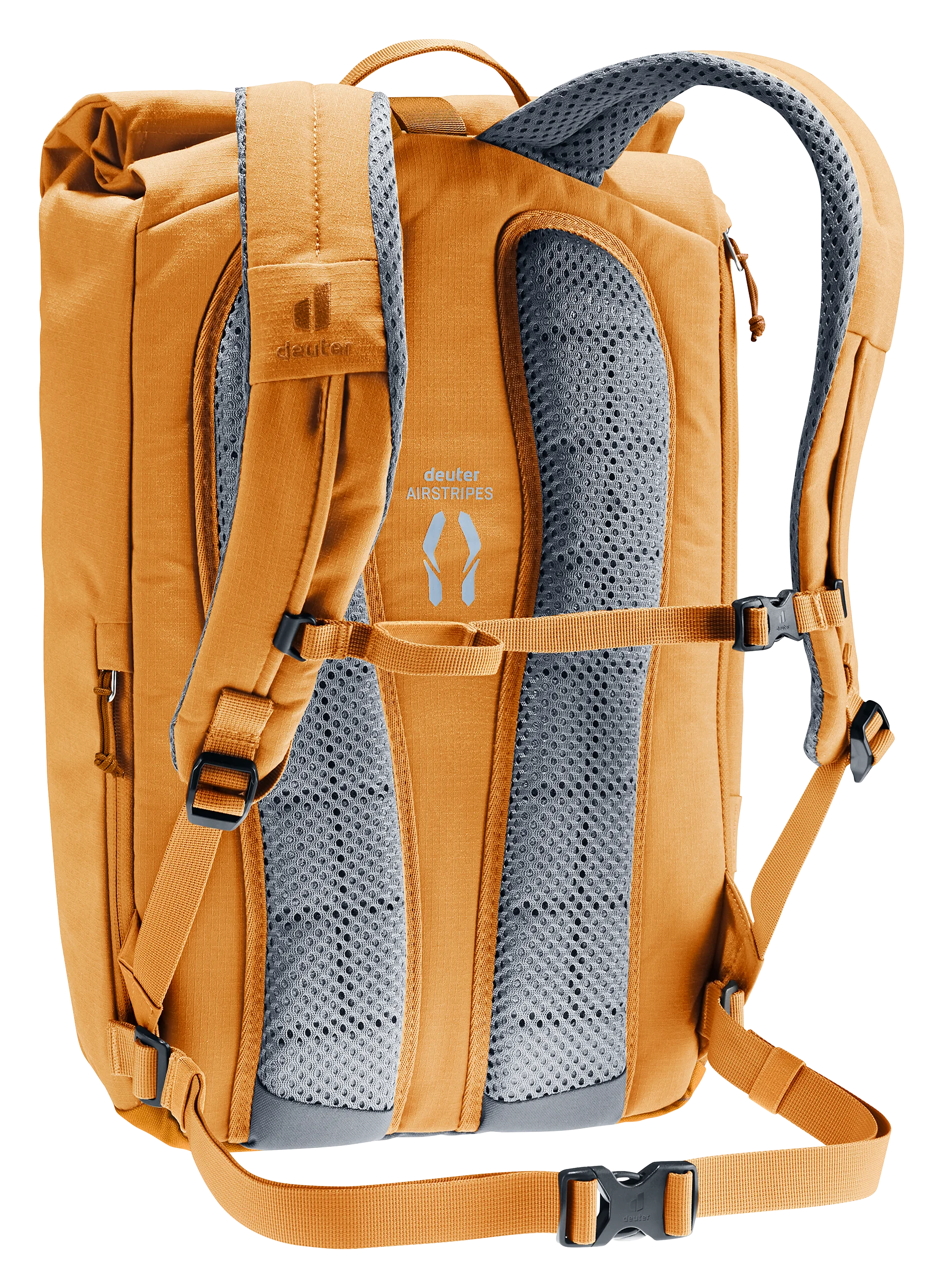 El sistema de transporte Airstripes con soporte lumbar, así como las correas de hombro perforadas y el cinturón de cadera desmontable, garantizan la máxima circulación de aire en la agitada vida cotidiana. Así, hasta la última camisa se mantiene seca.