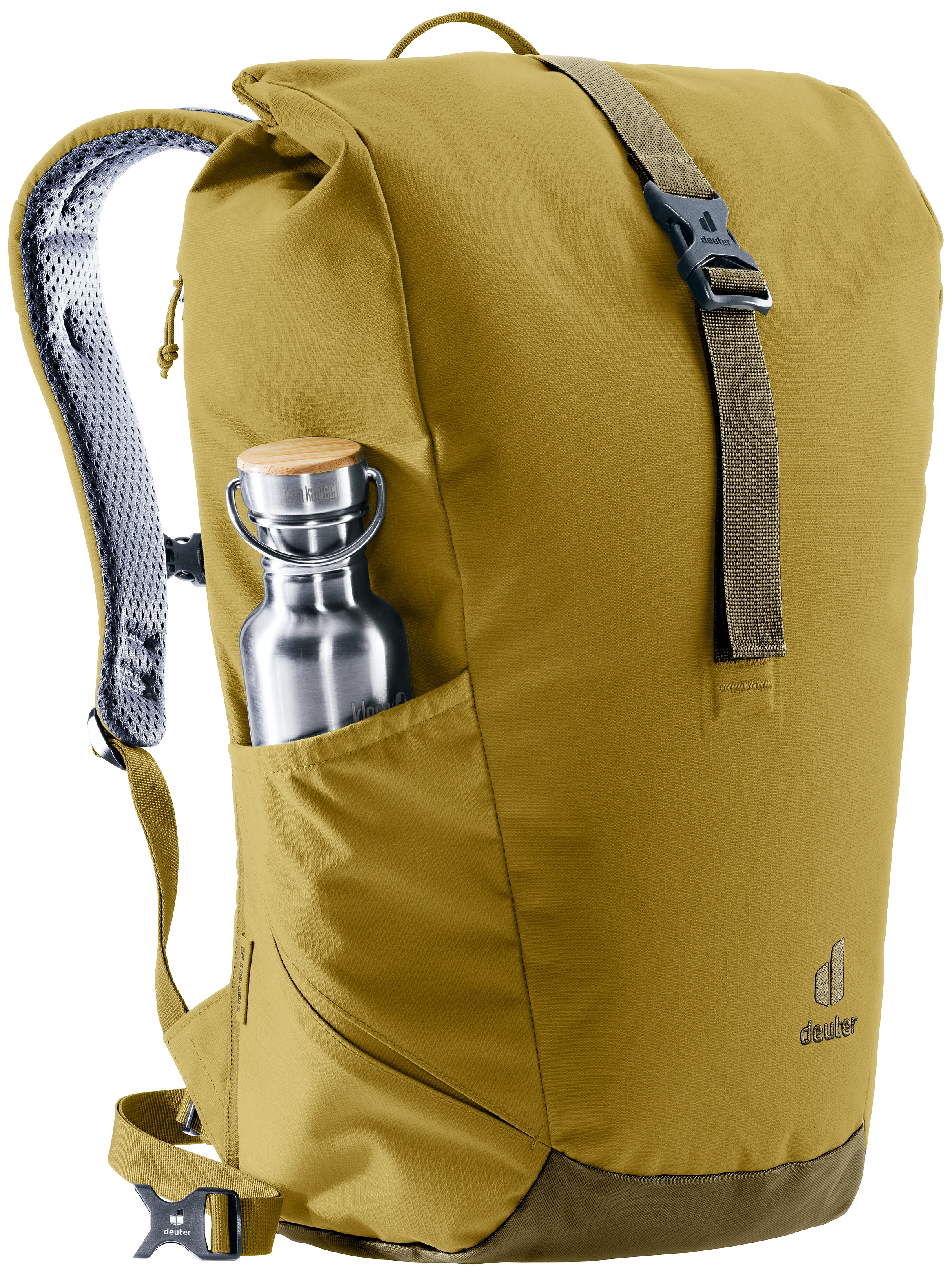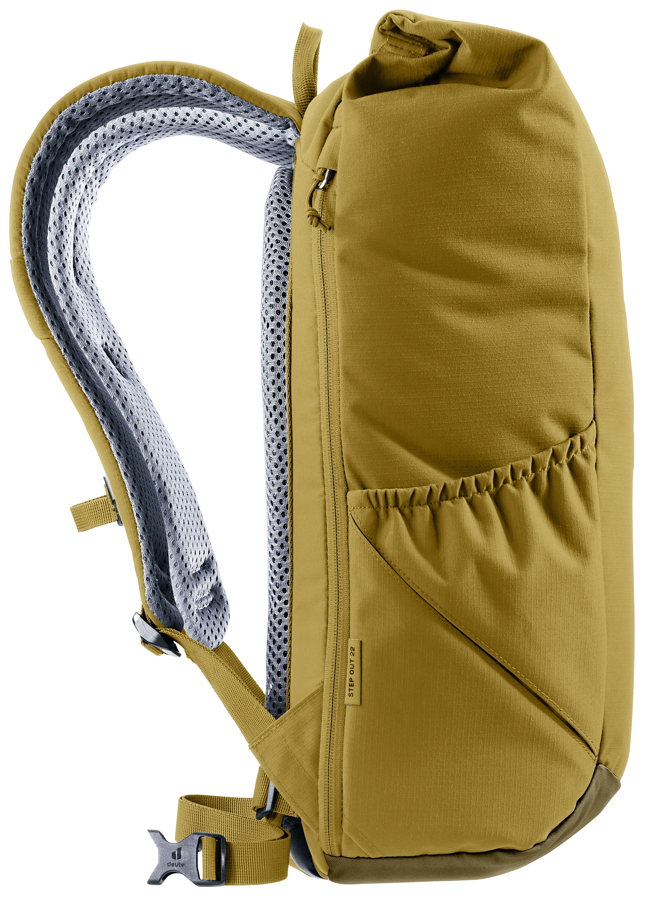 Gracias a los tirantes perforados y ergonómicos y al soporte lumbar del sistema de espalda Airstripes, el Stepout se caracteriza por una máxima circulación del aire y una gran comodidad de uso. La ampliación del volumen, el bolsillo lateral para el móvil y el bolsillo lateral elástico garantizan un acceso rápido a los objetos importantes. En el interior, los compartimentos para documentos y para el portátil, así como el portabotellas, ofrecen una buena organización. El tejido de este producto libre de PFC y con la certificación bluesign® Green Button está hecho de 26 botellas de PET de 0,5 litros recicladas y se fabrica según la norma bluesign®.