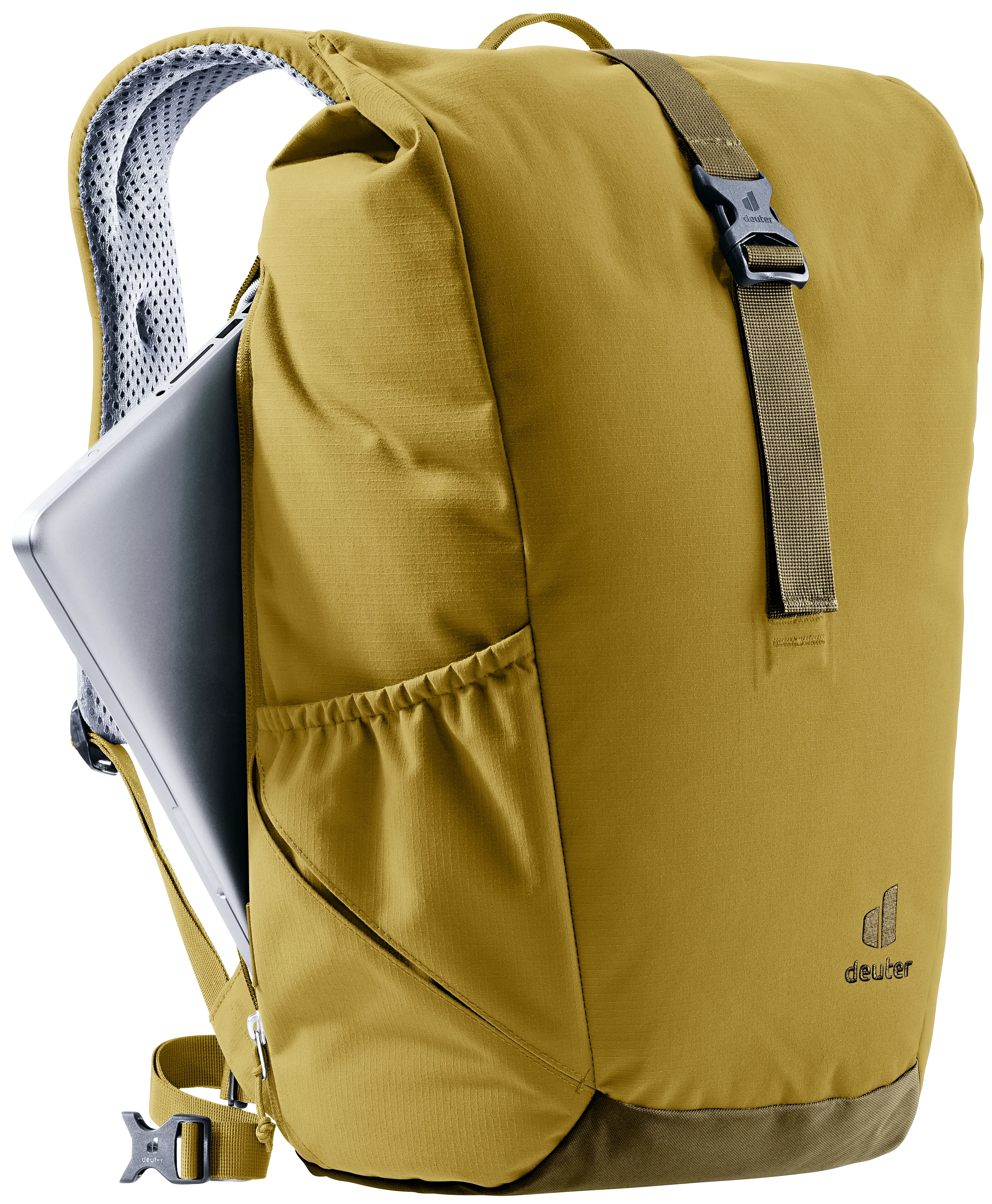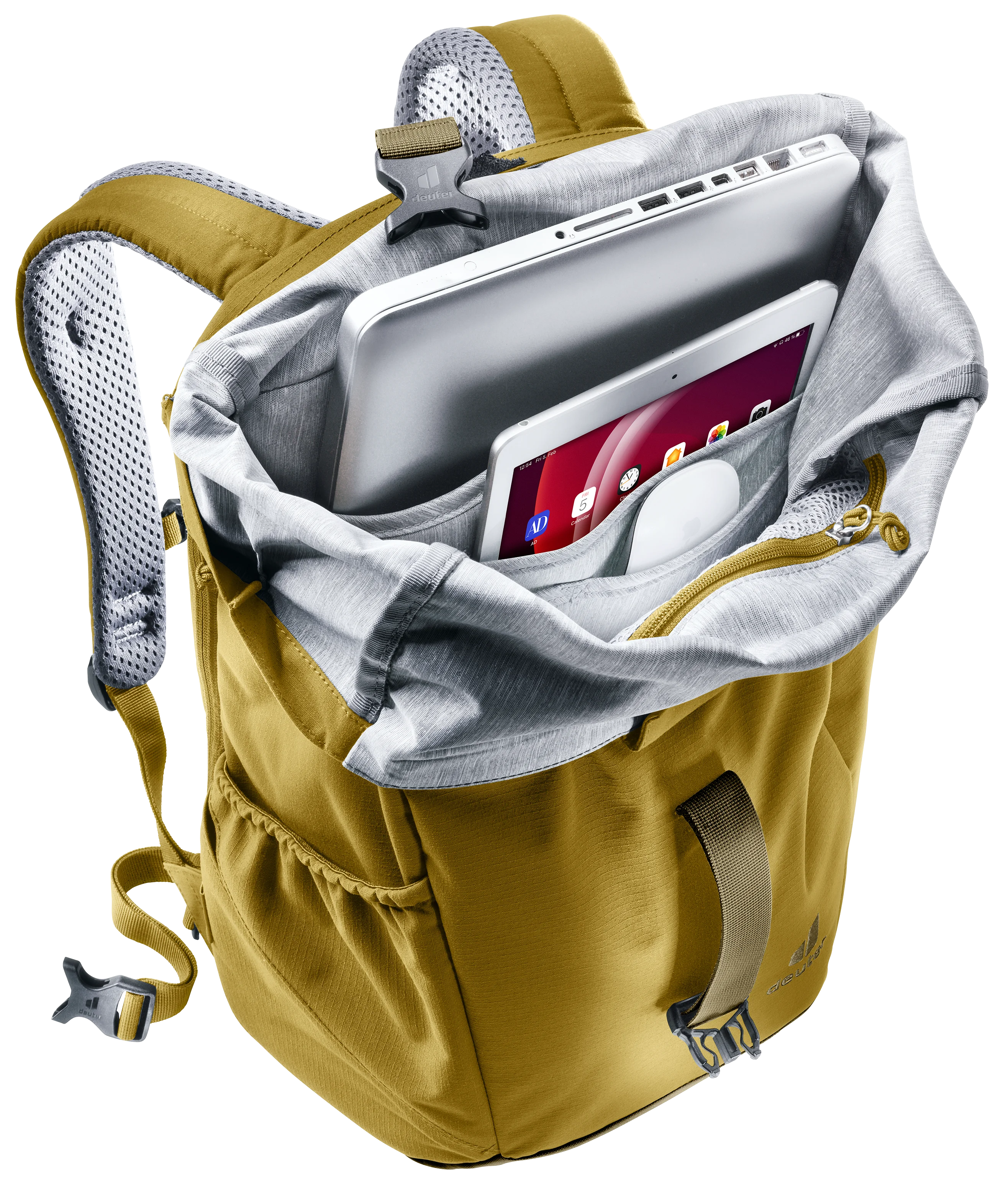 Además del portátil y los documentos de trabajo, que se guardan de forma segura en varios compartimentos interiores, los objetos más grandes de uso cotidiano también encuentran espacio suficiente en la mochila (22L) gracias a la ampliación del volumen de la tapa