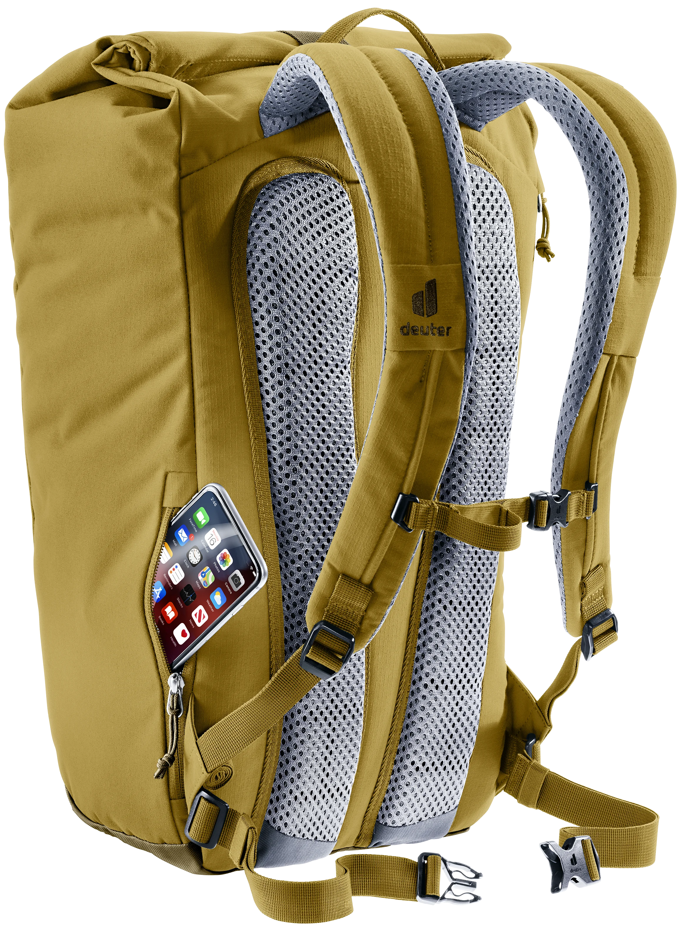 El sistema de transporte Airstripes con soporte lumbar, así como las correas de hombro perforadas y el cinturón de cadera desmontable, garantizan la máxima circulación de aire en la agitada vida cotidiana. Así, hasta la última camisa se mantiene seca.