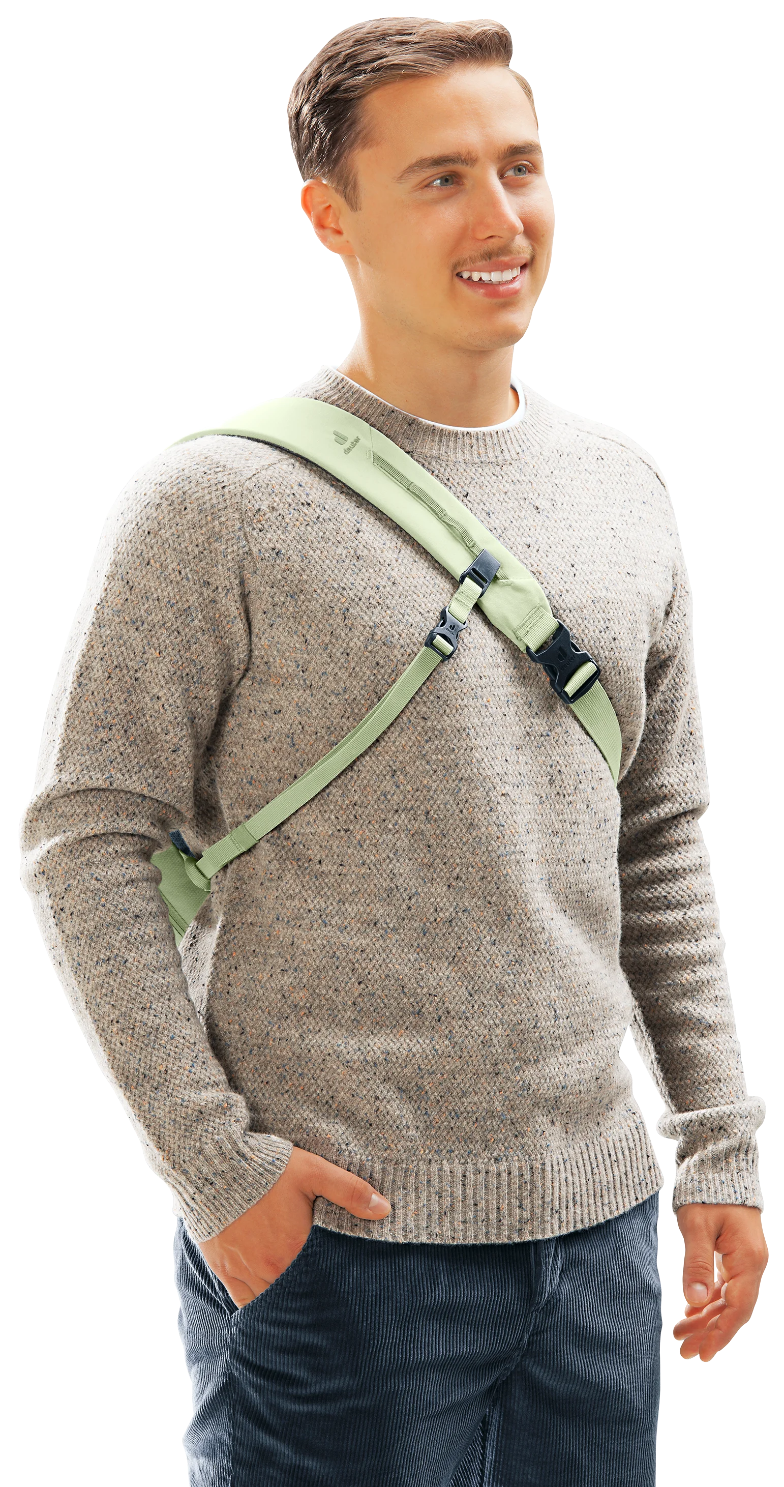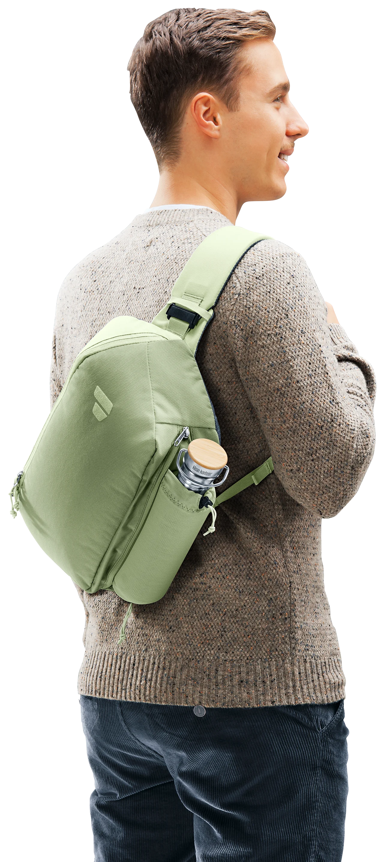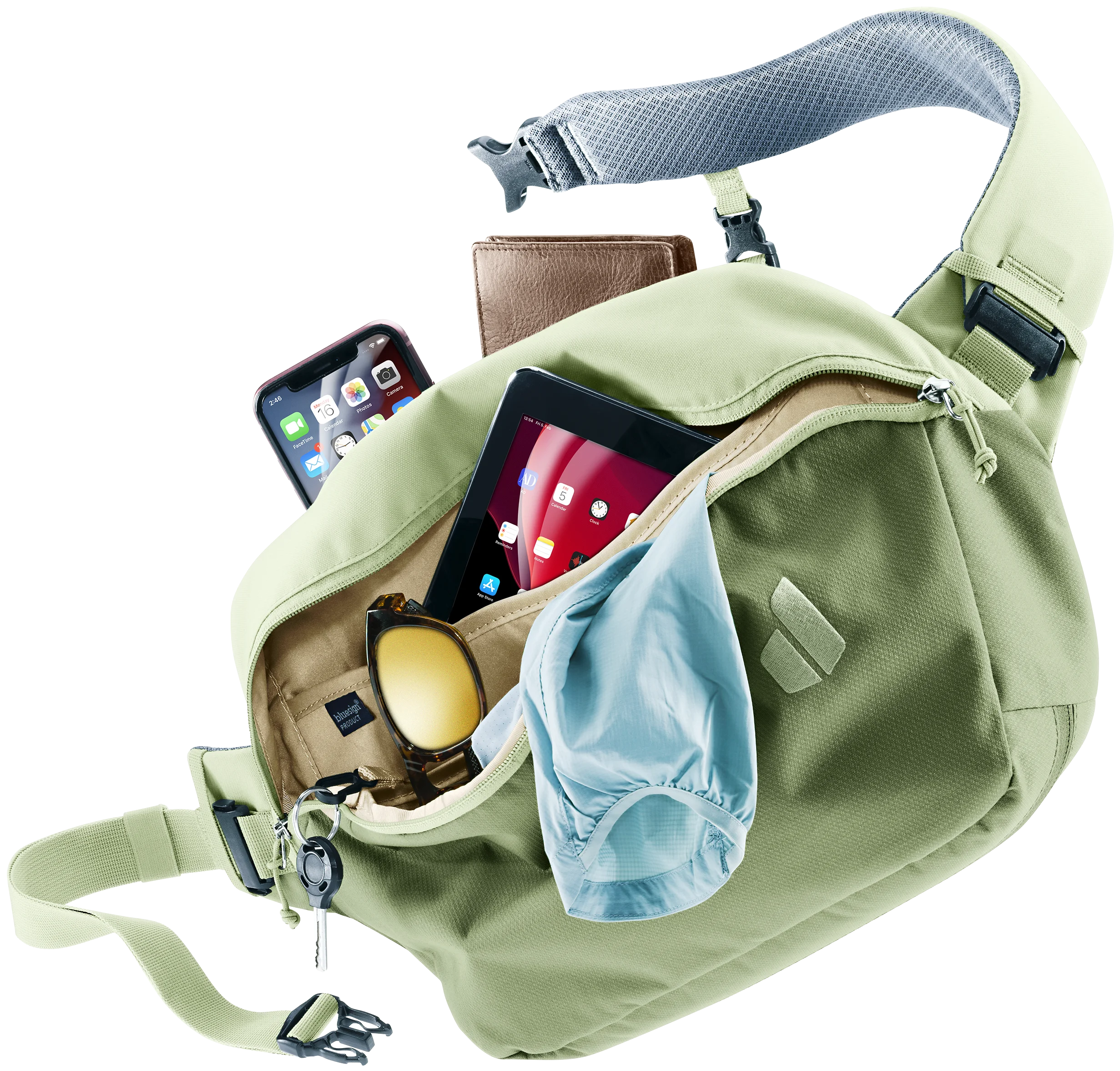 Esta elegante bandolera no sólo te deja las manos libres. También es extremadamente funcional. Su inteligente diseño ofrece un amplio espacio de almacenamiento en los compartimentos y en el interior de la bolsa para objetos personales, objetos de valor y una tableta. En la versión más grande, un portabotellas bidireccional integrado ofrece espacio seguro para 1 litro de líquido. Y para aliviar los hombros cansados después de un largo viaje, la bolsa puede llevarse tanto en el lado izquierdo como en el derecho.