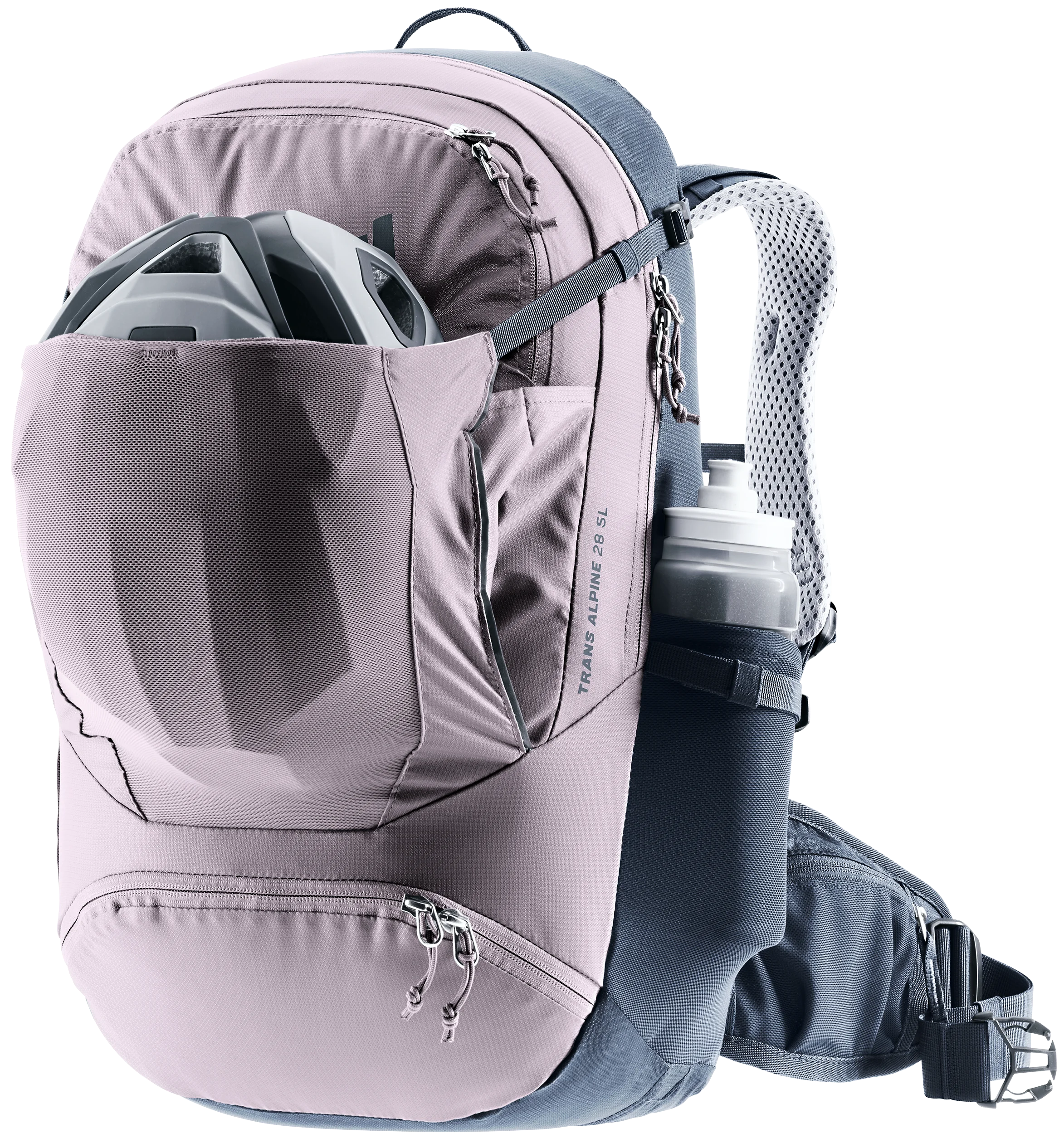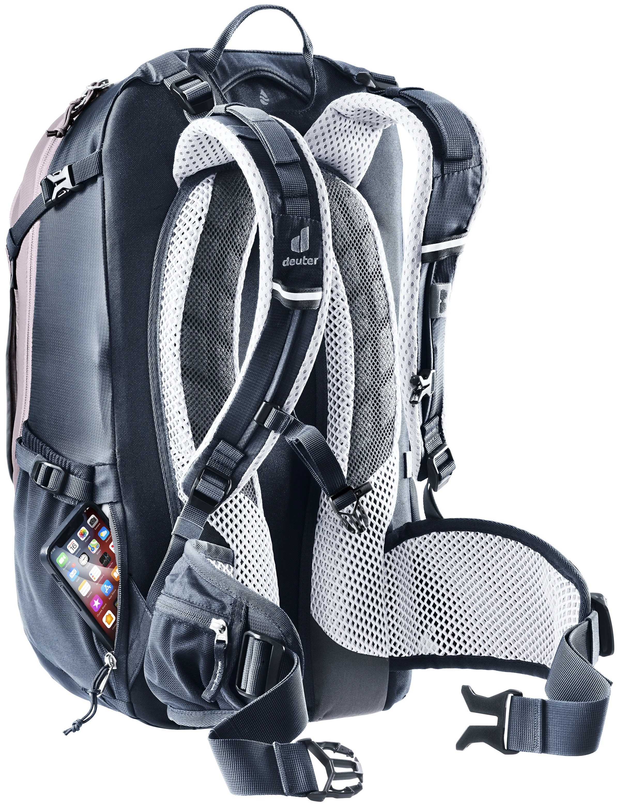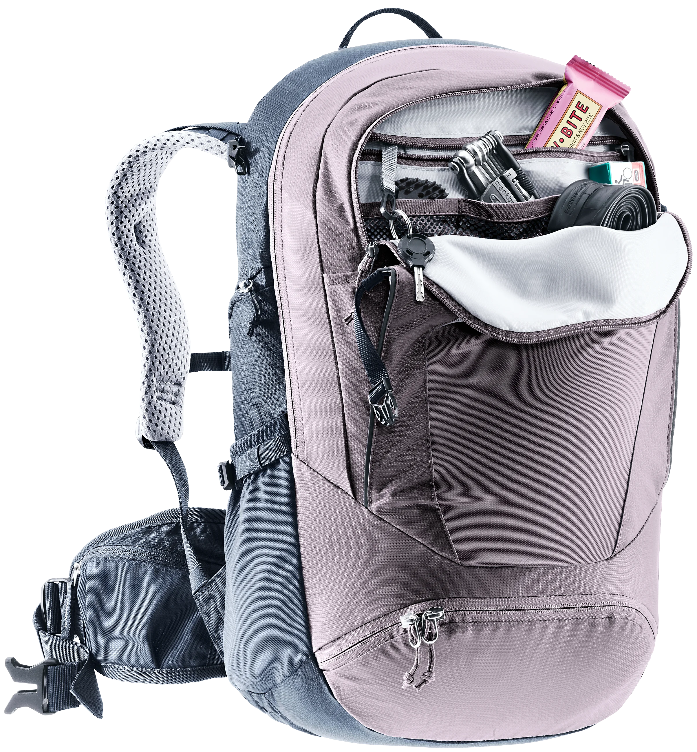 Esta amplia mochila es ideal para travesías alpinas en bicicleta de montaña. Su ingeniosa distribución, con compartimentos para herramientas y bombín, su bolsillo frontal que puede incluso albergar un casco y un compartimento principal subdividido hacen que sea muy fácil manejar y organizarlo todo. El sistema dorsal deuter Airstripes permite una buena ventilación de la espalda y un buen ajuste para afrontar tramos complicados sin que la carga oscile.