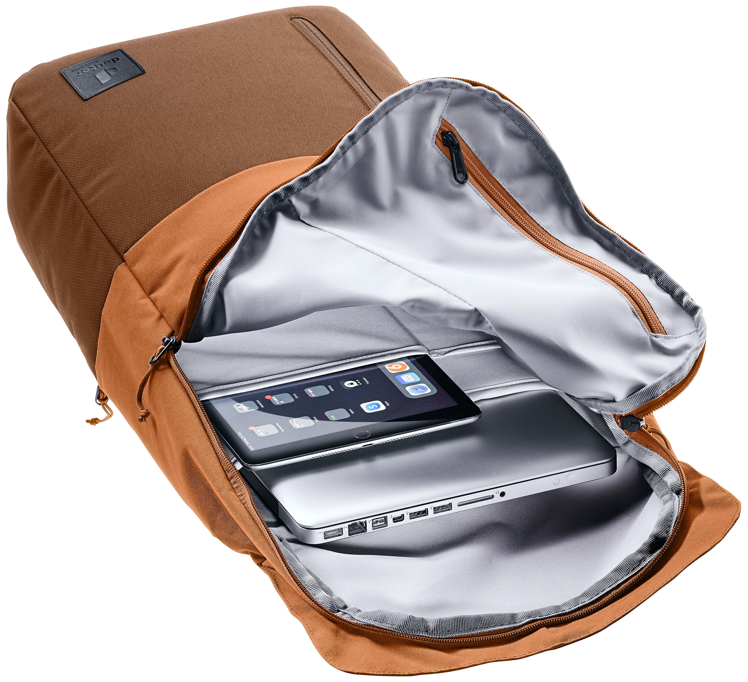 Nach langem Suchen und viel Testen verschiedener Rolltop-Rucksäcke für meinen schweren Laptop (3kg - 16 Zoll), bin ich bei diesem hier gelandet. Sehr angenehmes Tragegefühl - danke dem tollen Rücken- u. Schultersystem, man merkt das Gewicht das schweren Laptops überhaupt nicht. Viel Stauraum für Laptop, Tablet, Block etc., was man so fürs Büro benötigt. Es passt auch noch ein Einkauf nach dem Büro rein. Sehr praktisch sind die kleinen Taschen am Rucksack vorne sowie an der Seite für Smartphone oder Kleinzeug wie z.B. Headset. Volle Empfehlung ! Ich kaufe immer wieder gerne einen Deuter-Rucksack ein.