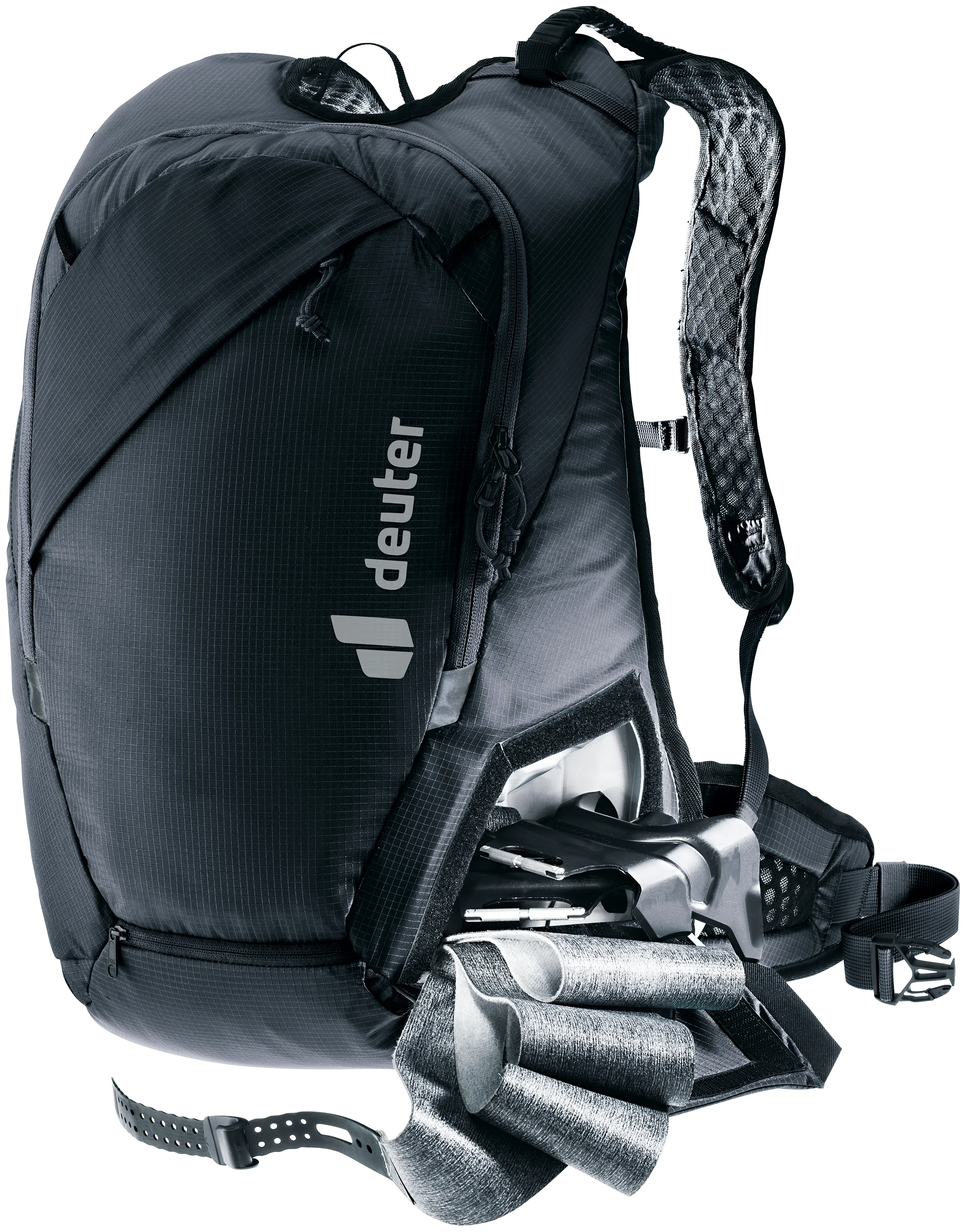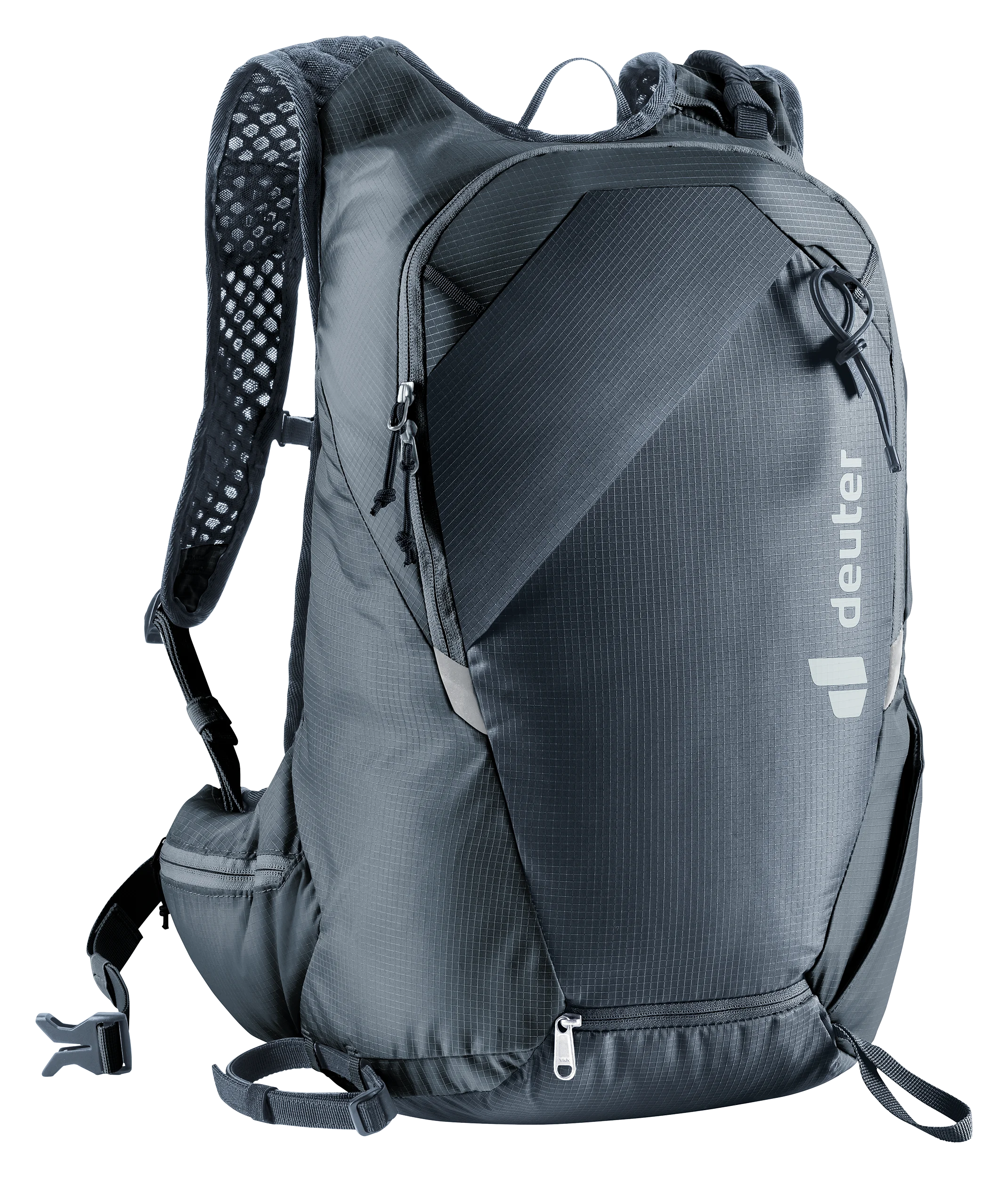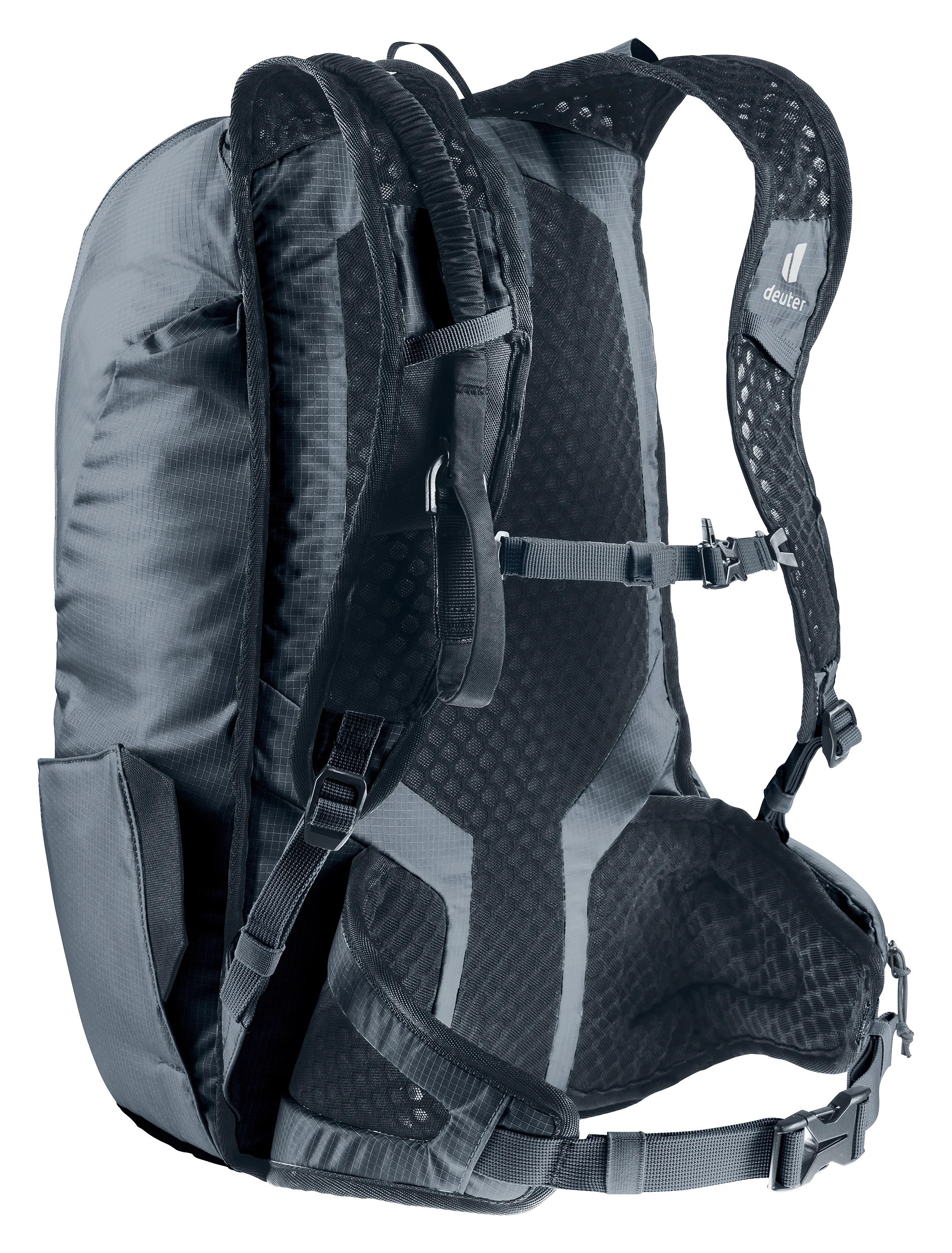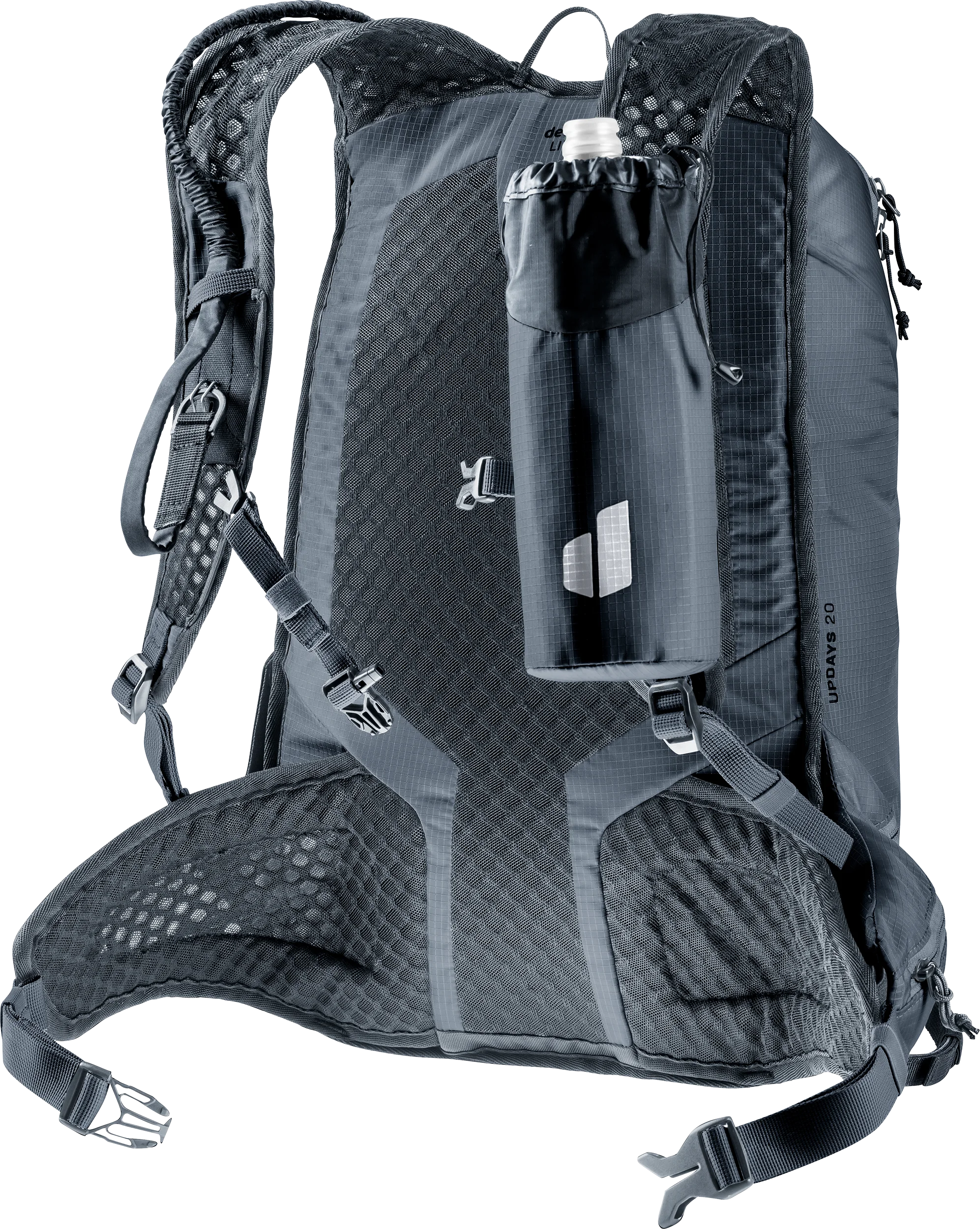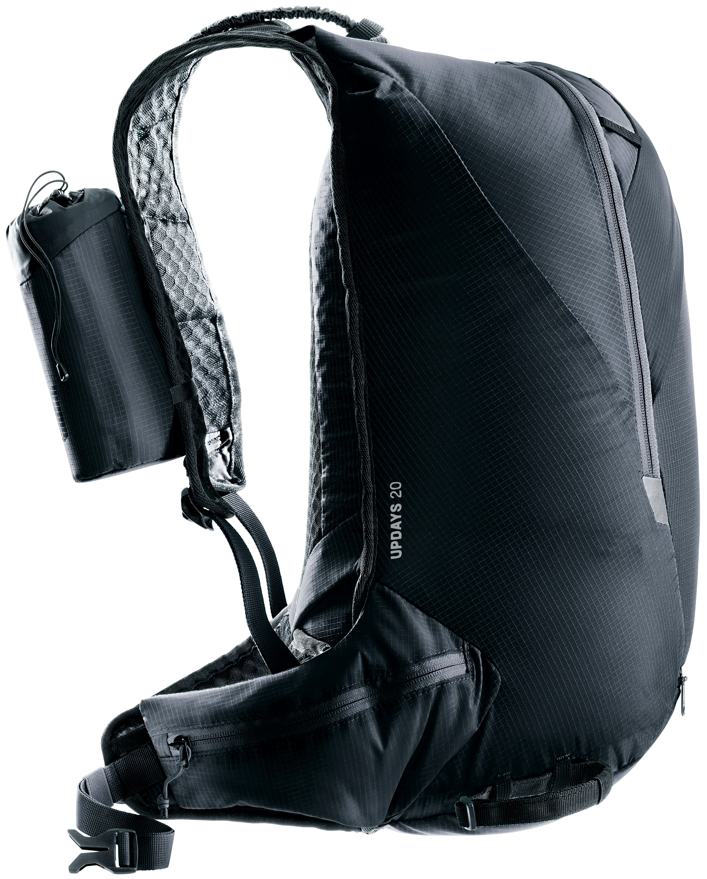 Sólo 670 g. Ultraligera con el confort deuter Lite para esquí de travesía de velocidad: buena ventilación, aletas ergonómicas en las caderas y tirantes con correa de esternón desmontable y almohadilla de espuma en la espalda (extraíble) se combinan para crear un ajuste ceñido sin que la carga se tambalee. Un sistema ajustable de fijación diagonal de los esquís con un bucle deslizante que se ajusta alrededor de los extremos de los esquís y un cordón elástico que envuelve las puntas y se fija a un gancho en la correa del hombro proporciona a la Updays un manejo rápido y sencillo. Un compartimento inferior de fácil acceso también permite acceder rápidamente a las pieles, los crampones de esquí o los crampones de escalada, sin tener que quitarse la mochila. Un producto de clima neutro.