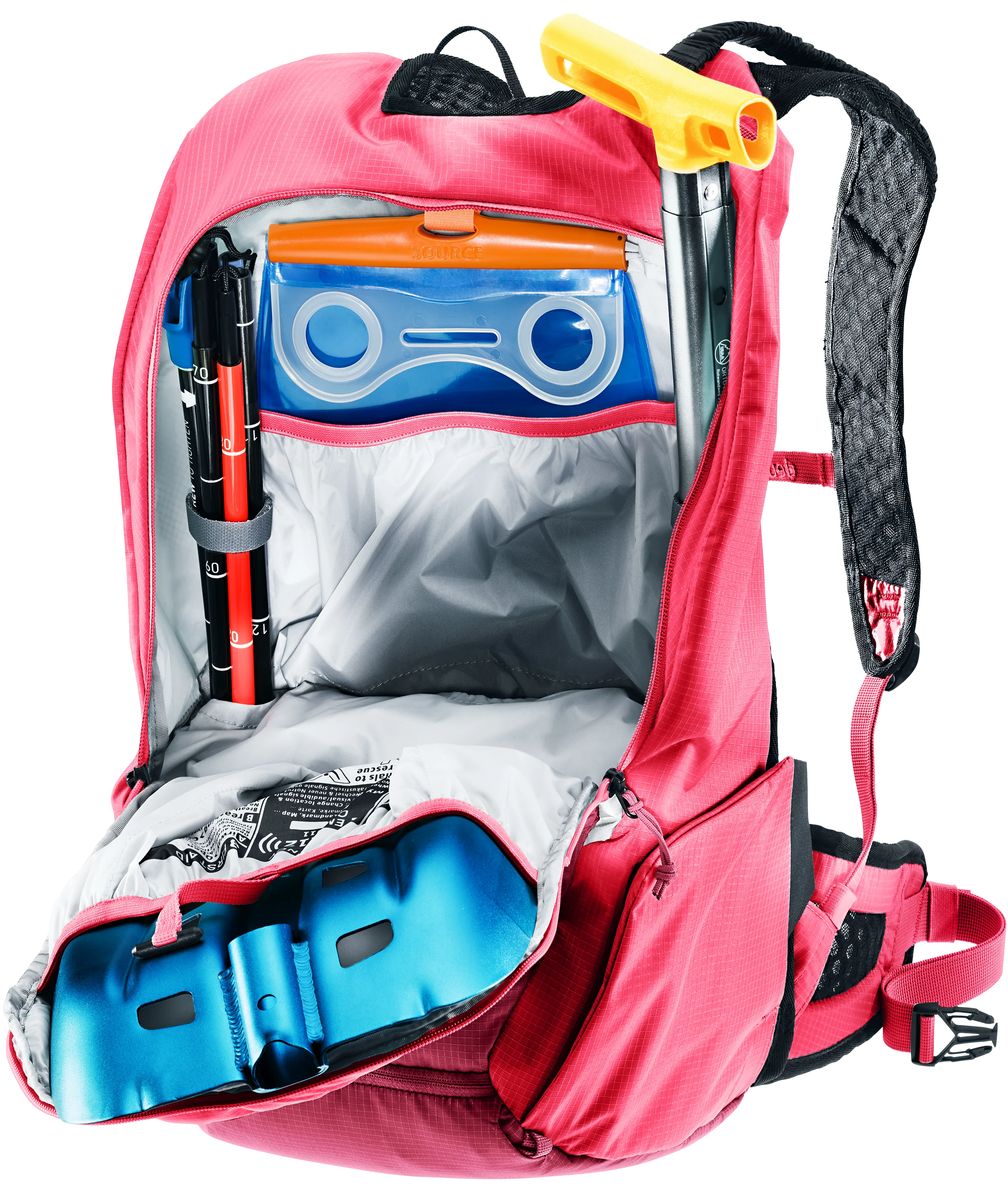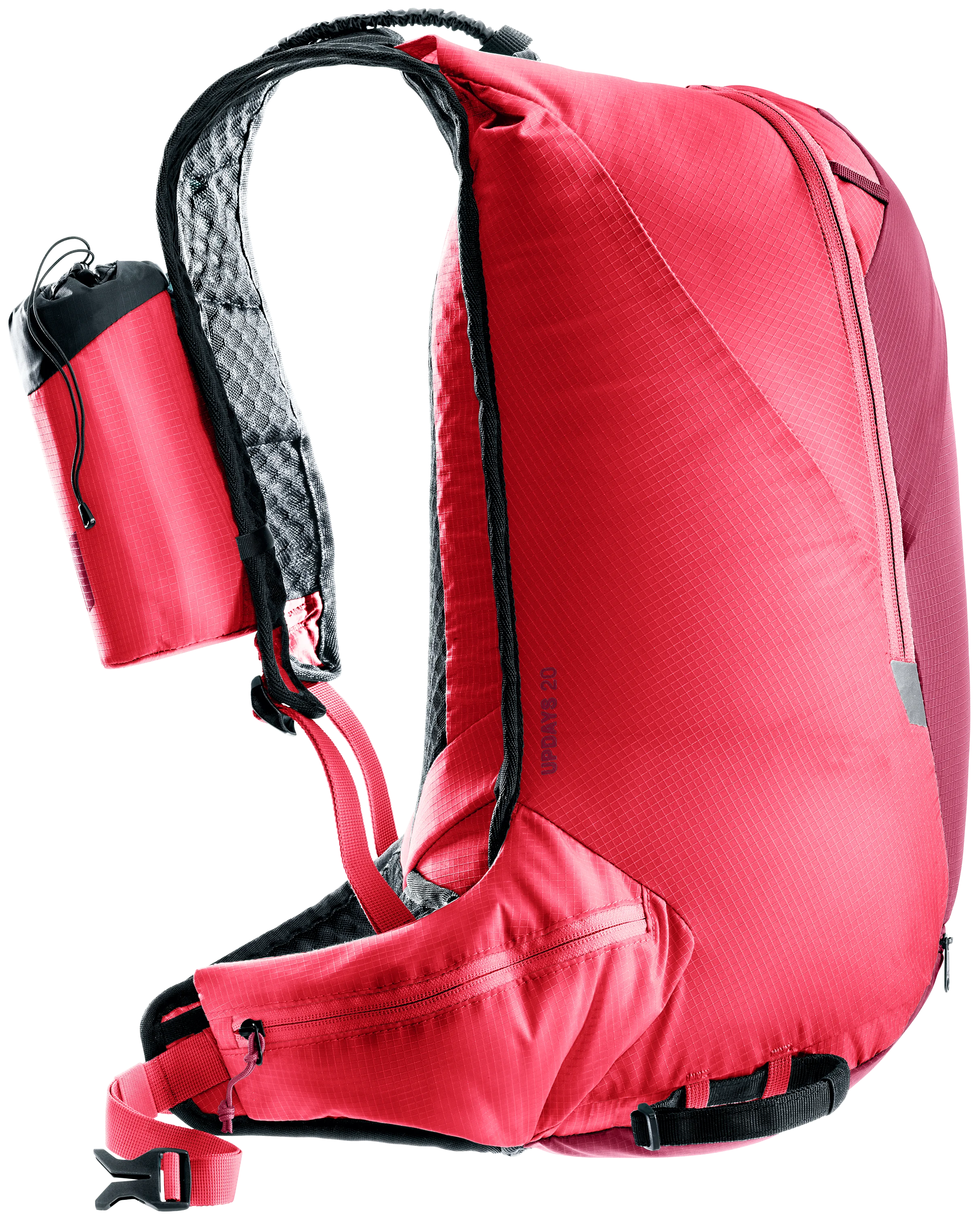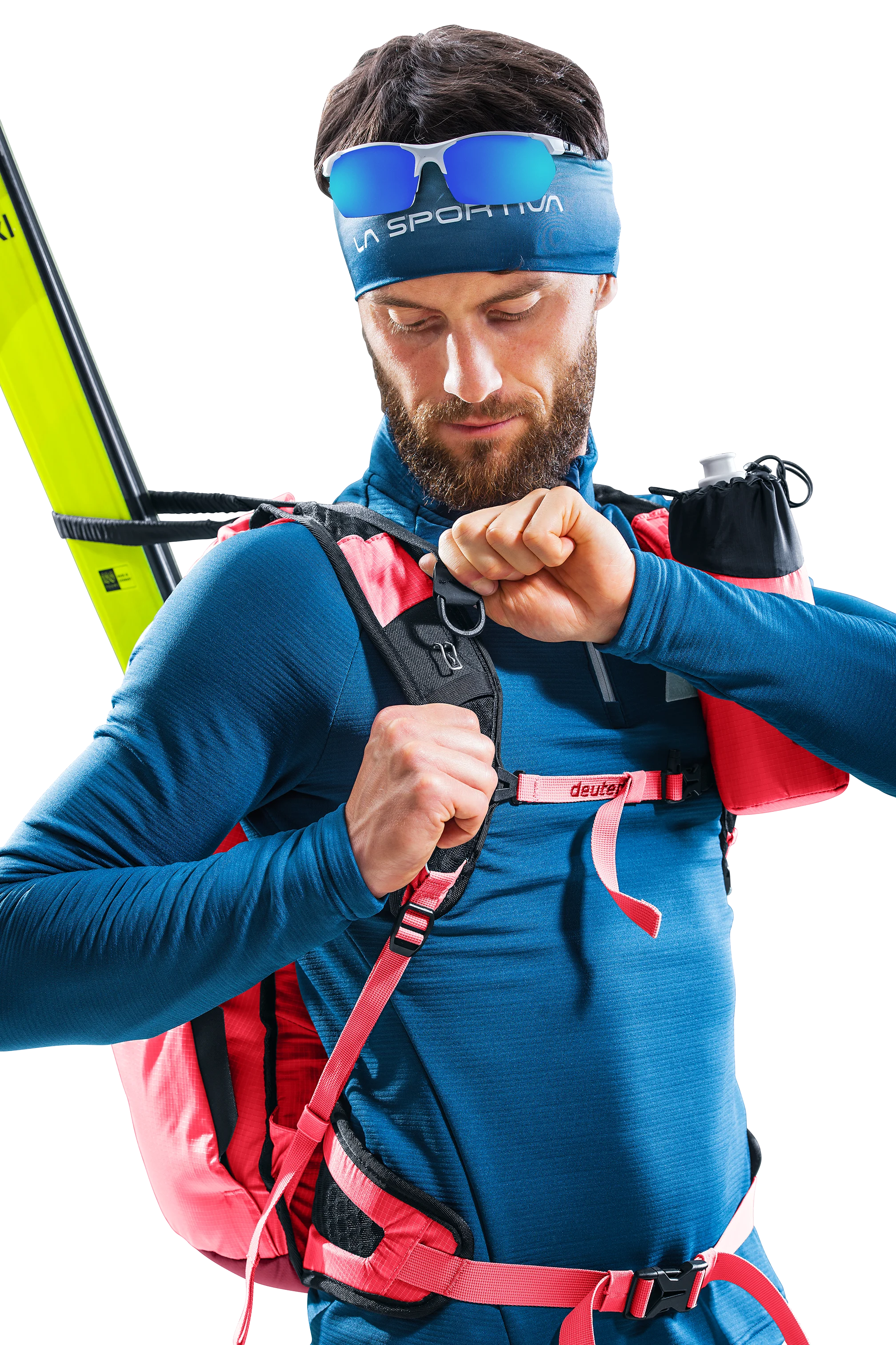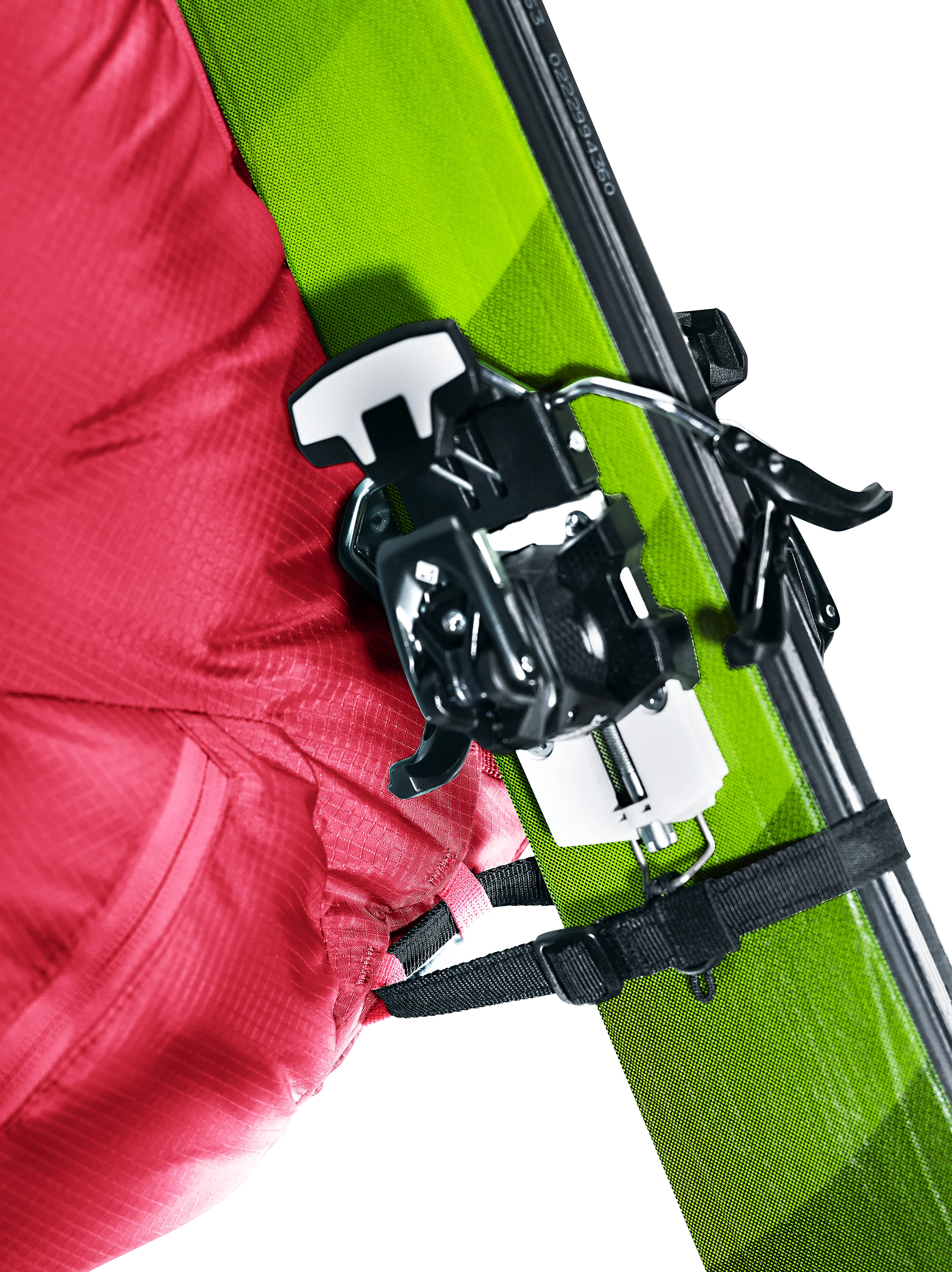 Sólo 670 g. Ultraligera con el confort deuter Lite para esquí de travesía de velocidad: buena ventilación, aletas ergonómicas en las caderas y tirantes con correa de esternón desmontable y almohadilla de espuma en la espalda (extraíble) se combinan para crear un ajuste ceñido sin que la carga se tambalee. Un sistema ajustable de fijación diagonal de los esquís con un bucle deslizante que se ajusta alrededor de los extremos de los esquís y un cordón elástico que envuelve las puntas y se fija a un gancho en la correa del hombro proporciona a la Updays un manejo rápido y sencillo. Un compartimento inferior de fácil acceso también permite acceder rápidamente a las pieles, los crampones de esquí o los crampones de escalada, sin tener que quitarse la mochila. Un producto de clima neutro.