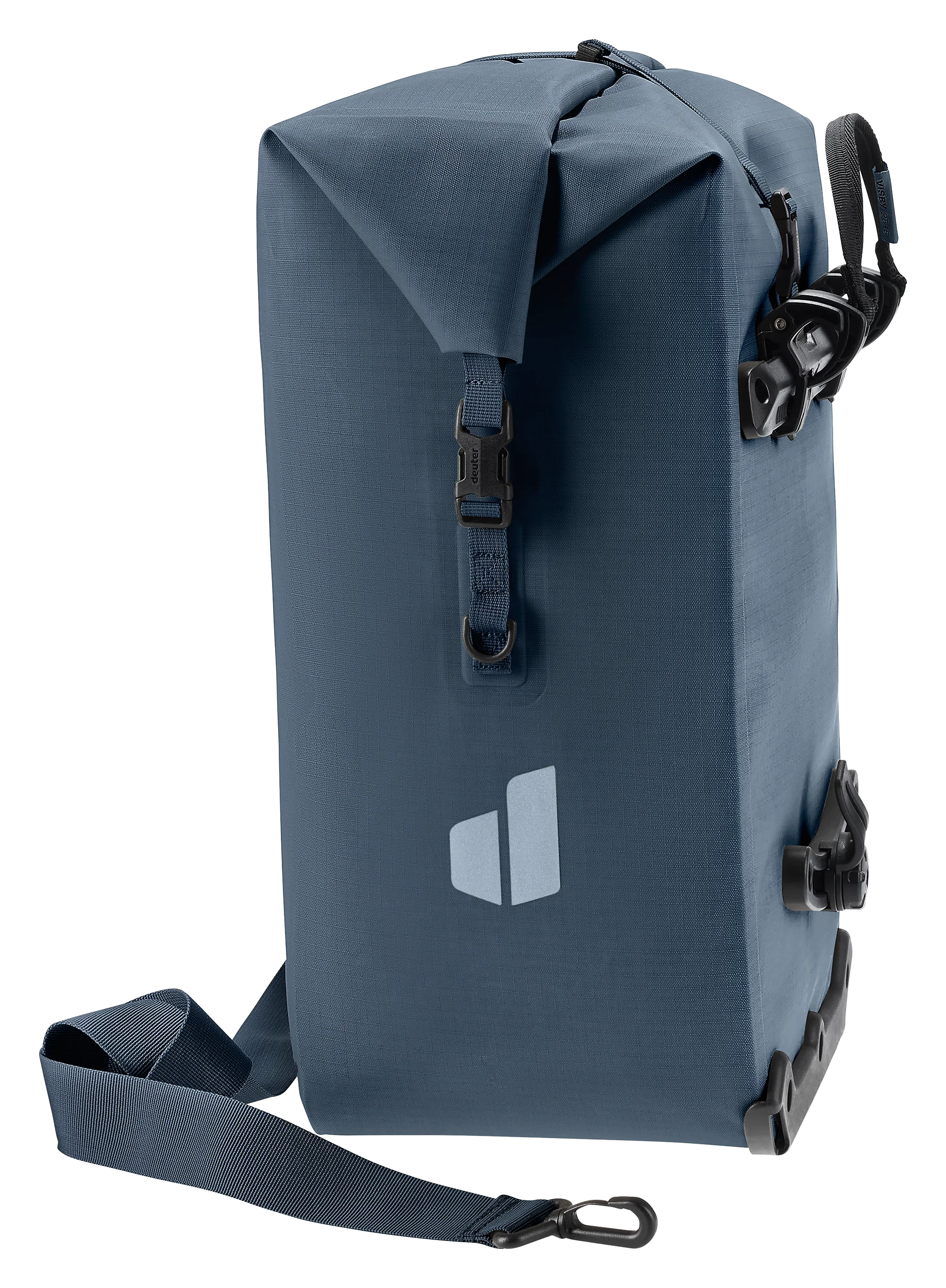 Ya sea como bolsa de equipaje para viajes en bicicleta o como compañera fiable para el día a día, su bandolera desmontable y las esquinas reforzadas convierten esta alforja en un modelo con posibilidades de uso casi ilimitadas.