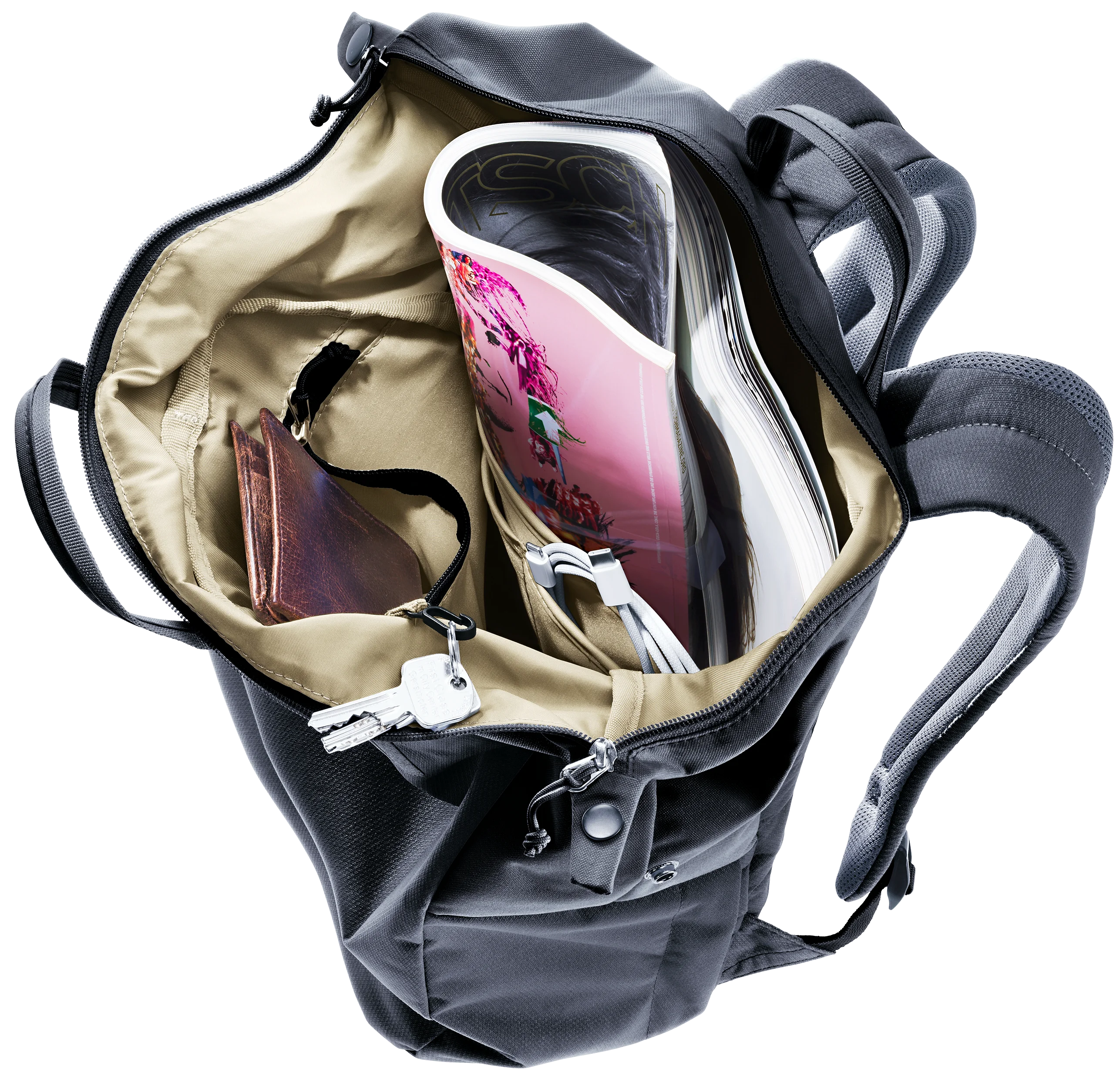 Mochila elegante para ciudad o incluso para ir de compras. La Vista lo tiene todo. La forma ergonómica del respaldo acolchado deuter Airstripes se ajusta a la espalda, mientras que los canales de ventilación generan una buena circulación de aire. Cuenta con un práctico diseño de carga superior para acceder a su amplio compartimento principal, y además tiene varias divisiones interiores y una unidad organizadora, por lo que esta mochila ofrece un gran espacio de almacenamiento para uso diario.