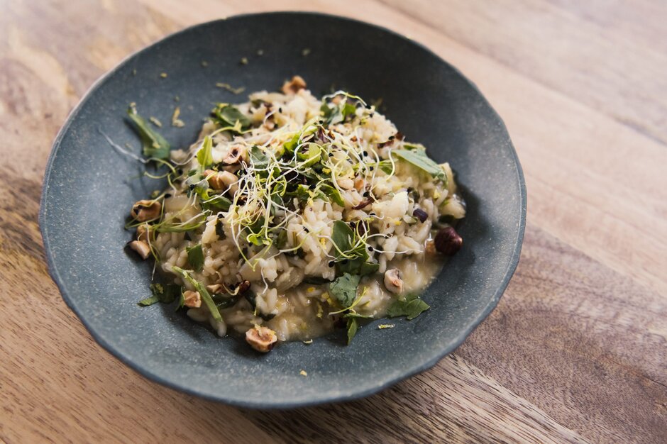 - Ricotta, lemon, rocket and hazelnut risotto