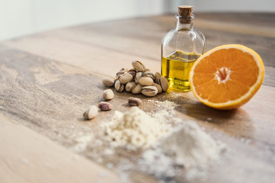 - Polenta, pistachio, orange, yoghurt and olive oil cakes