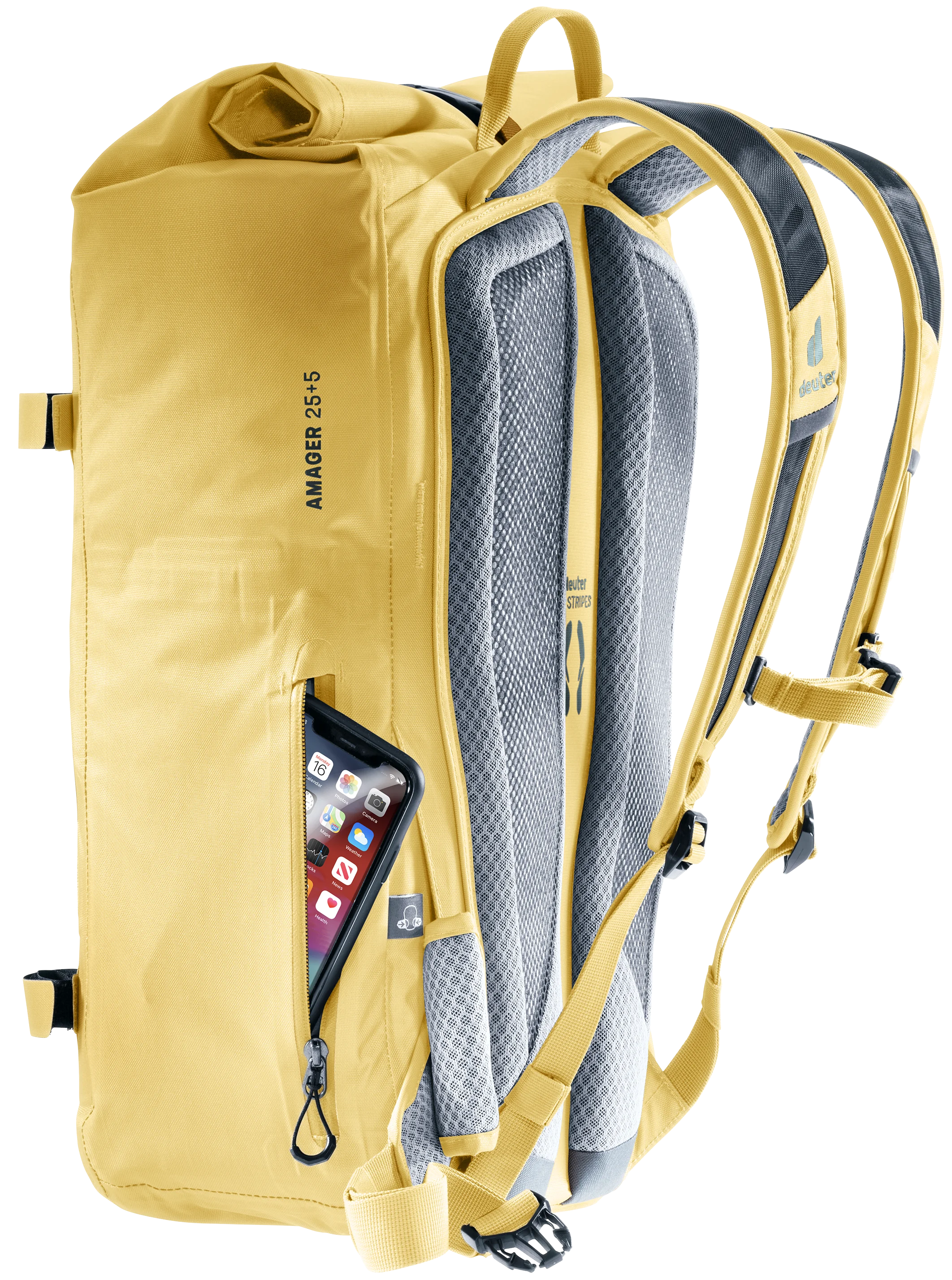 La jungle urbaine demande de l'équilibre et fait transpirer en même temps. Le centre de gravité du sac à dos étanche doit être proche du corps et la circulation de l'air doit être maximale. Ceci est assuré par le système de portage confortable Airstripes avec un soutien dorsal réduit, la maille Air Spacer perméable à l'air, les bretelles et les ailerons de hanche perforés et ergonomiques et la sangle de poitrine réglable. Grâce au volume élargi, vous pouvez également ranger des vêtements de rechange pour un apéritif après le travail.