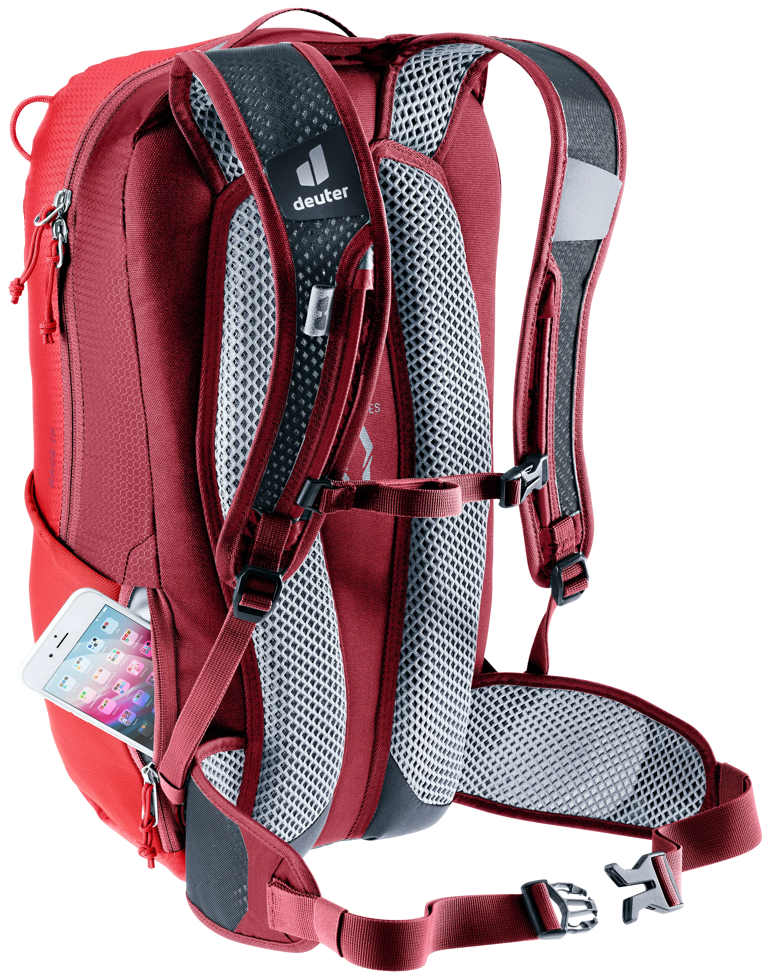 Le système dorsal Airstripes perméable à l’air garantit une bonne aération du dos et reste compact sur le corps, même sur les parcours de trail. De plus, la sangle de poitrine avec la nouvelle boucle de sangle de poitrine utilisable d’une seule main et les stabilisateurs de hanche avec filet maintiennent le sac en position optimale, même lorsque les conditions sont plus rudes.