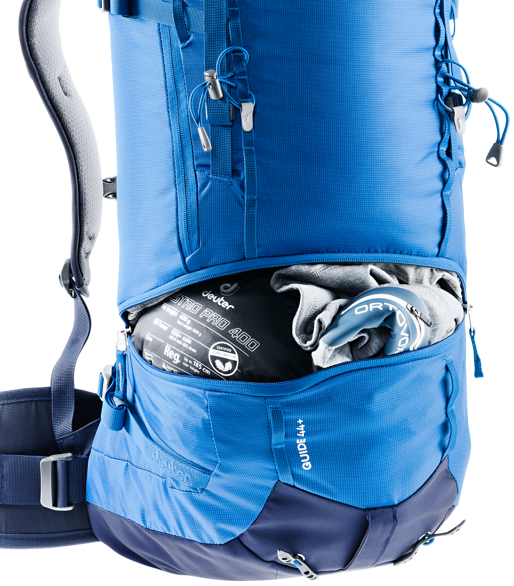 Sur le dos, prêt, partez. Le nouveau guide est non seulement plus léger que son prédécesseur, mais aussi intelligemment conçu. Grâce a l'acces frontal, tu peux accéder rapidement a ton équipement et ne pas perdre de temps lors de ta randonnée. Si tu veux économiser du poids supplémentaire, il te suffit d'enlever les ailerons de hanche, le support du casque ou le cadre. Grâce a l'Alpine Back System, le sac a dos est bien ajusté et pres de ton corps : tu es en sécurité en montagne.