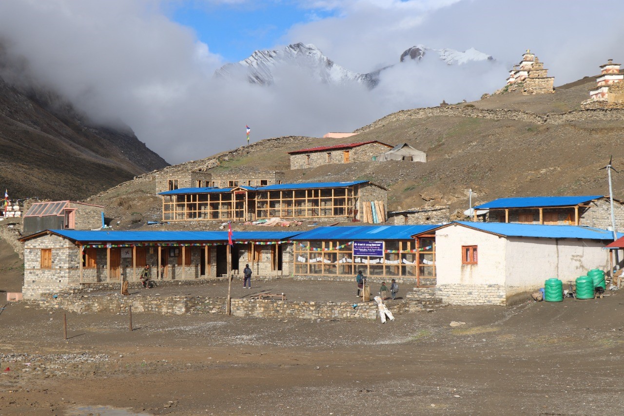 Dolpo is a remote and high-altitude region in northwestern Nepal, bordering Tibet, with no roads connecting it to the rest of the country. The village of Chharka lies at an elevation of 4,300 meters. Although it is only about 159 kilometers from Kathmandu, the lack of infrastructure means it takes a full day by jeep to reach. For nearly two years, Nepalhilfe Beilngries had been planning and financing the construction of a highly efficient low-energy school building tailored to the region’s harsh conditions — including challenging infrastructure and material sourcing. Transporting construction materials required the use of animals like donkeys and buffaloes, as the terrain is rugged and can only be crossed on footpaths at high elevations of over 4,000 meters.
