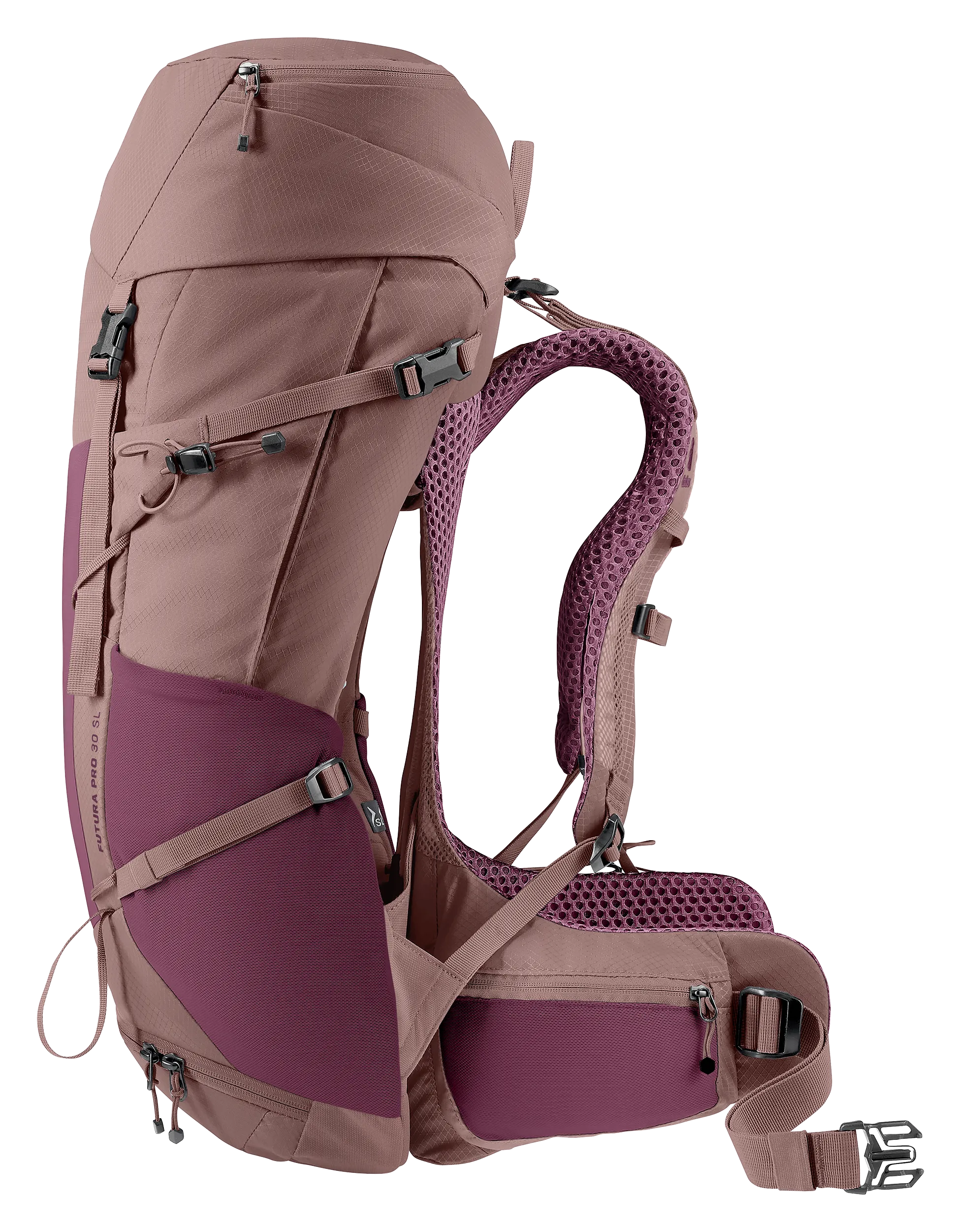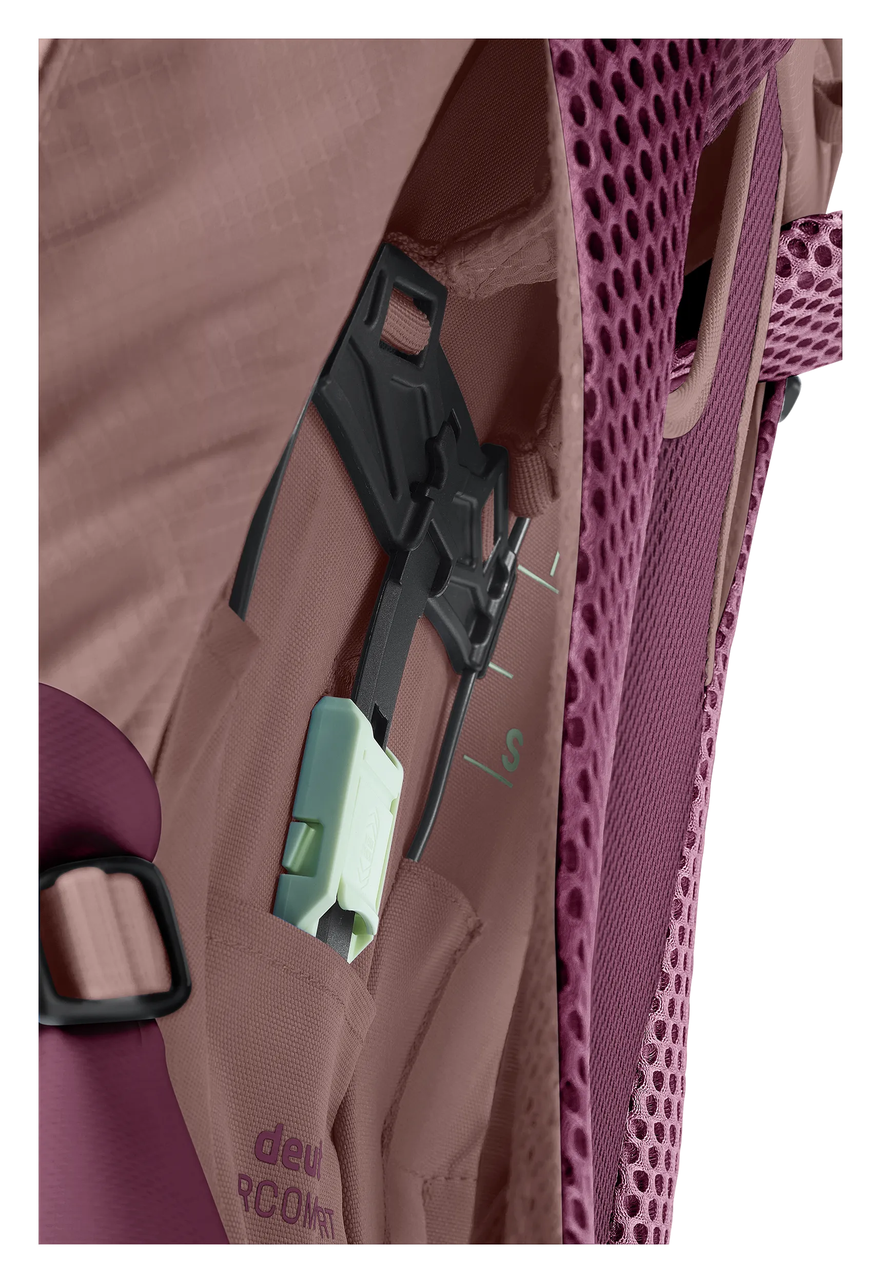 This model is also available in the SL version. The SL back length is specific for women: on average, women have shorter backs than men. The carrying system in the SL model is therefore somewhat shorter than in the deuter standard backpacks. In addition, the carrying system is specially adapted to the female anatomy. More information about our fits.