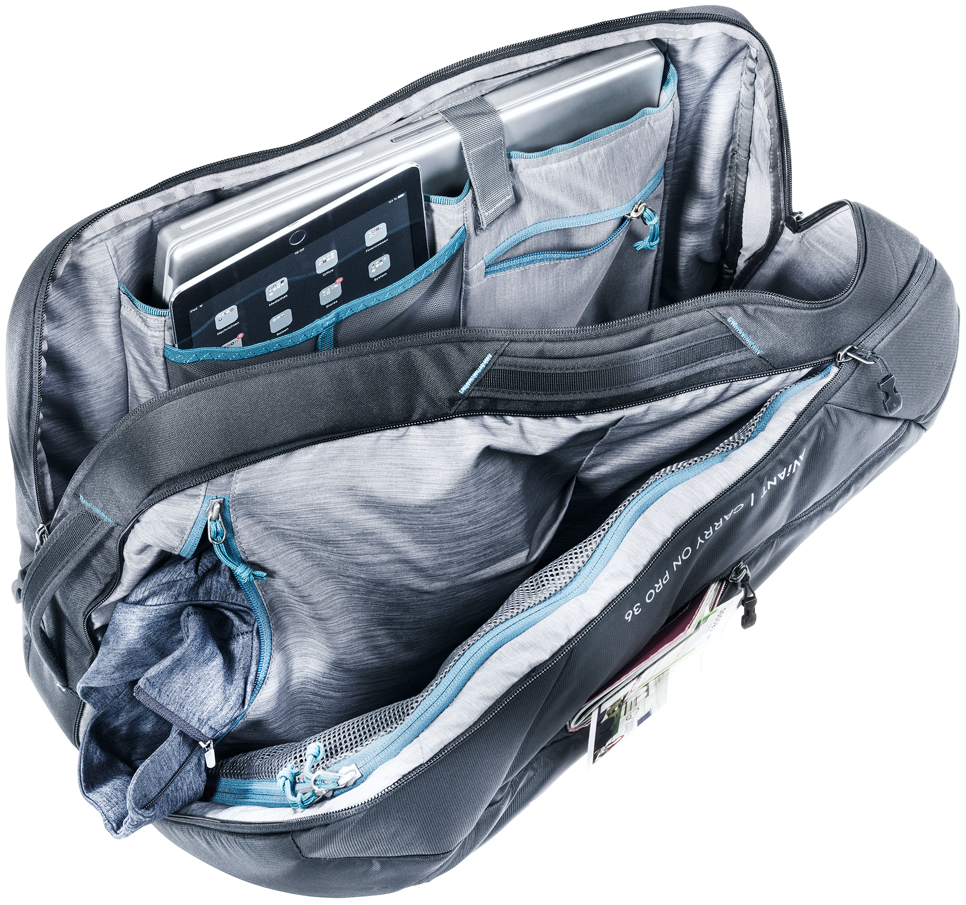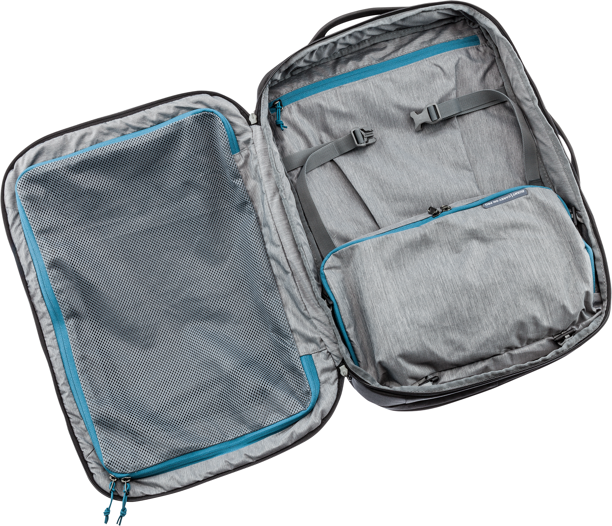 Are work and travel an integral part of your daily life? With the Carry On Pro you’ll fit everything into one backpack: clothing, laptop, documents etc. The full-length zip lets it open up like a suitcase, and with its stowable shoulder straps and padded grab handles this backpack also doubles as a carrier bag. There is also a separate, removable bag for dirty laundry or footwear. Sized to comply with carry-on luggage regulations, it cuts out waiting times at check-in and the baggage carousel. And if you’re travelling with a wheeled suitcase as well, the Carry On Pro has a pass-through sleeve at the back that allows you to thread the pack onto the pull-out handle of your suitcase.