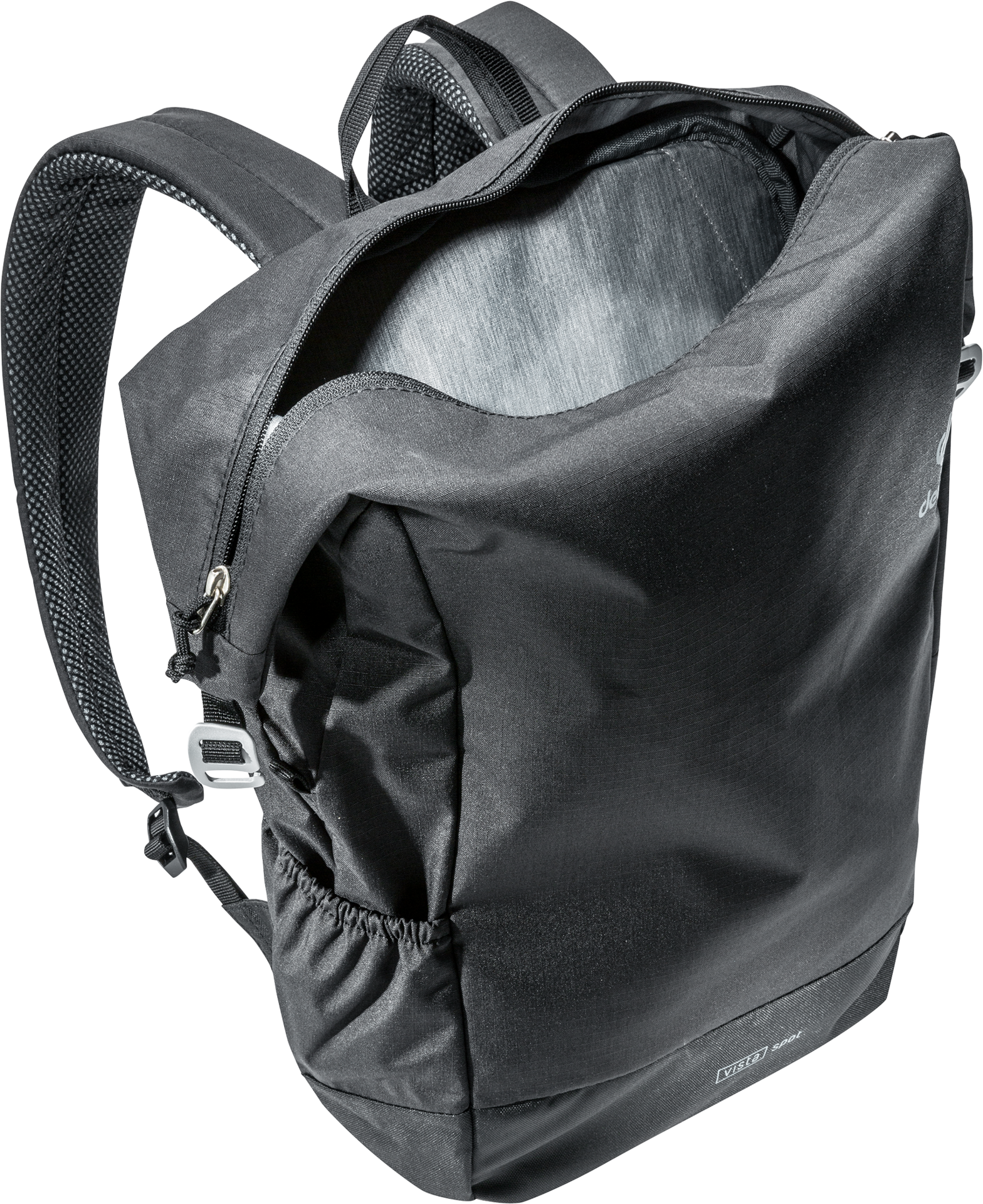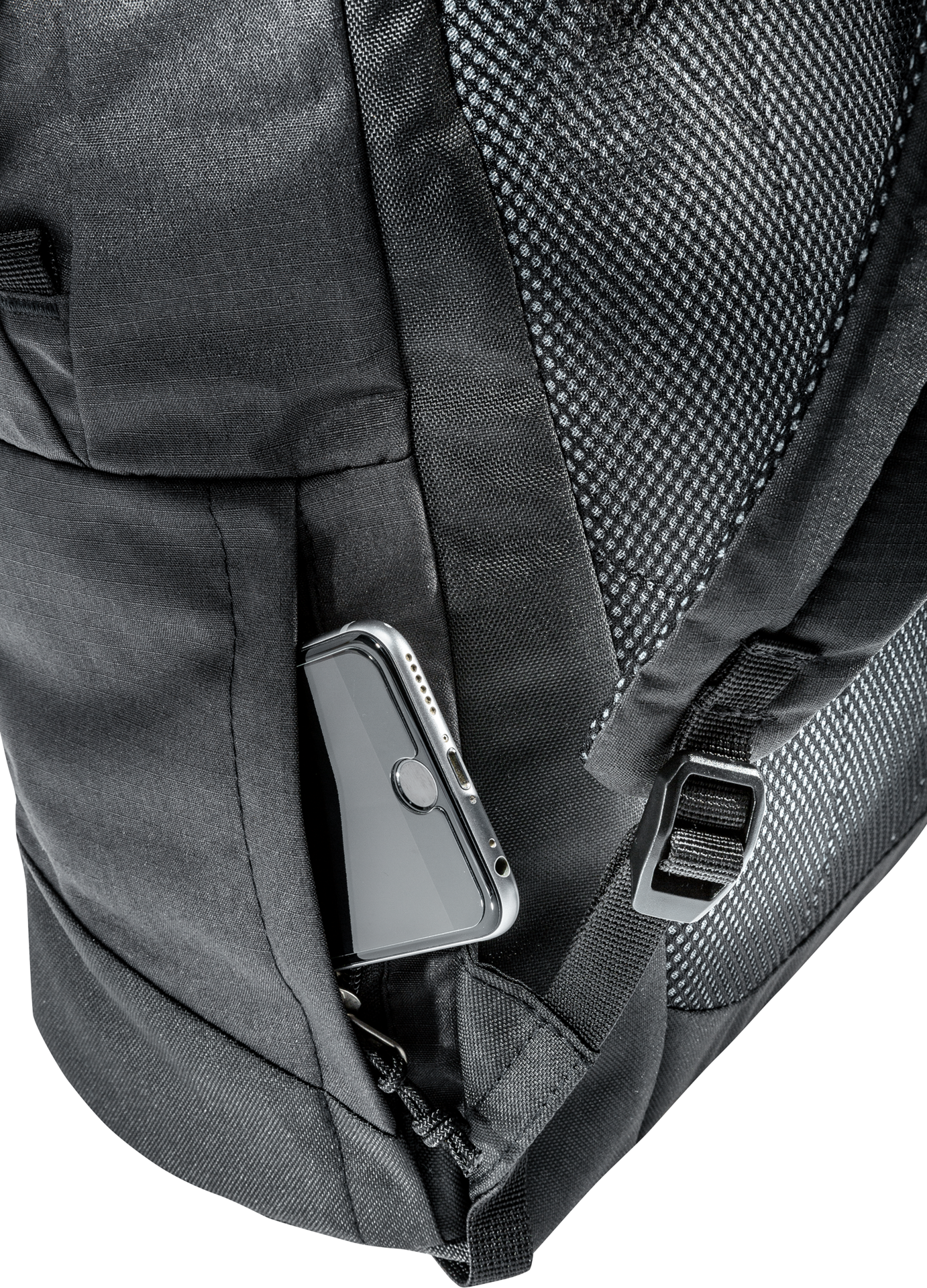 This daypack has character: Corners and edges. With its padded but light back section, this small backpack can be easily stowed in a suitcase and arrives in style in the city. But the superlight hipster is also great for every day: When its metal hooks at the side are opened, even flat files can be cleverly stored. Apart from that, the zipper offers quick access to the main compartment. The mobile phone remains protected and easily accessible in another pocket.