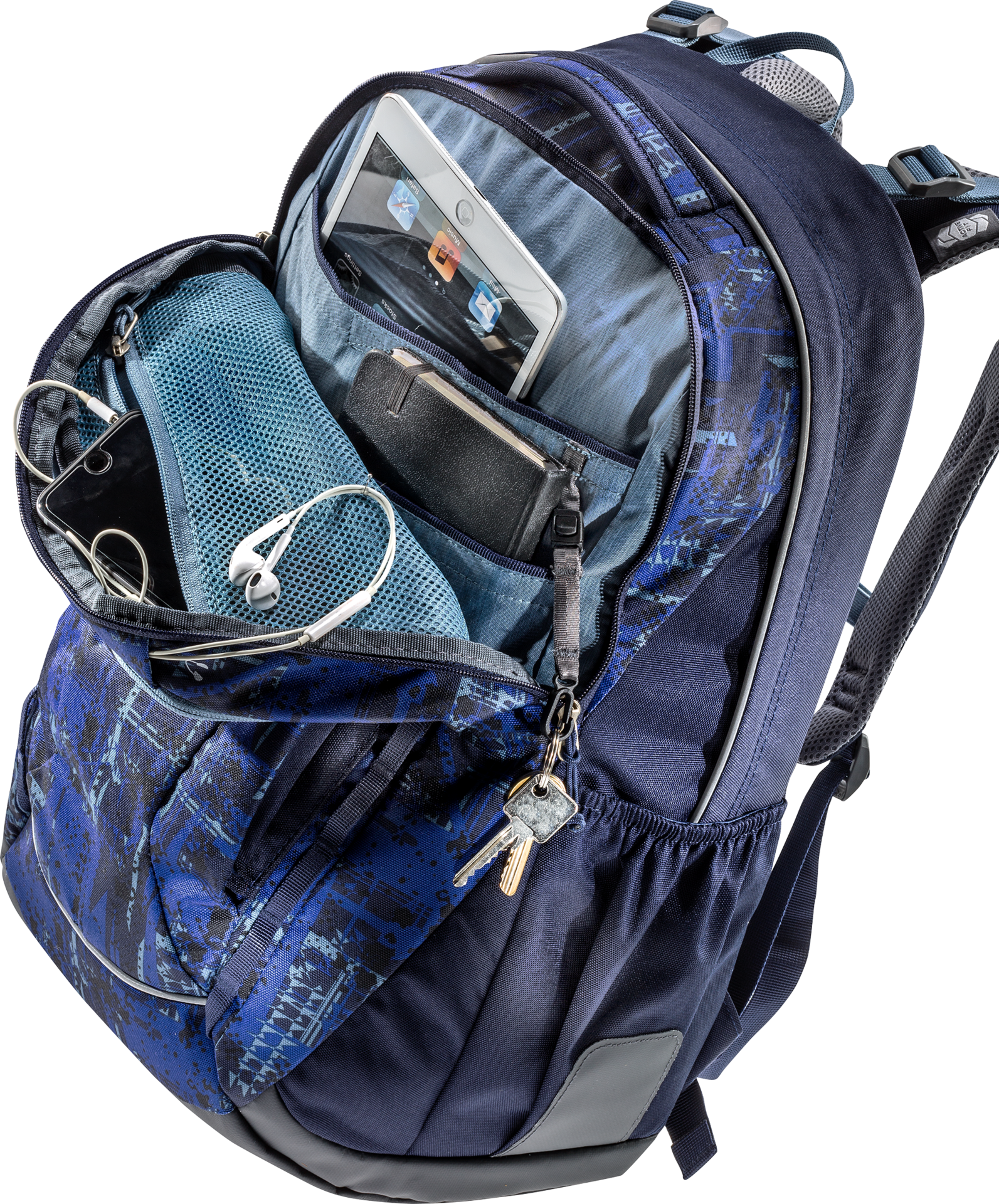 The big brother of the Ypsilon school backpack is ideal for daily life in secondary school, too. Without any complicated settings, the light and ergonomic school backpack adapts perfectly to the anatomy of the child. The Deuter Contact back system with the newly developed Lumbal Pad gently transfers the weight to the shoulders and hips, even during growth spurts. And because it fits so well, even a waist belt is unnecessary. The result: more freedom of movement! The front pocket provides additional space for a helmet, ball or jacket – perfect for after-school activities.