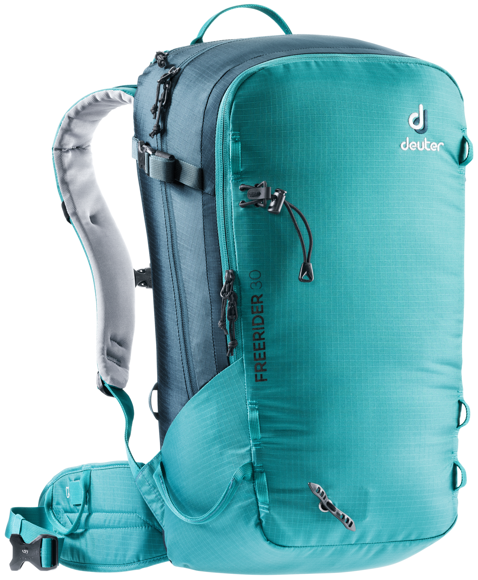 The Freerider pack has clever winter-specific details like access to the main compartment via a fully opening back panel. This gives you good oversight of the contents and it also means the carry system stays dry. But even if a little snow does get onto the carry system, our new hard-wearing, breathable, snow-resistant fabric will keep your back dry. And when it comes to safety, the Freerider has it all worked out. It features a separate, easy-to-access compartment for your probe and shovel so that your avalanche equipment is quick to access in an emergency. We’ve also equipped it with our new modular attachment set-up. Two dedicated straps that attach to the gear loops on the pack allow you to affix skis, a snowboard or snowshoes to the pack in no time at all – skis diagonally across the back or in an A-frame, a snowboard or snowshoes in an upright position. These versatile gear straps can also be used as compression straps.