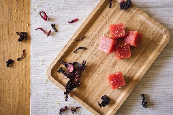 Wassermelonen- und -Hibiskus-Energie-Geleewürfel