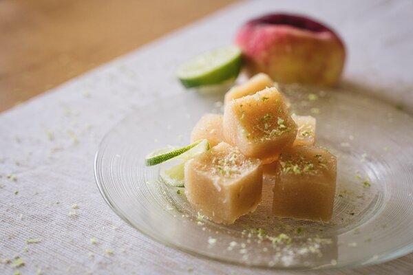 Pfirsich und Limetten-Energie-Geleewürfel