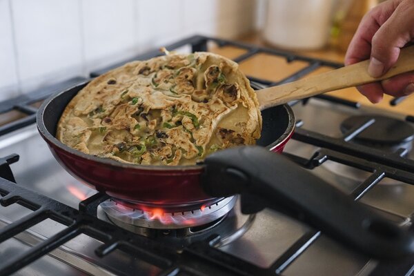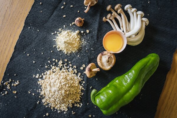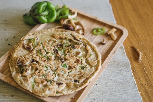 Pancakes mit Hafer, Kichererbsen, Pilzen und grüner Paprika