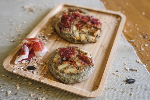 Pancakes mit Hafer, Kürbiskernen, Sonnenblumenkernen, Apfel und Zimt
