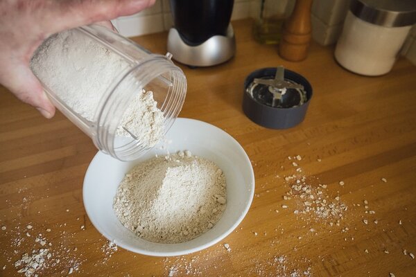 Die Haferflocken zu einem feinen Mehl mahlen.