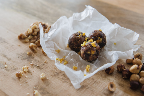 ENERGIEKUGELN MIT HEIDELBEEREN, MANDELN, WALNÜSSEN, DATTELN UND ORANGEN