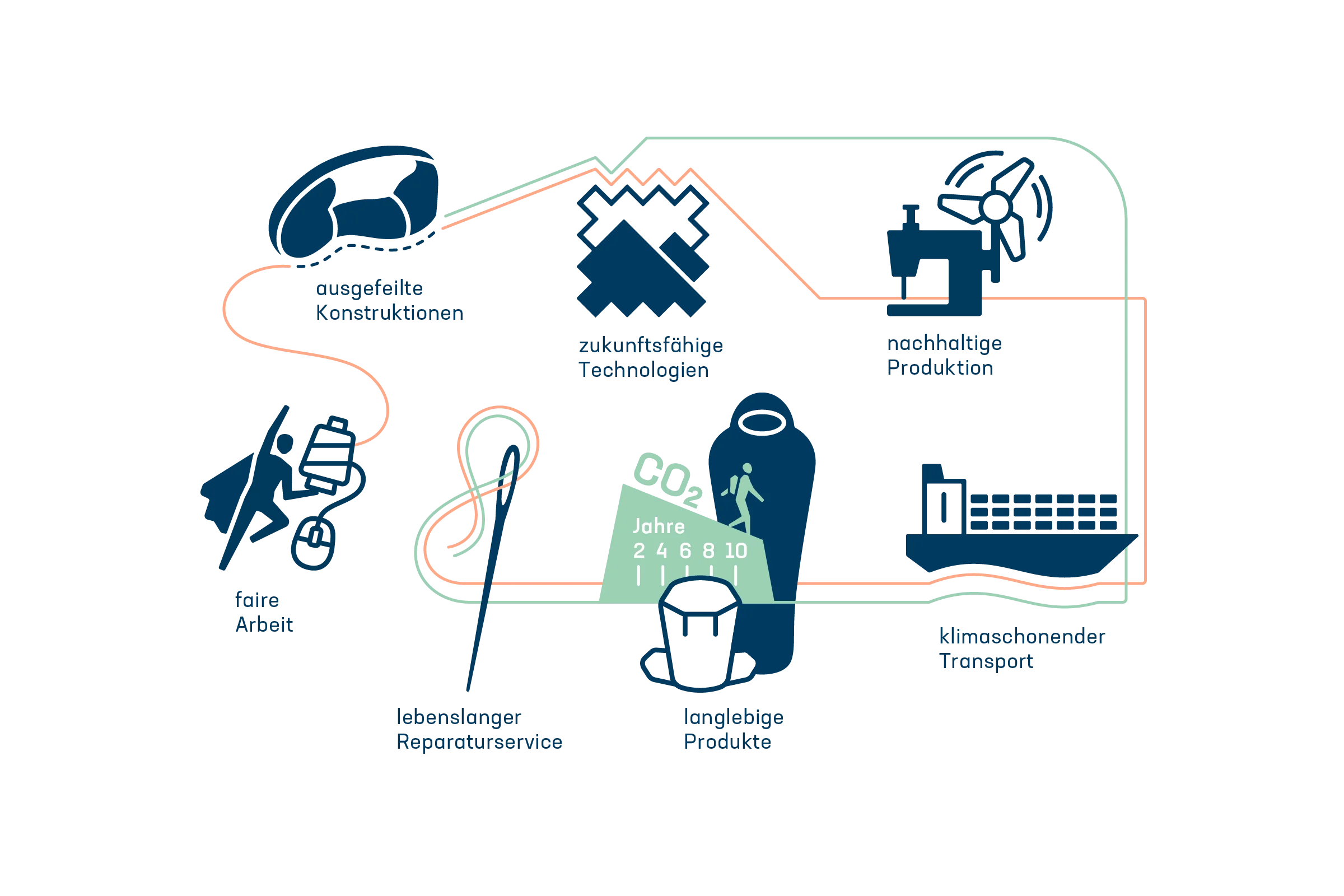 Wir wollen das, was wir lieben, für zukünftige Generationen bewahren. Deshalb integrieren wir bei deuter Verantwortung – gegenüber unseren Mitmenschen und der Natur – in unser tägliches Handeln. Von der Produktentwicklung und dem Design über die Wahl der Materialien, Produktionsmethoden und Transportwege bis hin zu Produkten, die sich gleichermaßen für den Outdoor-Einsatz und den Alltag eignen. Doch damit ist es noch nicht getan. Unser Nachhaltigkeitsansatz geht noch weiter: Wir reparieren auch abgenutzte oder beschädigte Produkte. Dabei achten wir darauf, Ressourcen zu schonen, umweltverträgliche Produktionsprozesse zu nutzen und faire Arbeitsbedingungen sowie eine möglichst lange Lebensdauer unserer Produkte zu gewährleisten. Und weil wir gemeinsam stärker sind, arbeiten wir eng mit unseren langjährigen Partnern in der Fertigung und Produktentwicklung zusammen und halten uns an die höchsten Standards. Wir haben uns beispielsweise der Fair Wear Foundation, bluesign® und dem Grünen Knopf angeschlossen.