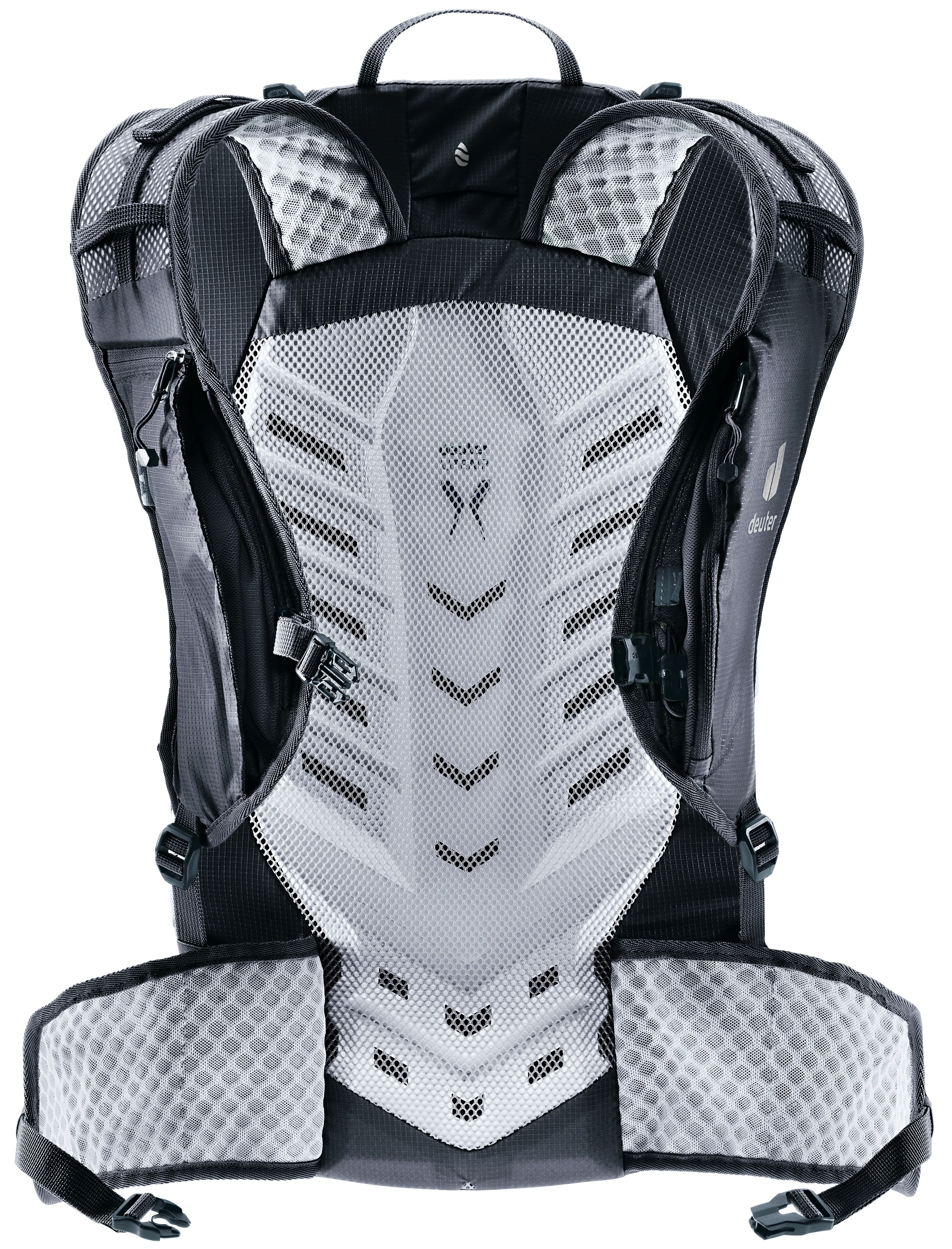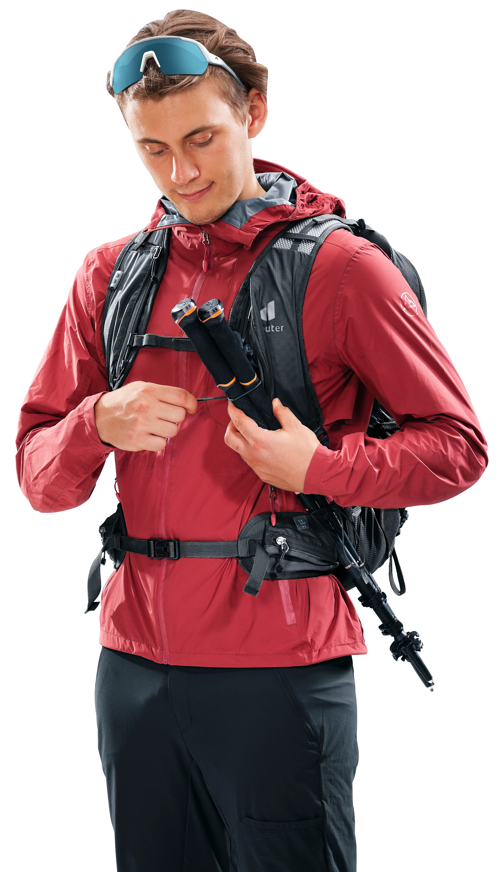 Move fast & light through the mountains – as well as comfortably – with this featherweight speed hiking backpack. Its vest-style perforated shoulder straps, supple hip fins, 2-way adjustable sternum strap and deuter LiteAir back system combine to create good ventilation and a snug, compact fit. Handy pockets on the shoulder straps and hip fins, plus quick-release pole attachments, provide fast on-the-move access without having to take off the pack.