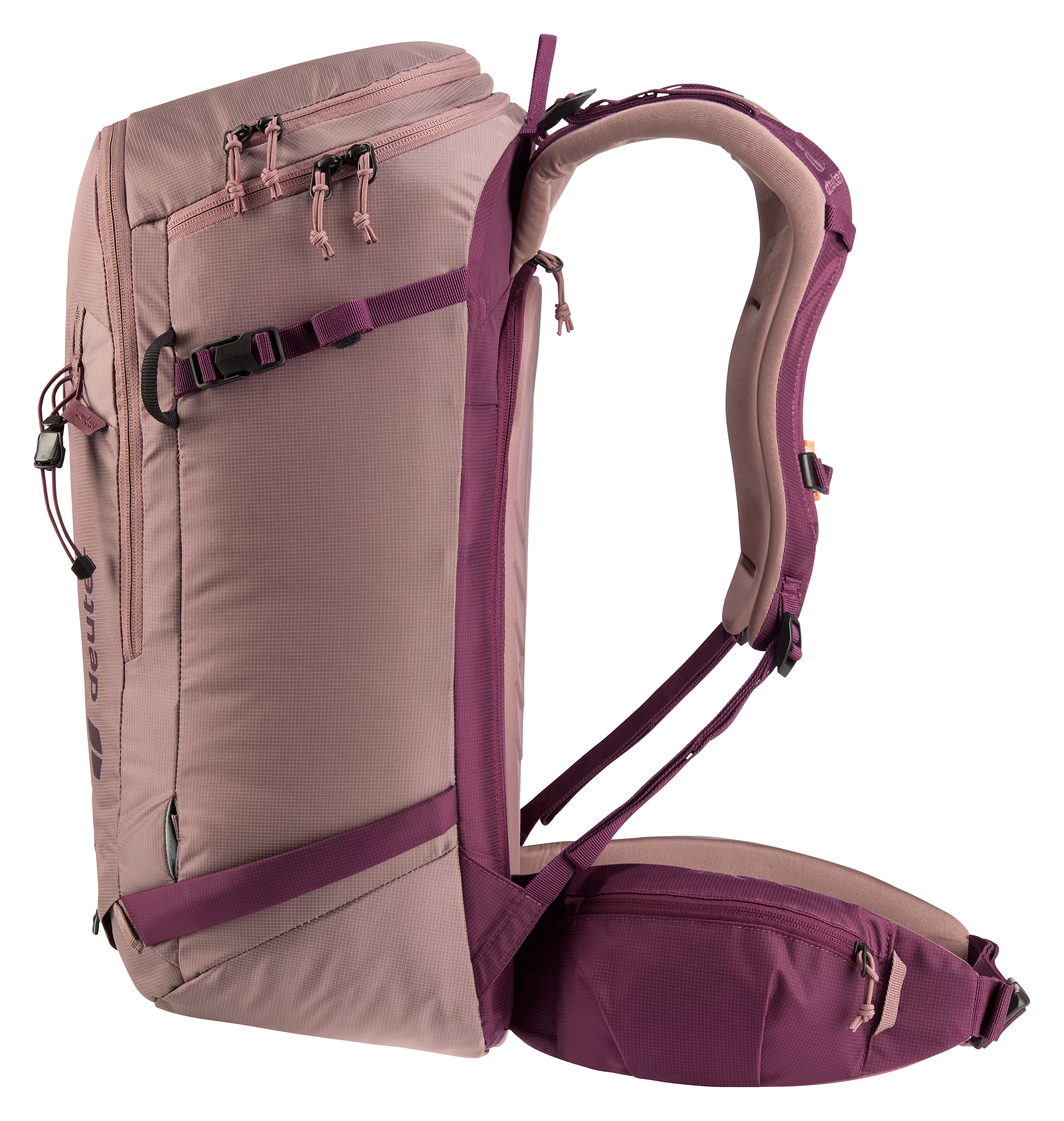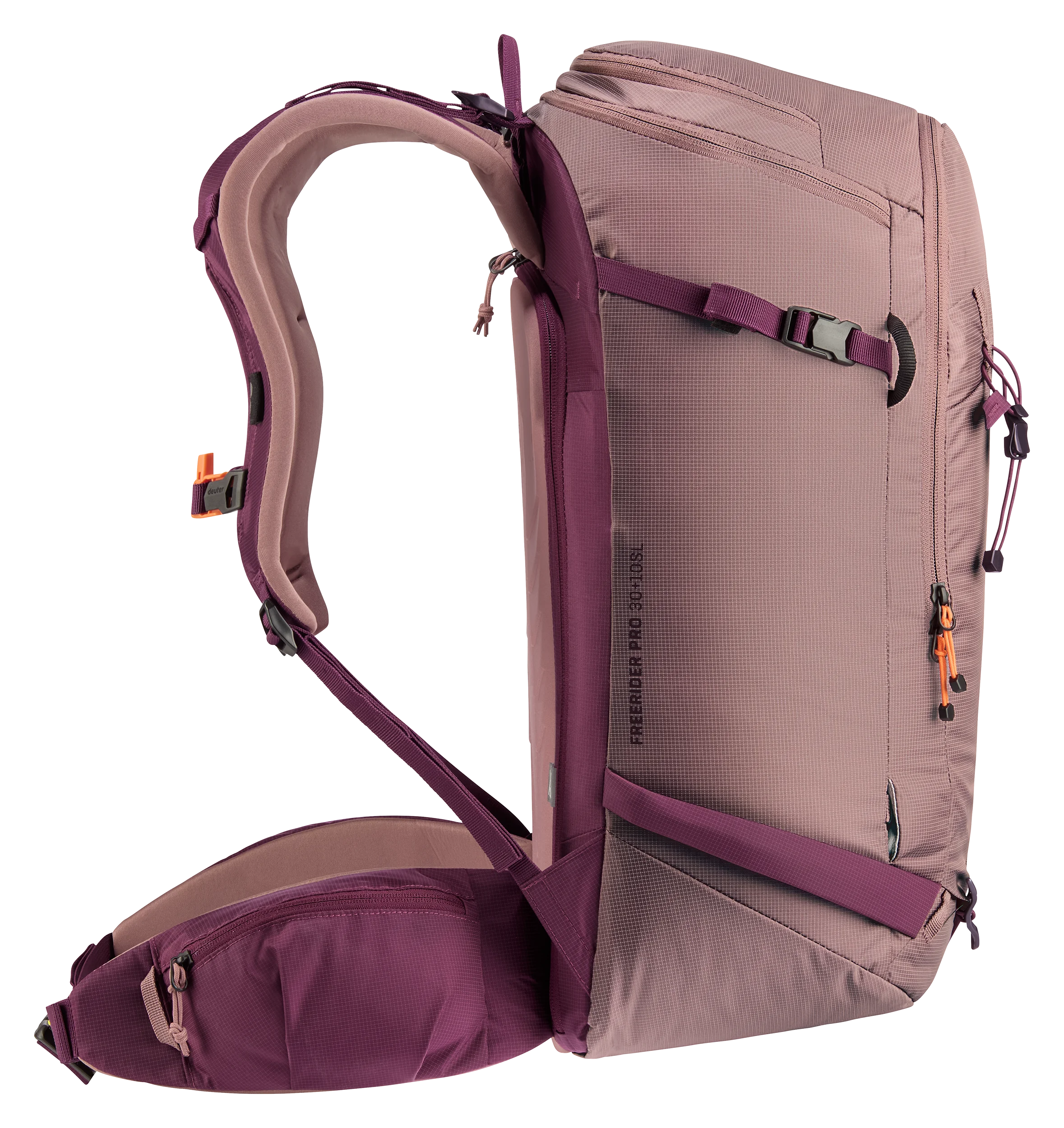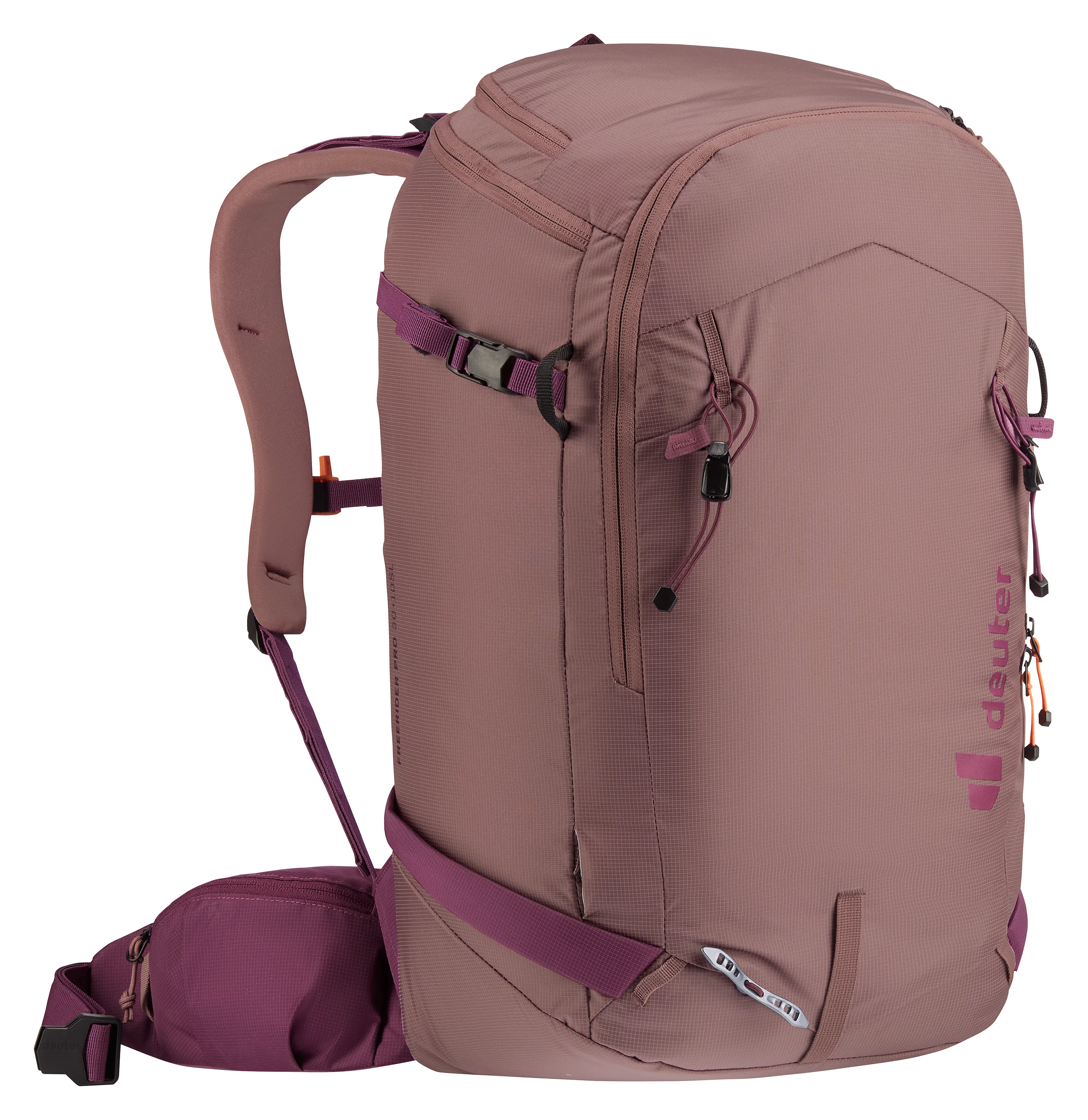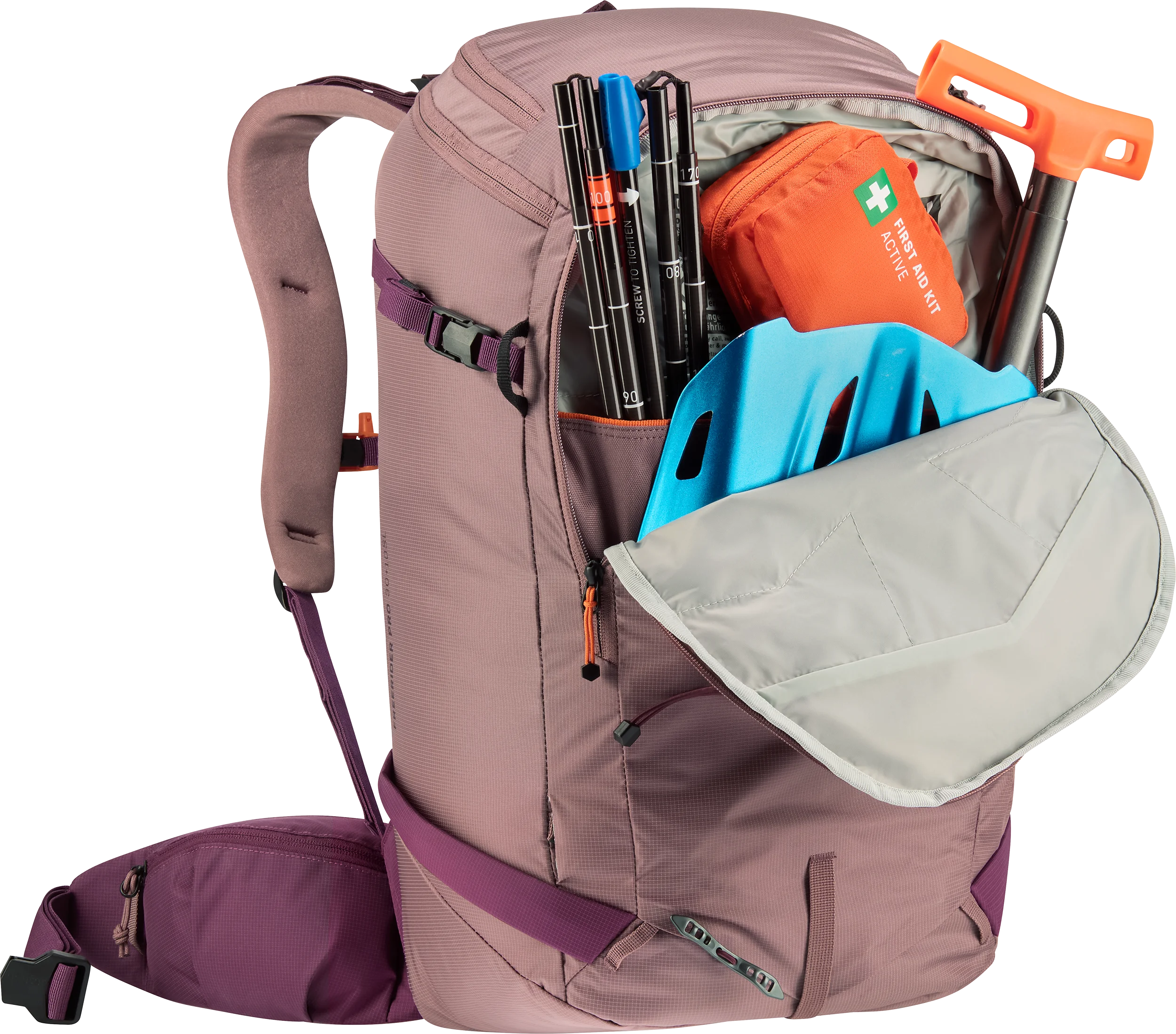 Een ander voordeel van het vernieuwde ontwerp is dat je de stabilisatiebanden niet meer los hoeft te maken om de U-vormige ritssluiting te openen. Dit maakt het in- en uitpakken sneller en voorkomt dat de banden in de weg zitten. Bovendien kan het volume van de rugzak, dankzij de aanpasbare rolsluiting, met 10 liter worden uitgebreid, zodat de Freerider Pro zich aanpast aan jouw behoeften. Ook voor bevestiging van een ijsbijl en stokken is er ruimte. En een speciaal lawinevak zorgt voor een snellere reactietijd in geval van nood.