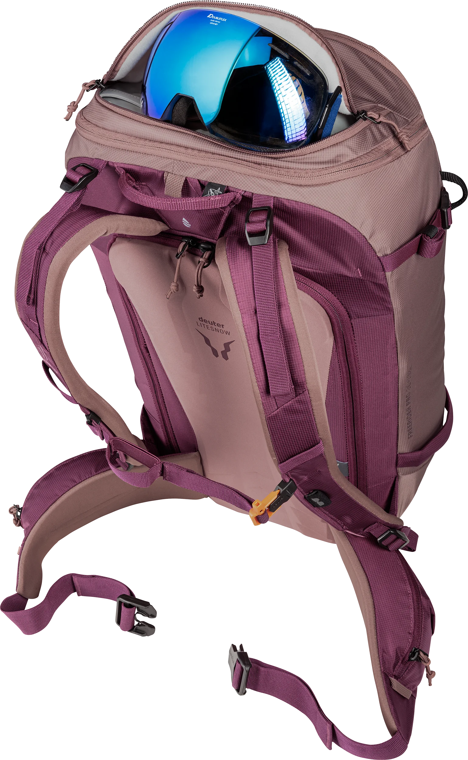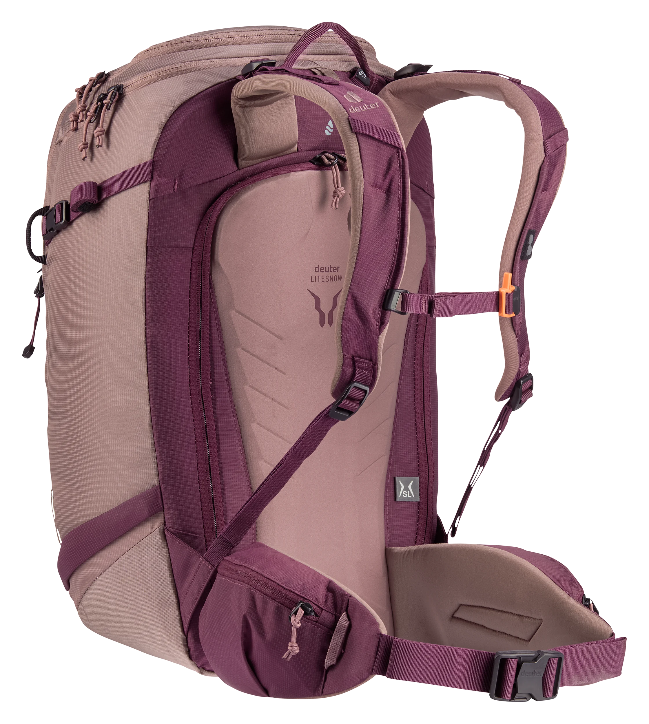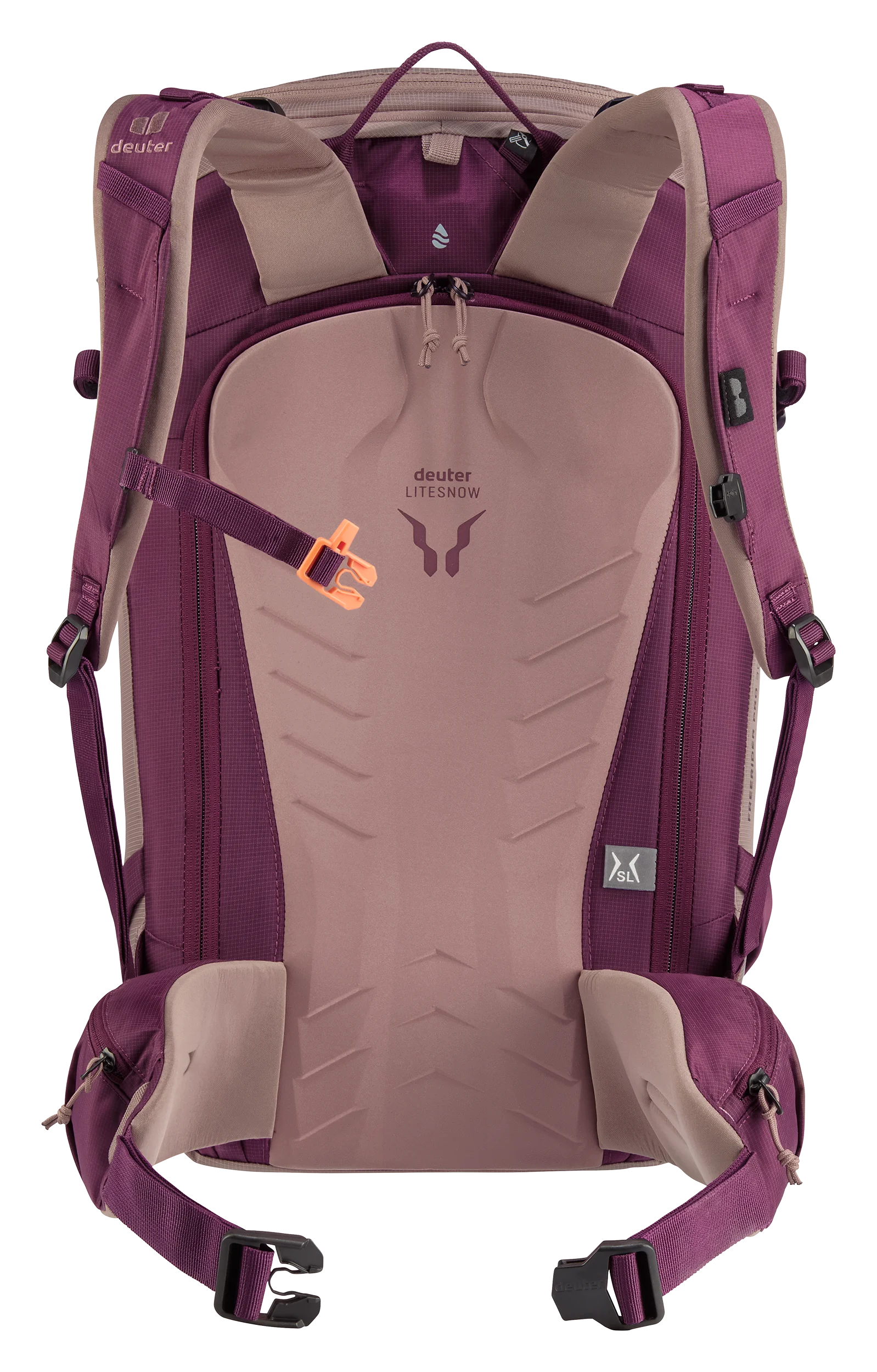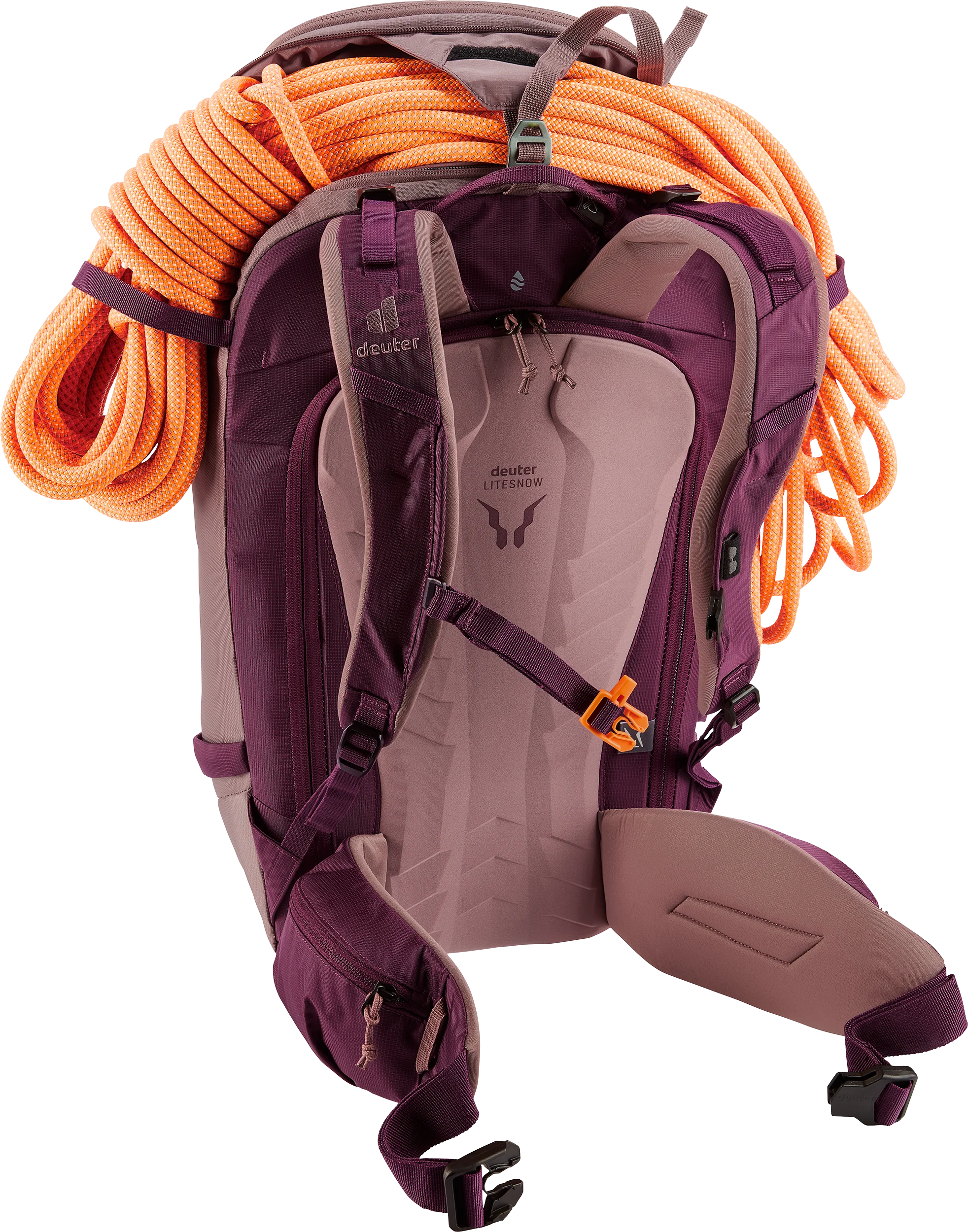 Het LiteSnow back system van deuter is ultralicht, uiterst comfortabel om te dragen en waterbestendig. Dit komt door de sneeuwafstotende materialen en het doordachte ontwerp. Dankzij de speciale vorm van het rugsysteem en de met Spandex bedekte uitsparingen in het EVA-schuim van de rugpadding, kan sneeuw zich niet ophopen of vastplakken tegen de rug. Hierdoor blijft je rug droog, wat het dragen van de rugzak comfortabel maakt, zelfs tijdens lange of meerdaagse avonturen.